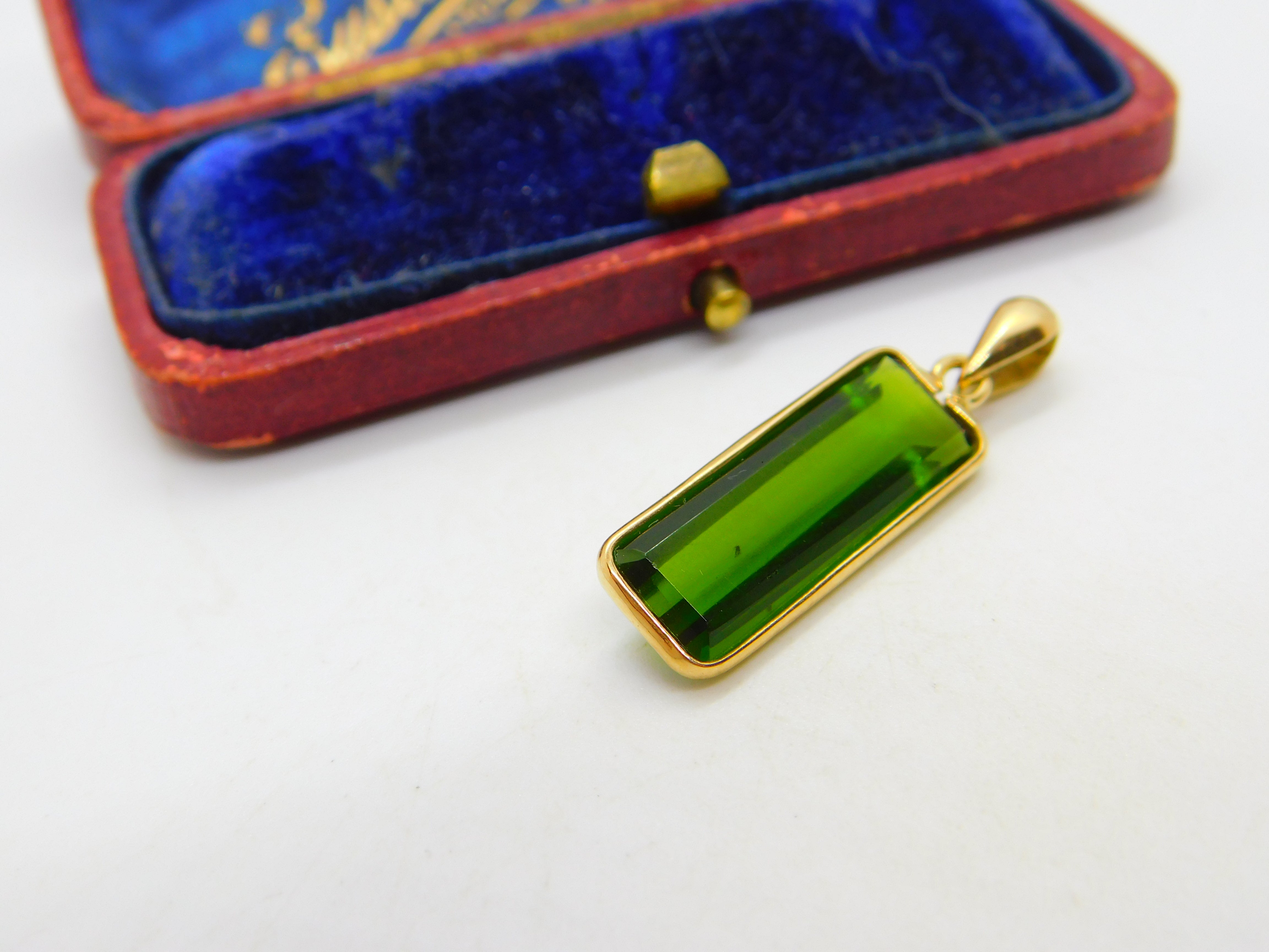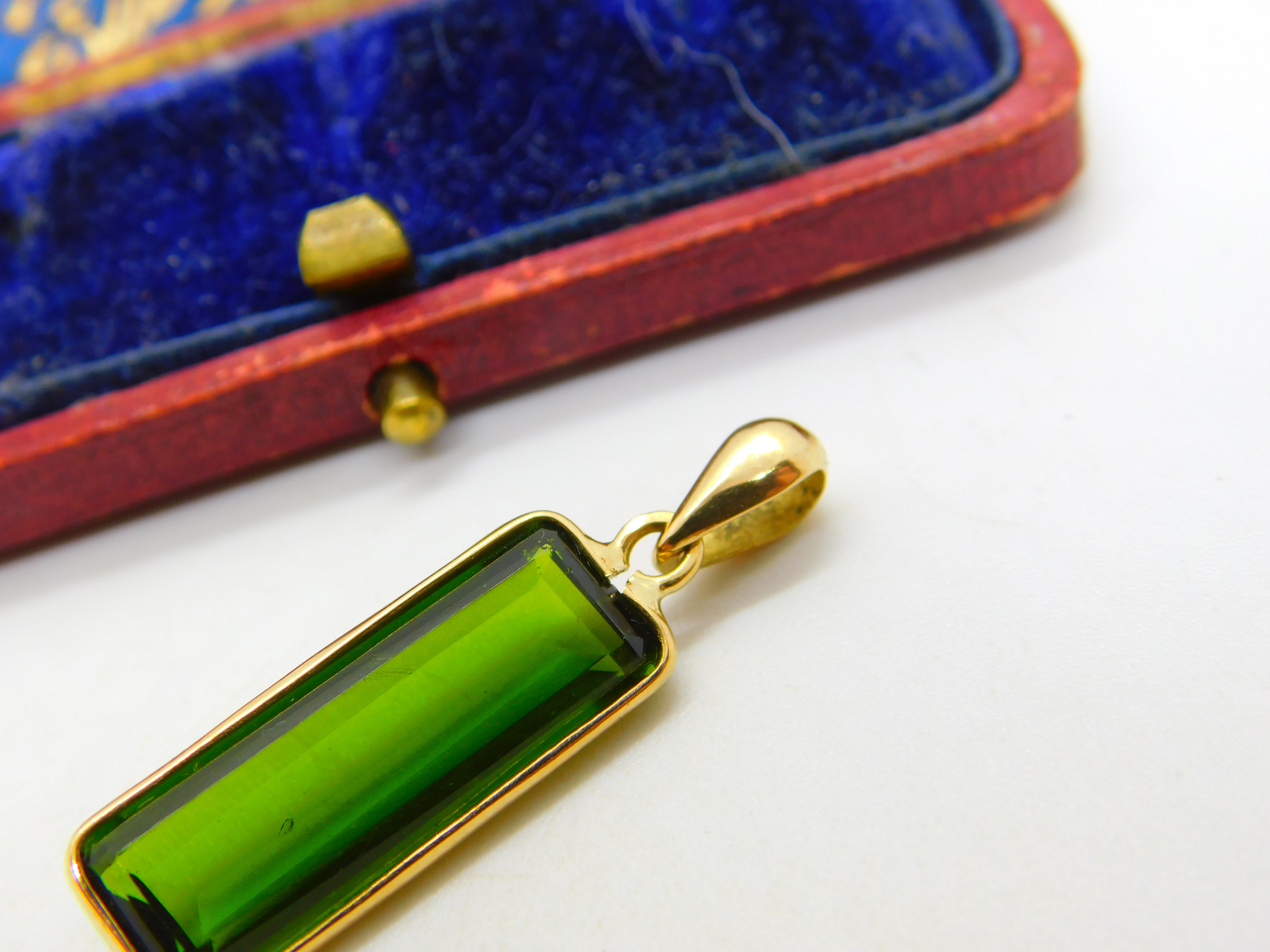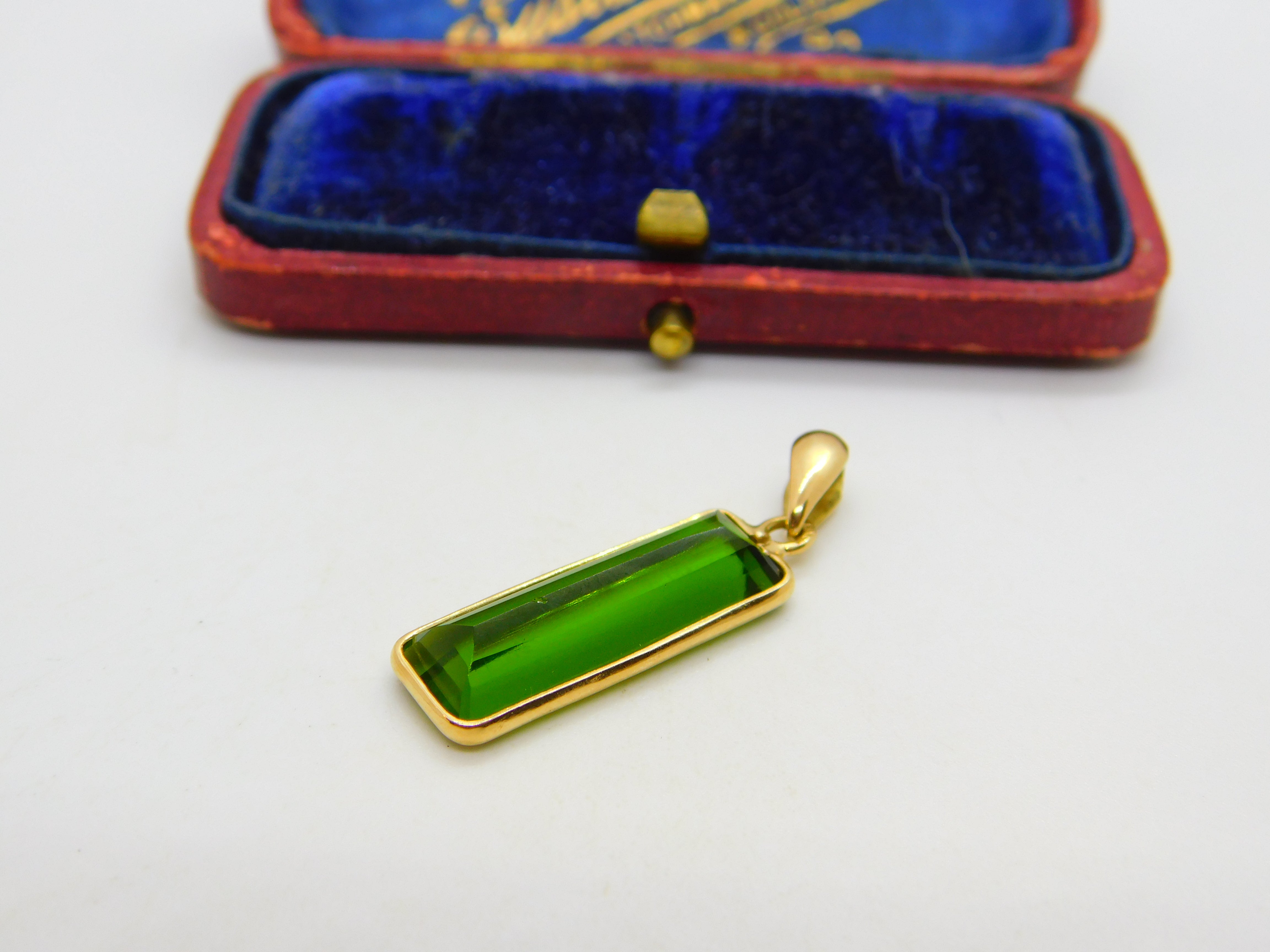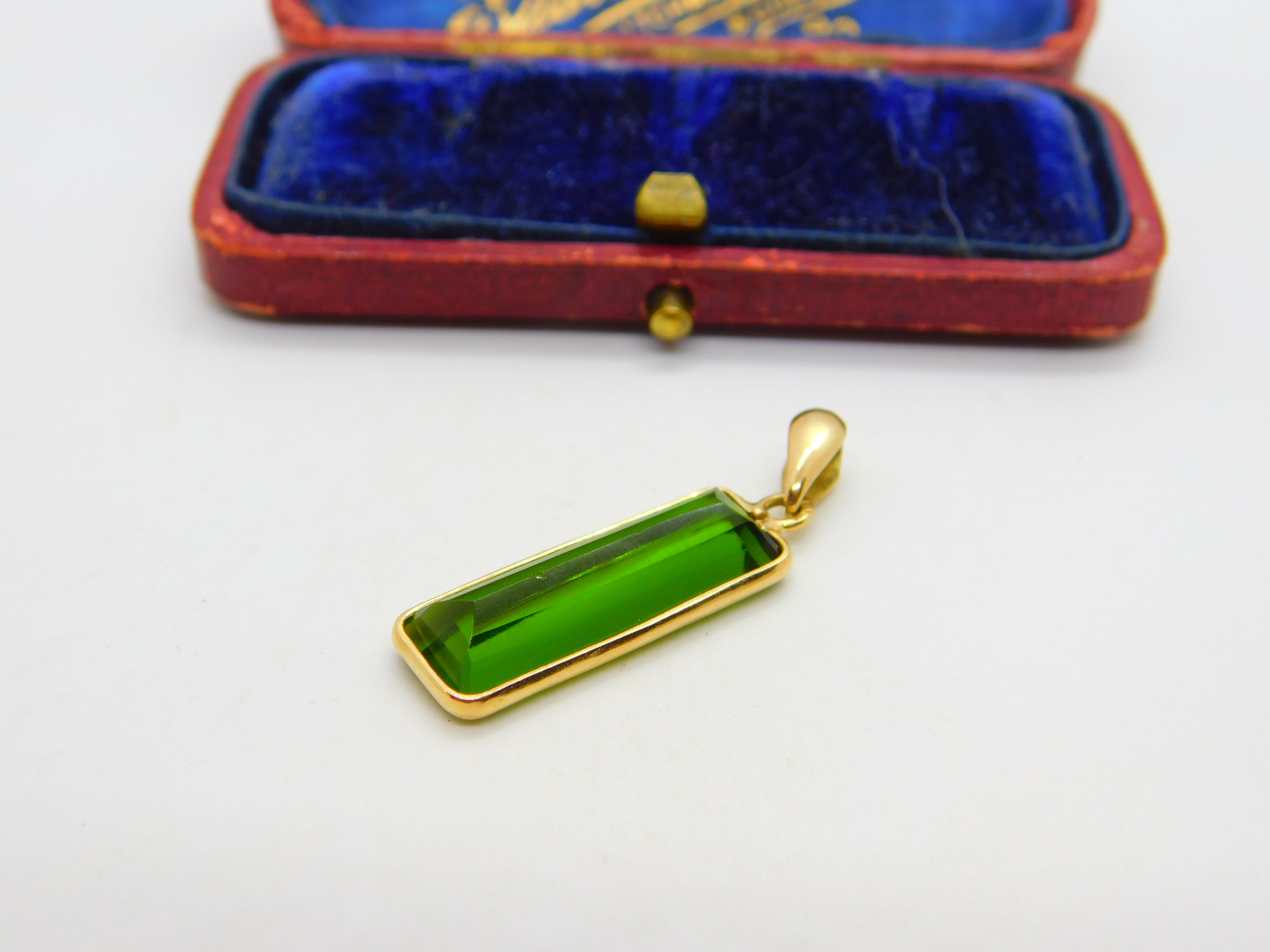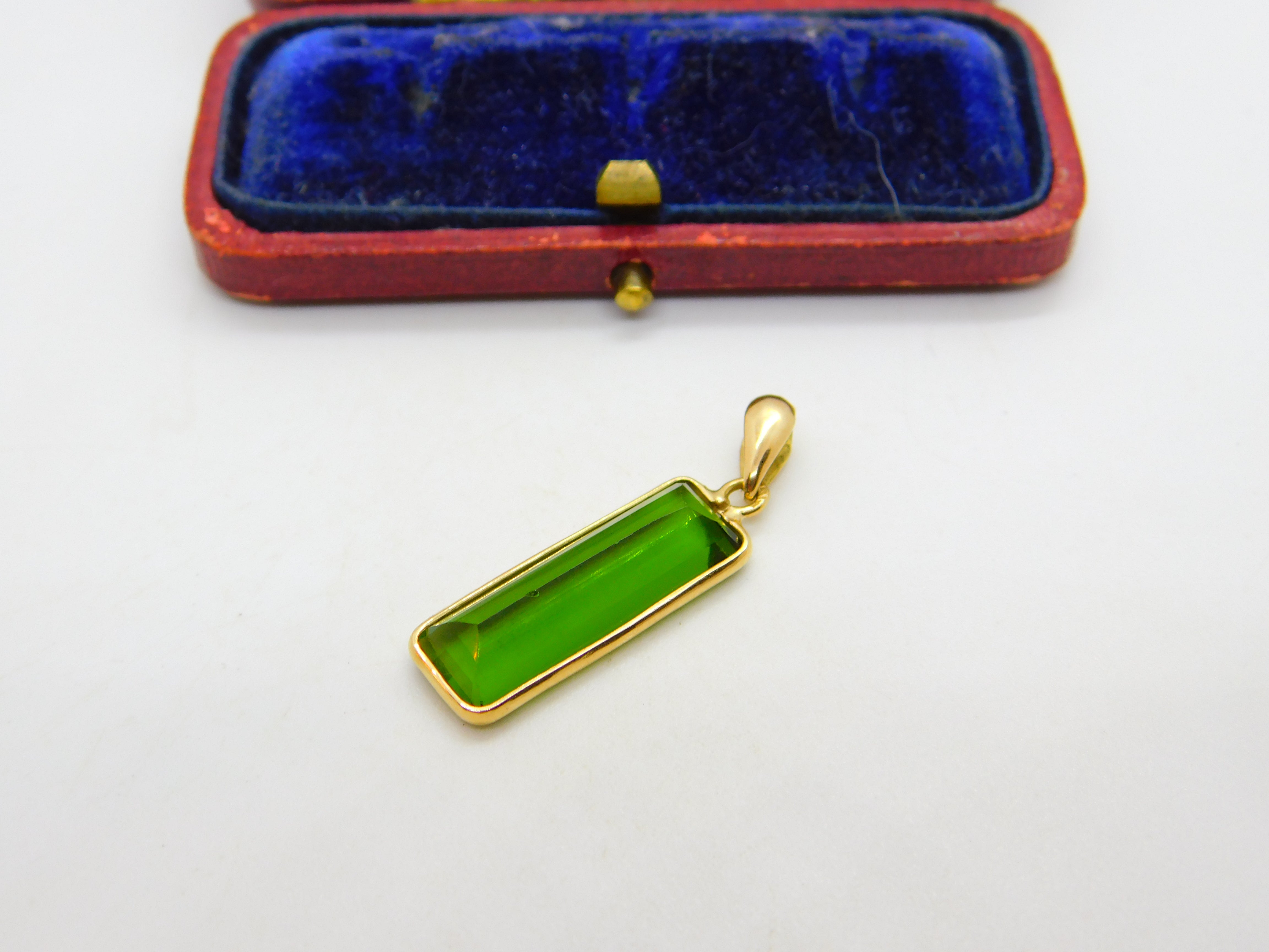 Baguette Cut Green Tourmaline in 18ct Yellow Gold Pendant Vintage c1980