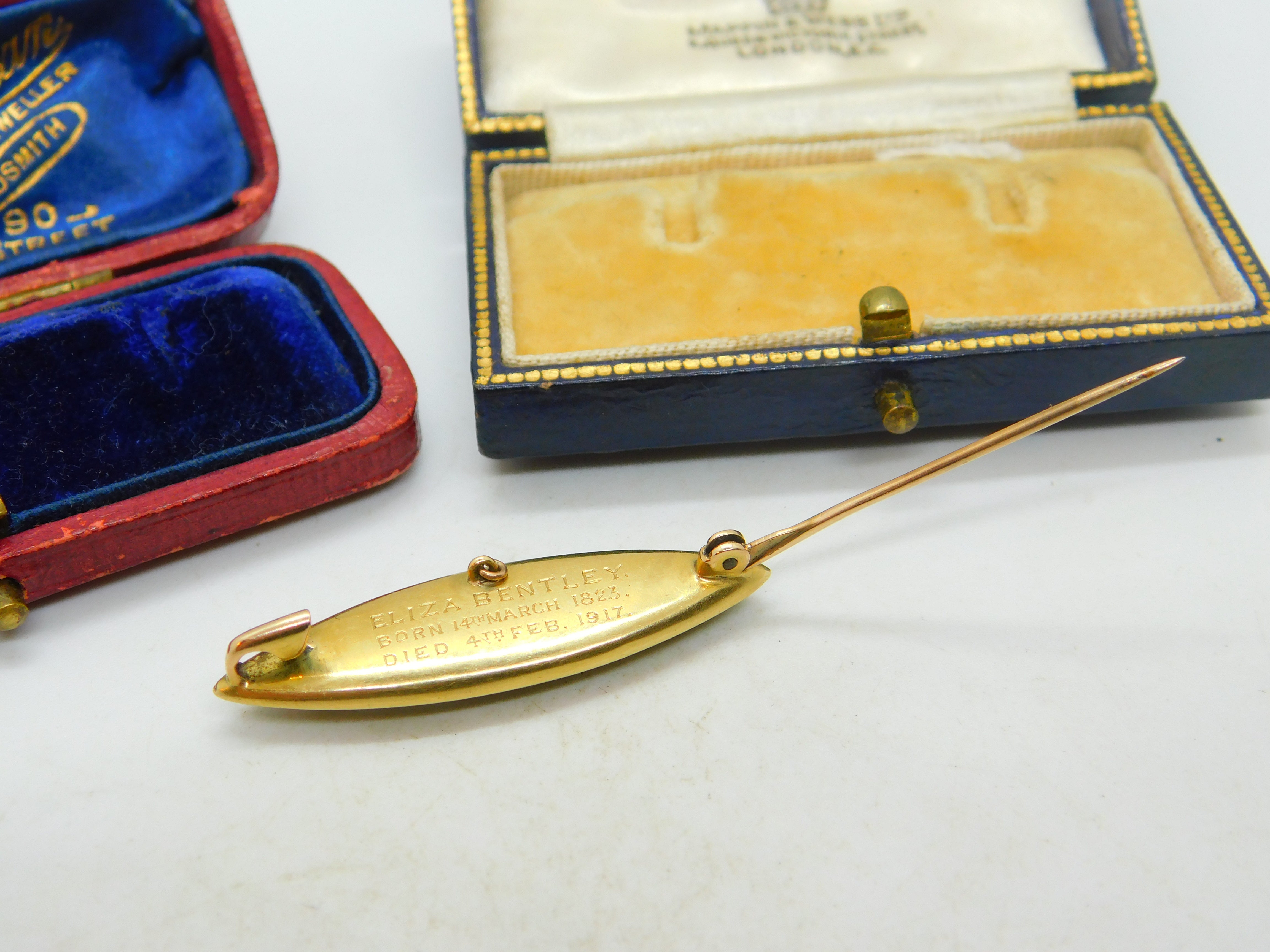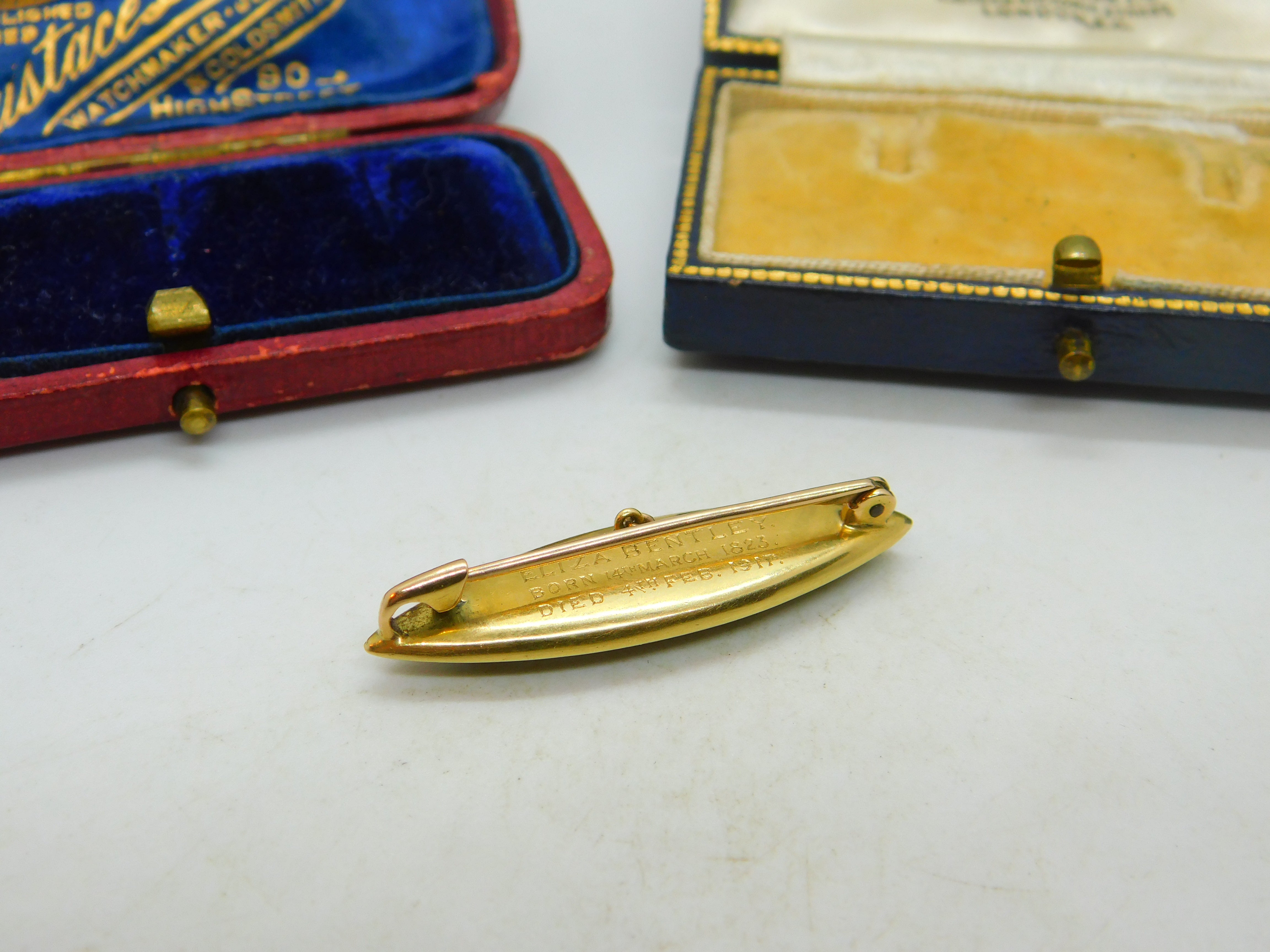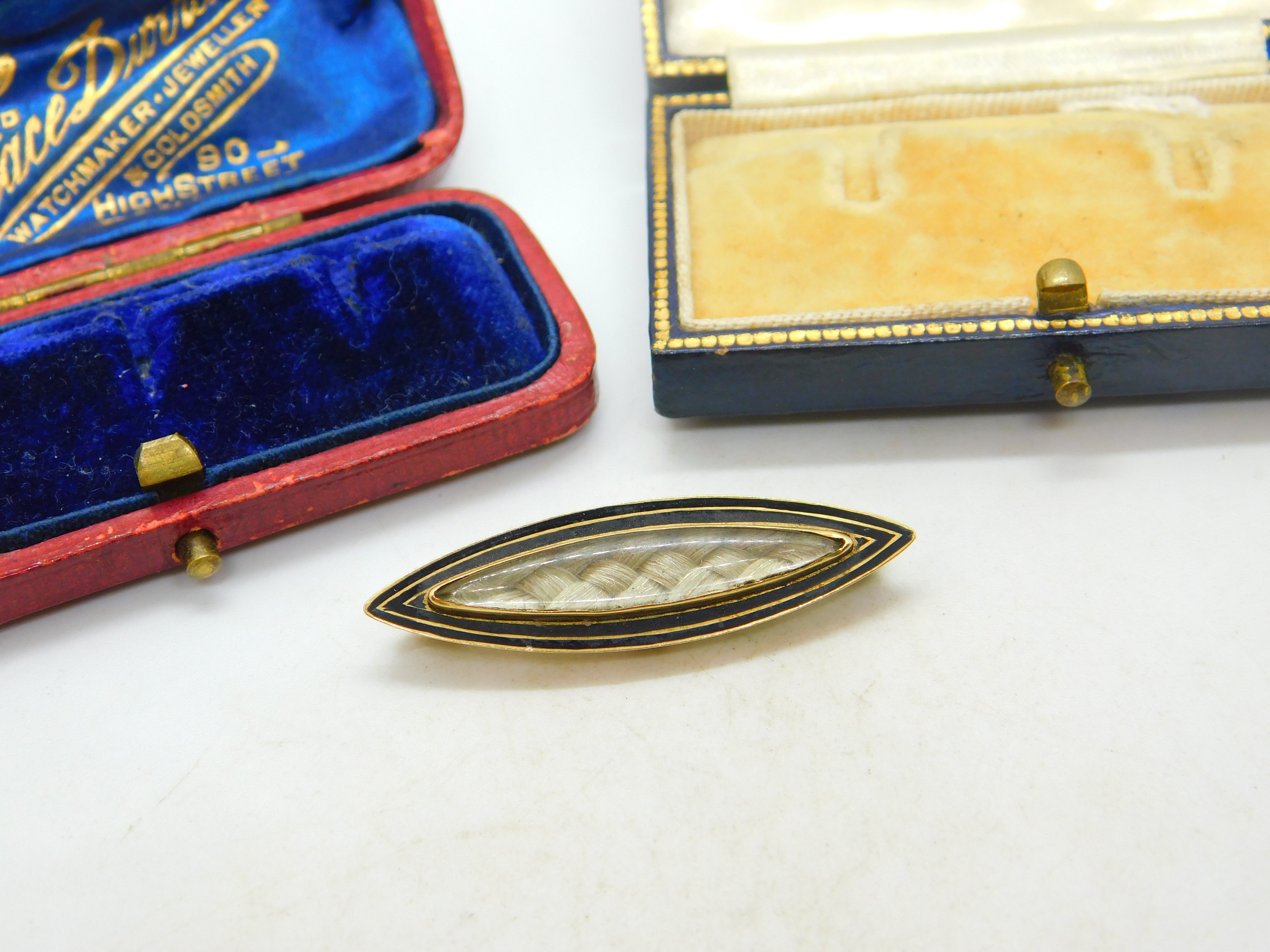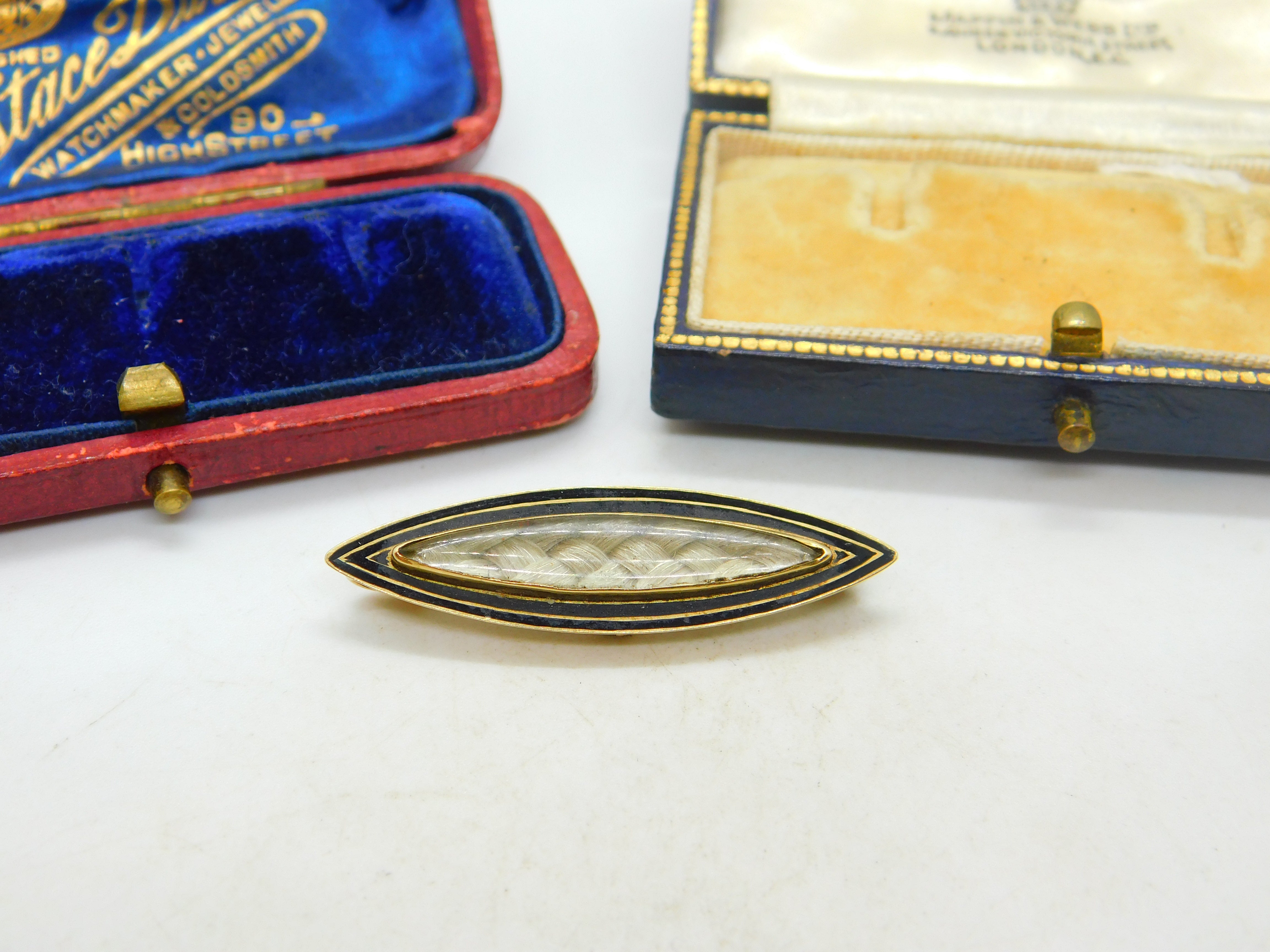 Braided Mourning Hair Enamel 9ct Gold Brooch Pin Inscribed Eliza Bentley 1917 Antique Edwardian
