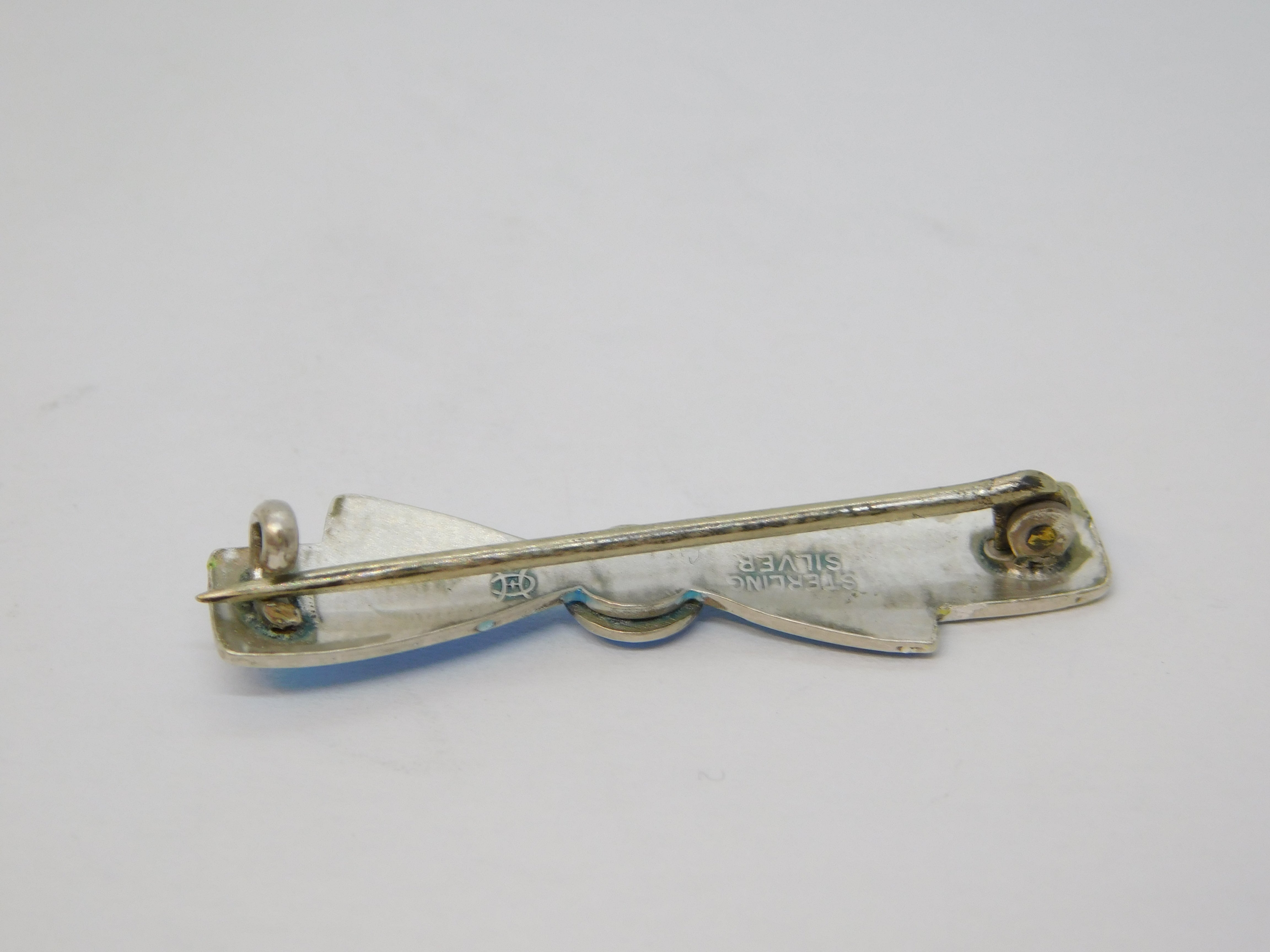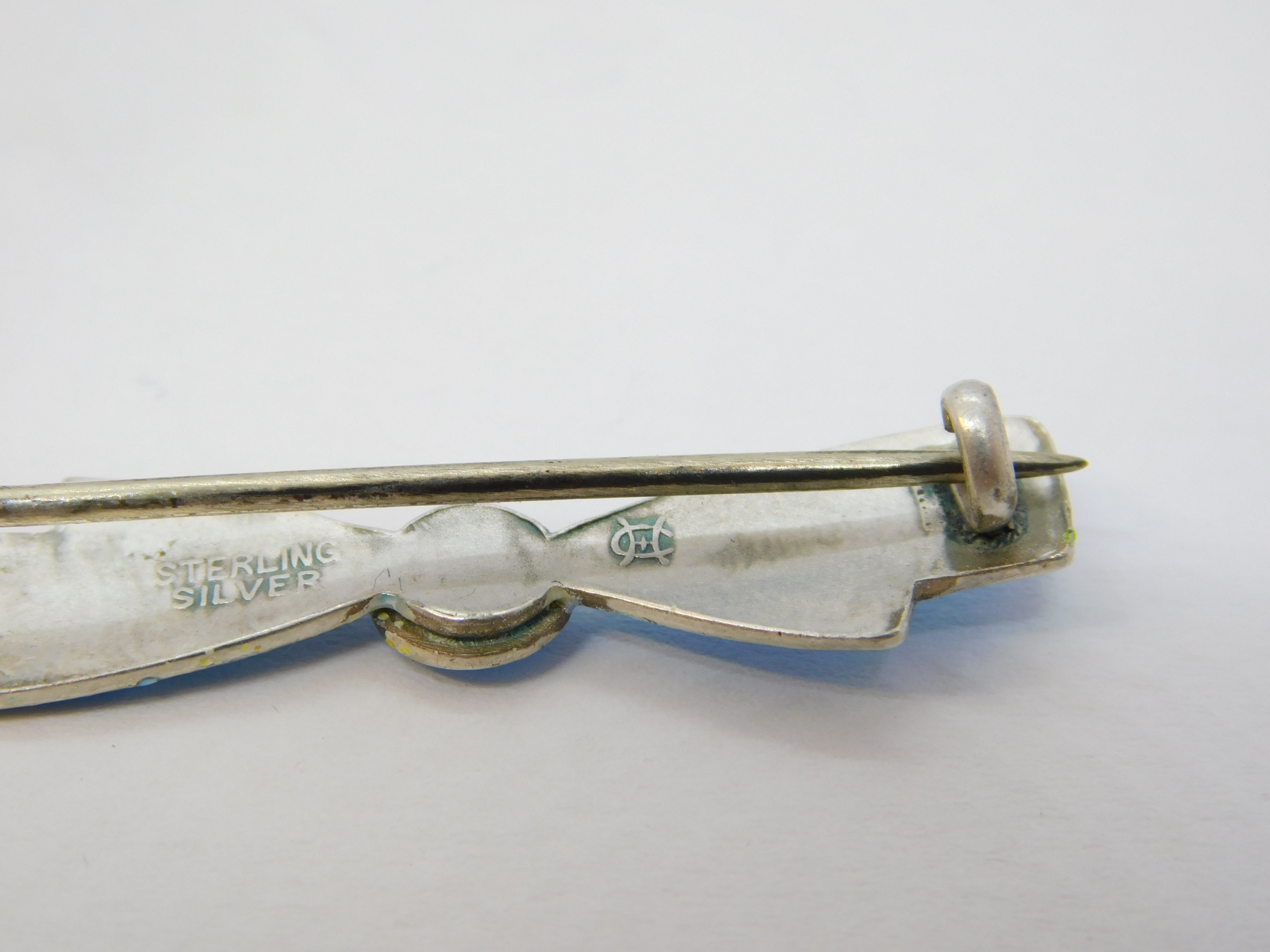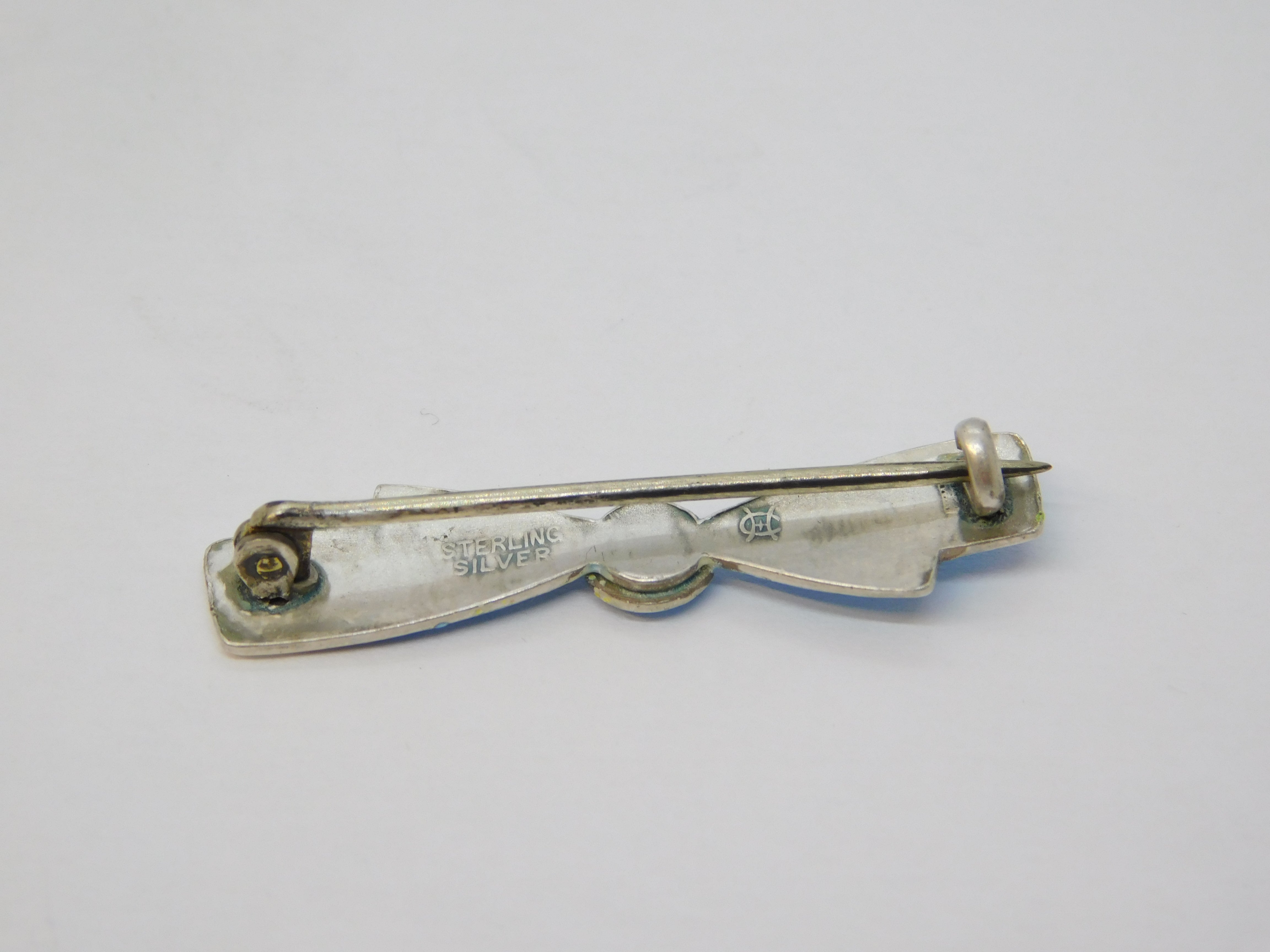 Charles Horner Sterling Silver Blue Enamel Bow Tie Brooch Antique c1920 Deco