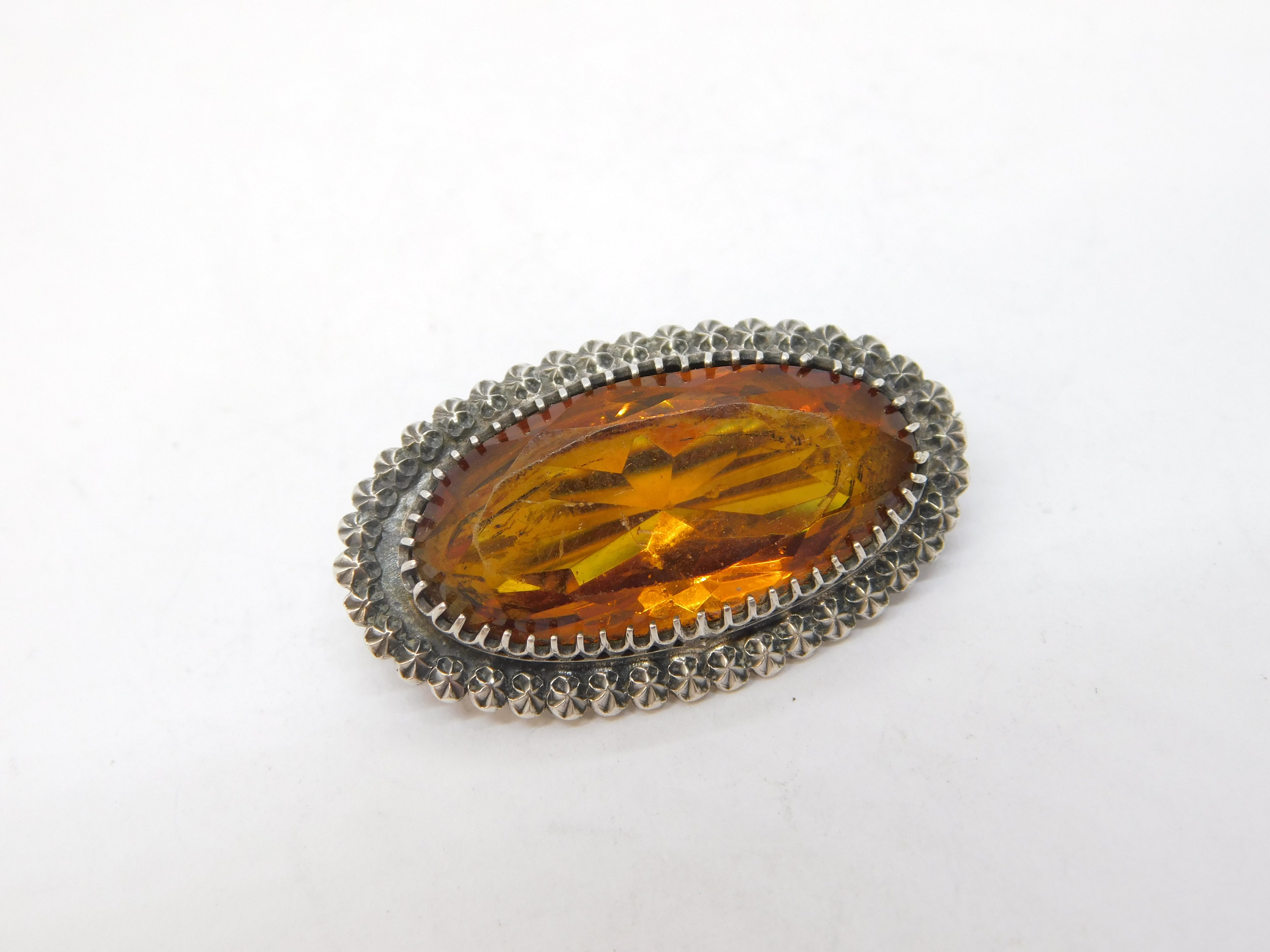 Charles Horner Victorian Sterling Silver Citrine Brooch Antique 1900 Chester