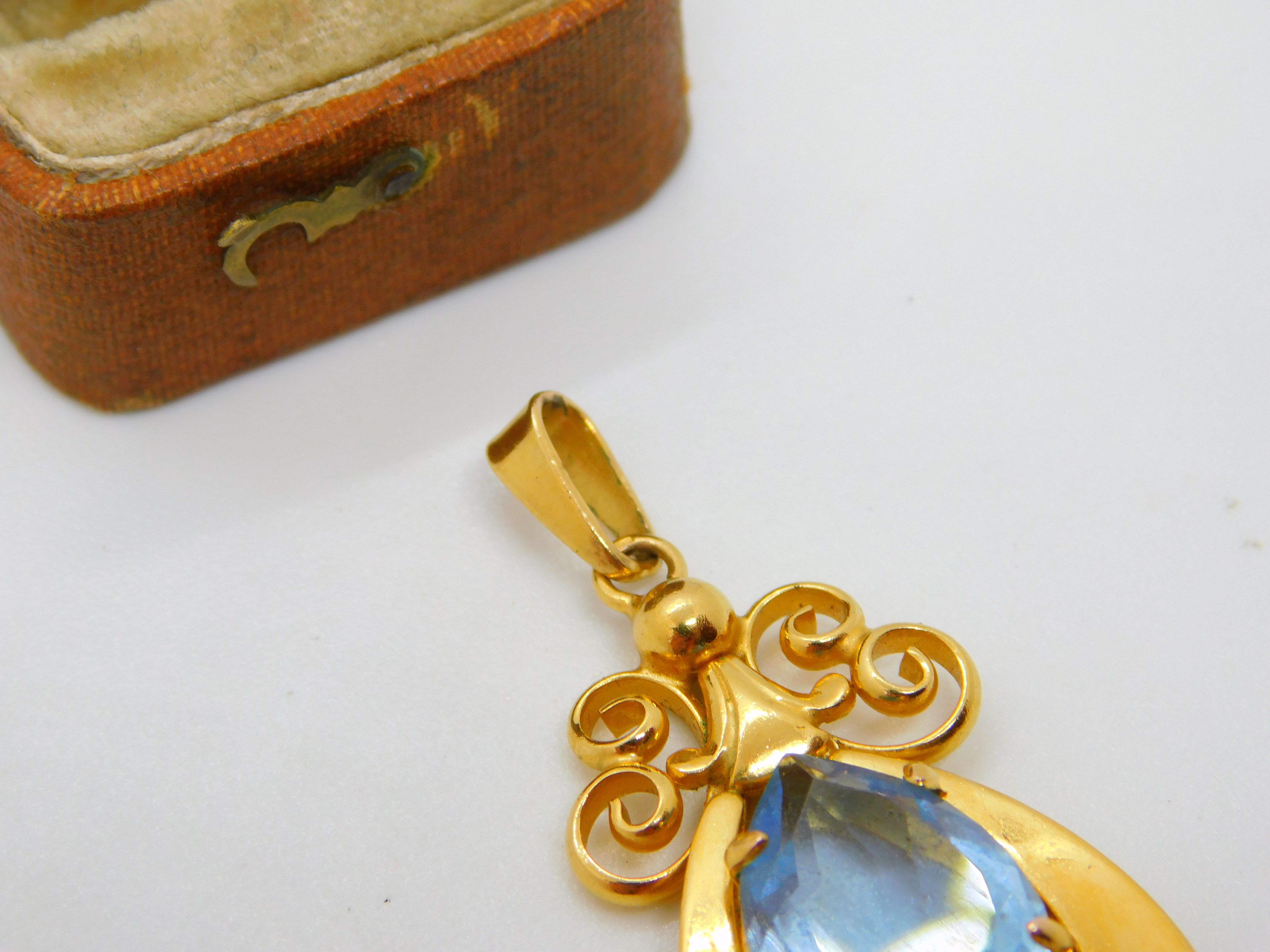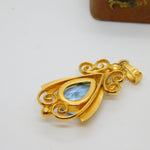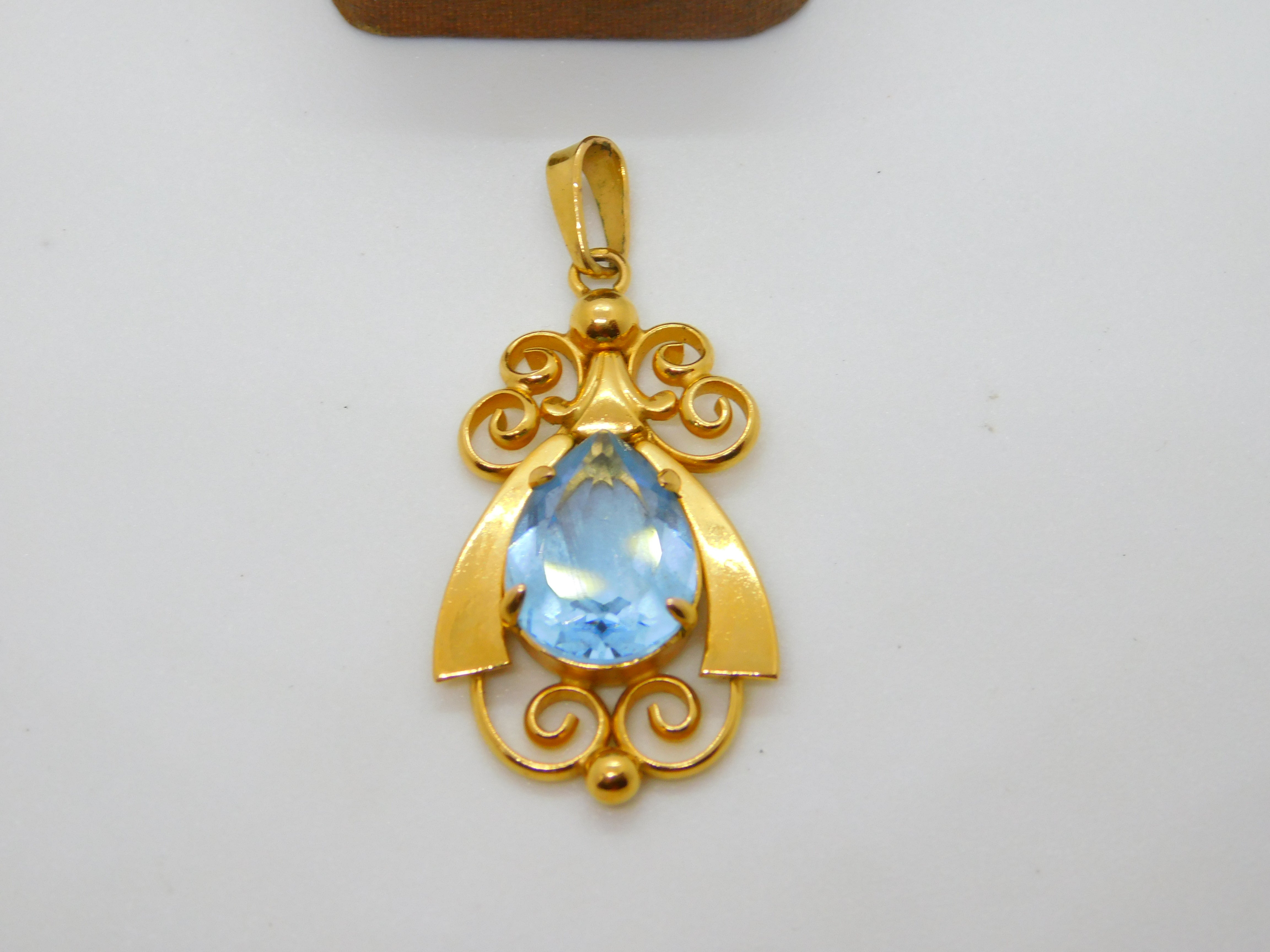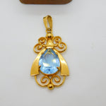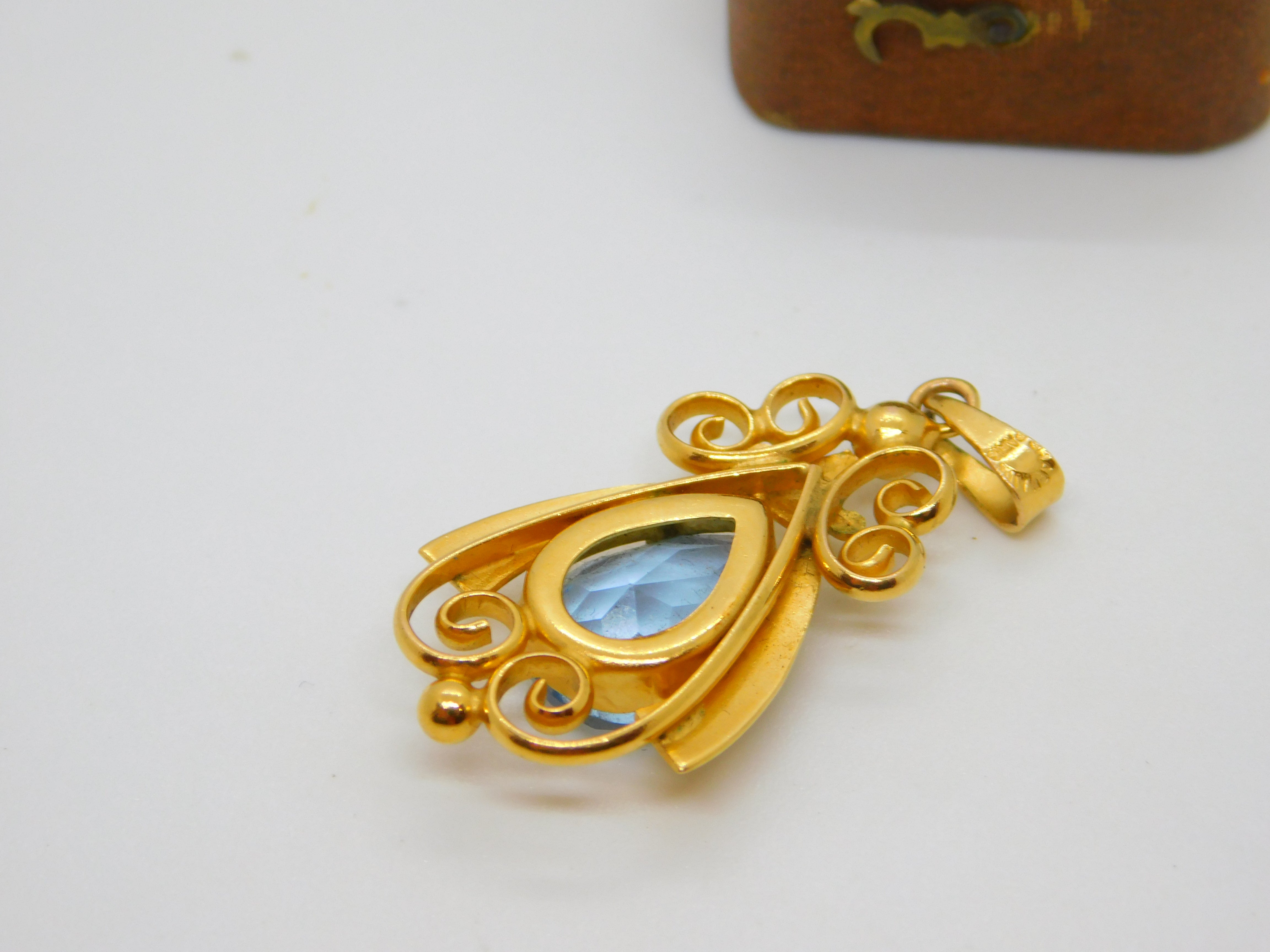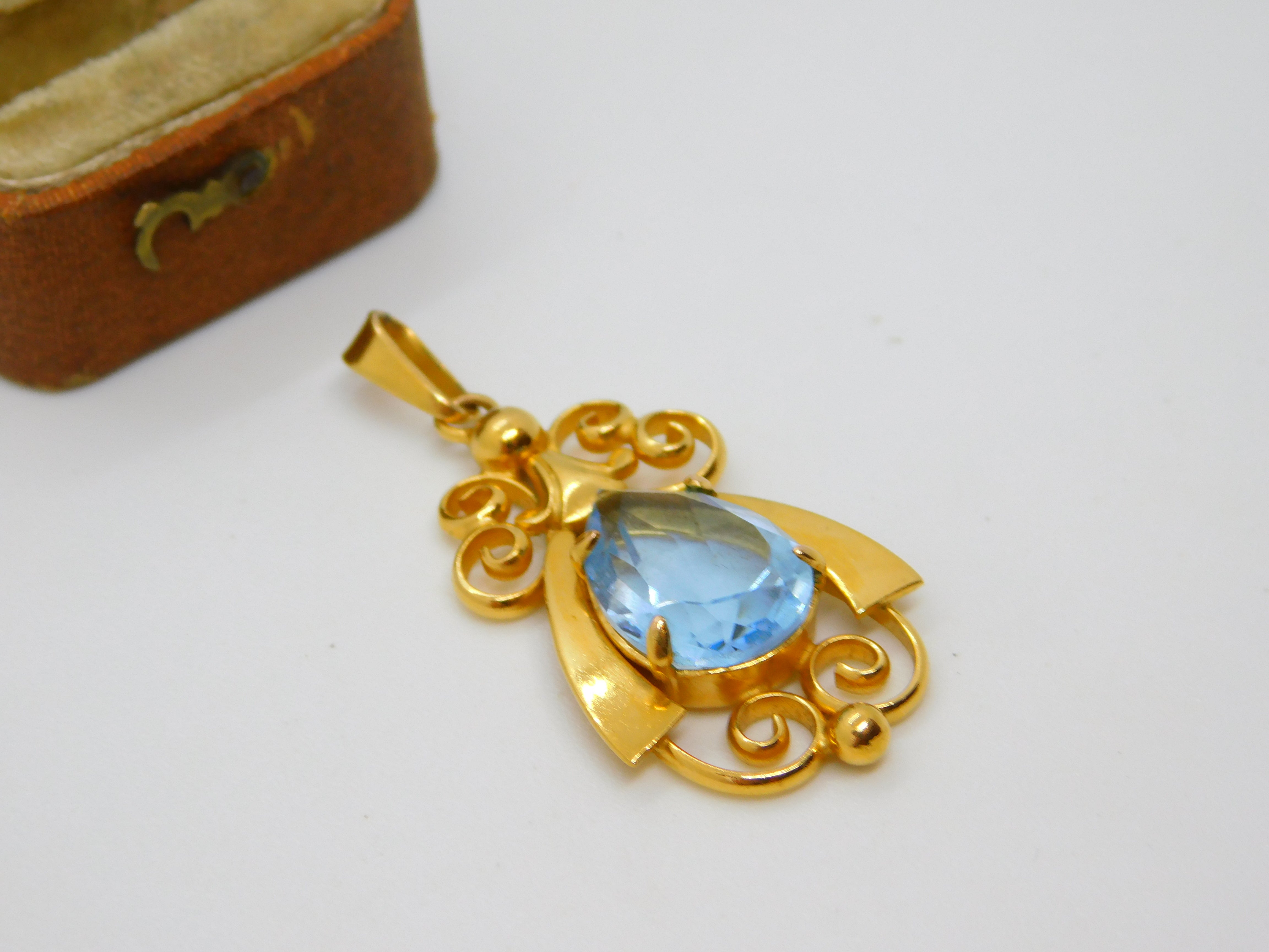 Charmaine Paris 15ct Rolled Gold Blue Topaz Set Drop Pendant Vintage c1960