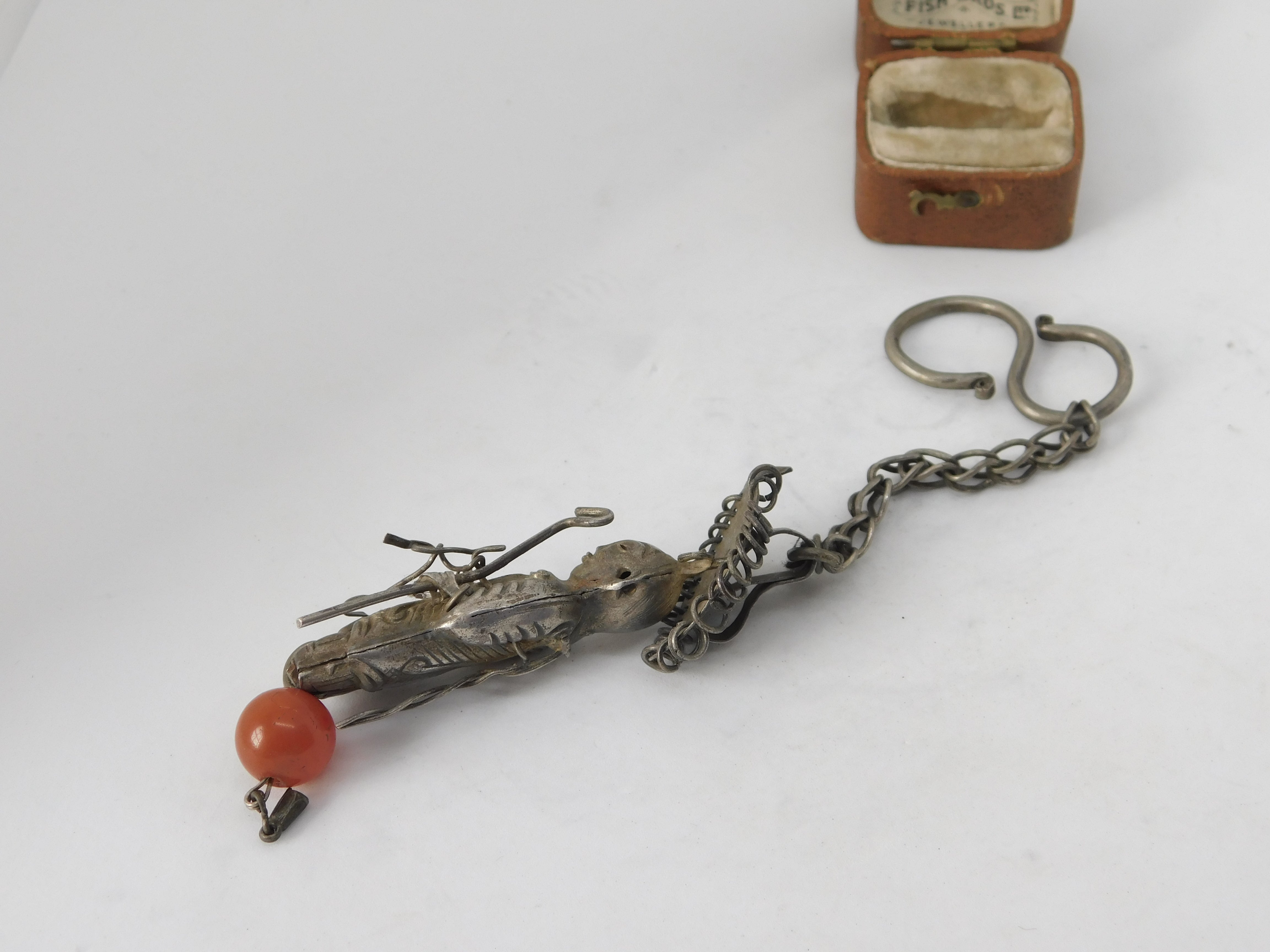 Details: A fantastic and wonderfully designed antique Victorian Chinese sterling silver lucky charm fob or chateliane ornament with carnelian agate bead and chain c1880, the silver has been XRF tested. This is a wonderful item that would make a perfect gift or addition to any collection. The BOX pictured is for PRESENTATION ONLY and is NOT included in the listings but used to frame the pictures unless specifically stated otherwise.