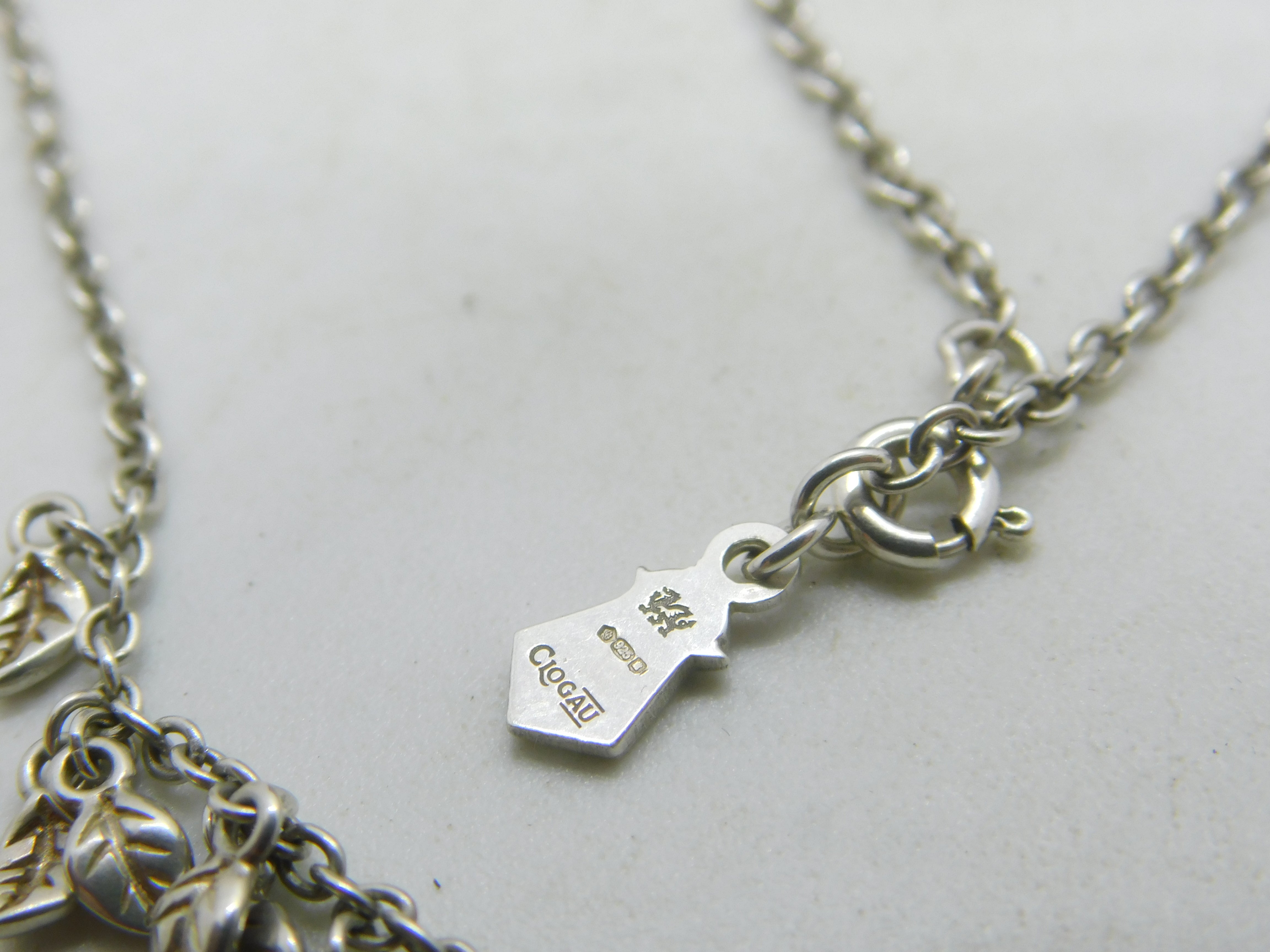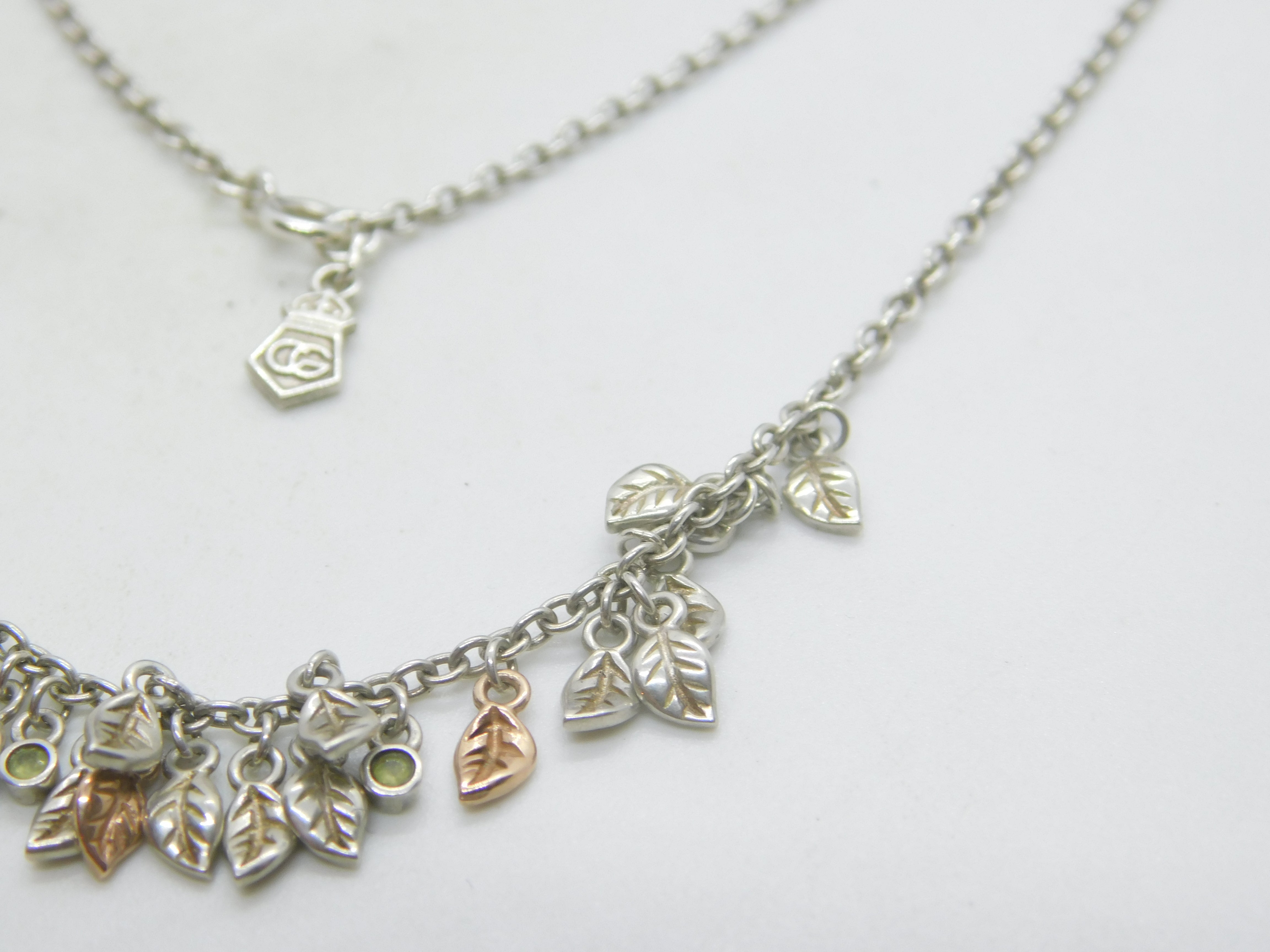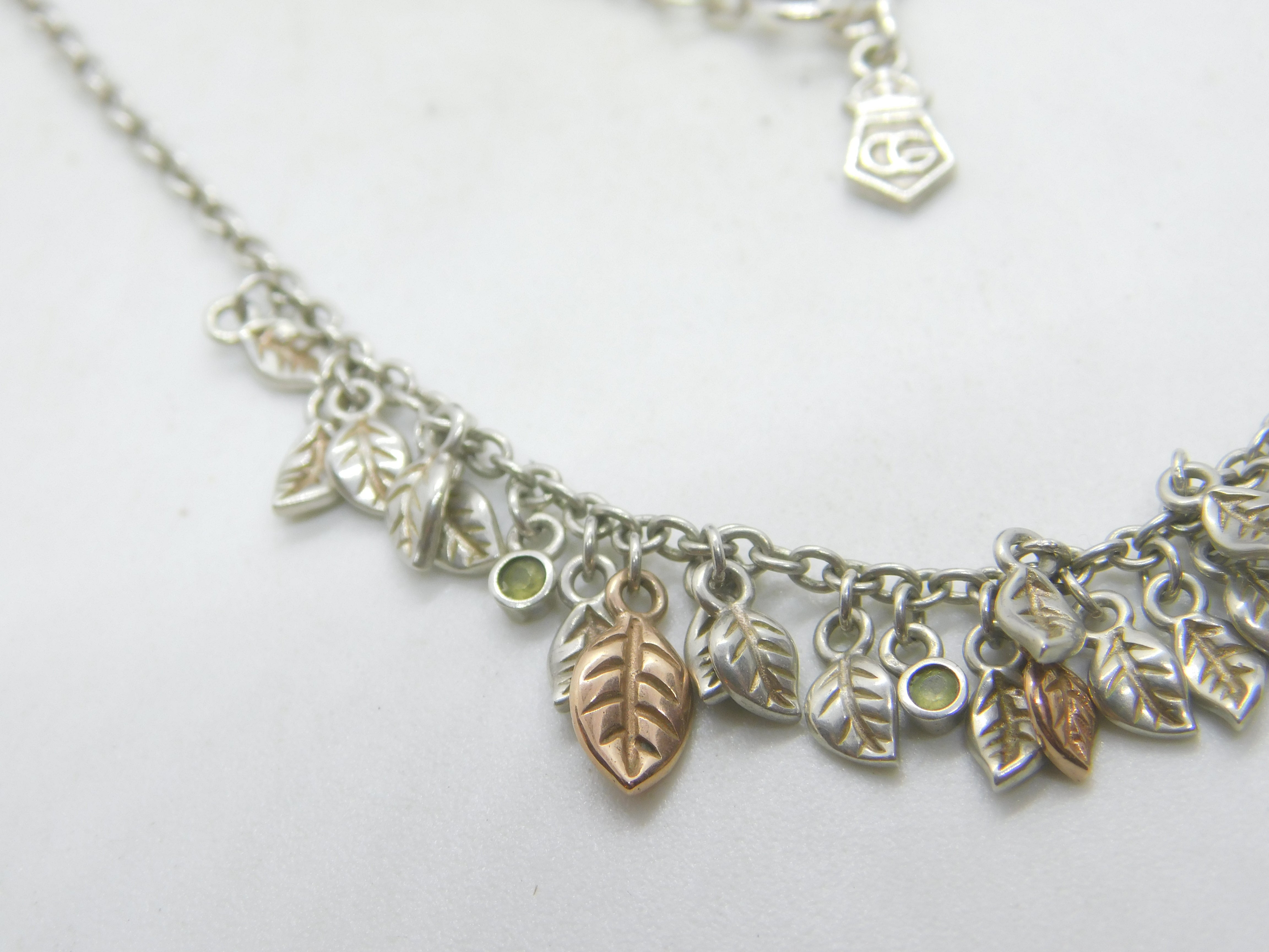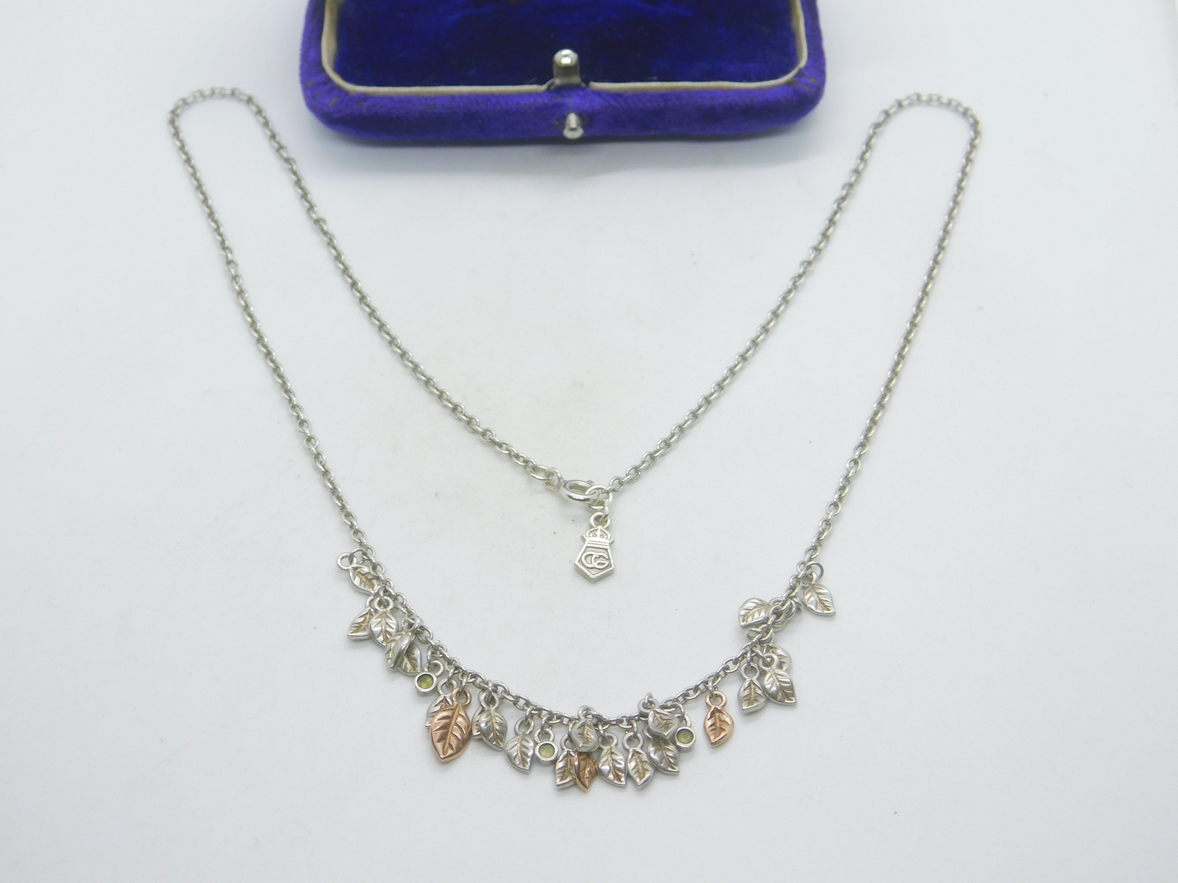 Clogau Welsh Sterling Silver & Peridot Leaf Pattern Necklace Vintage c2000