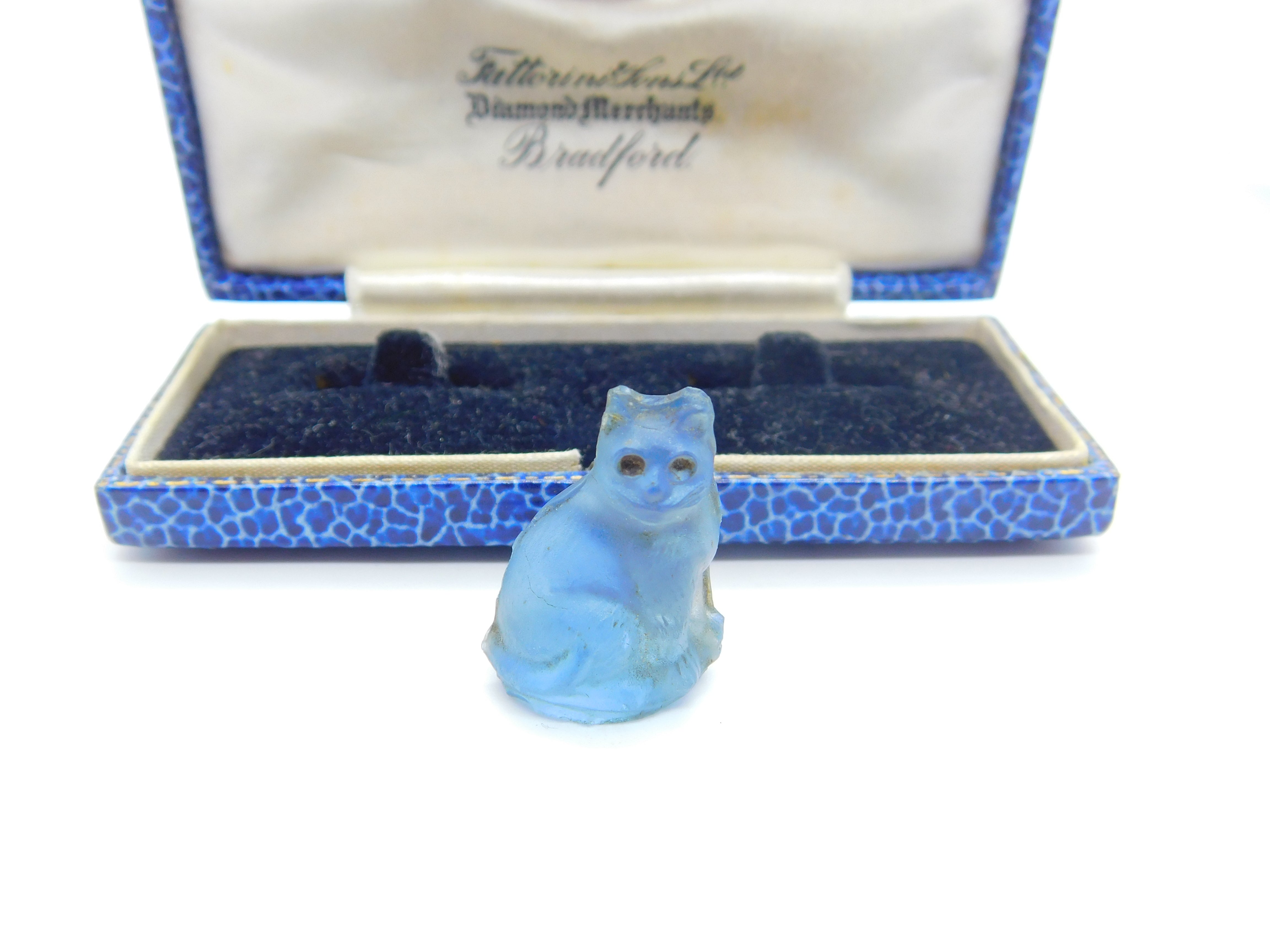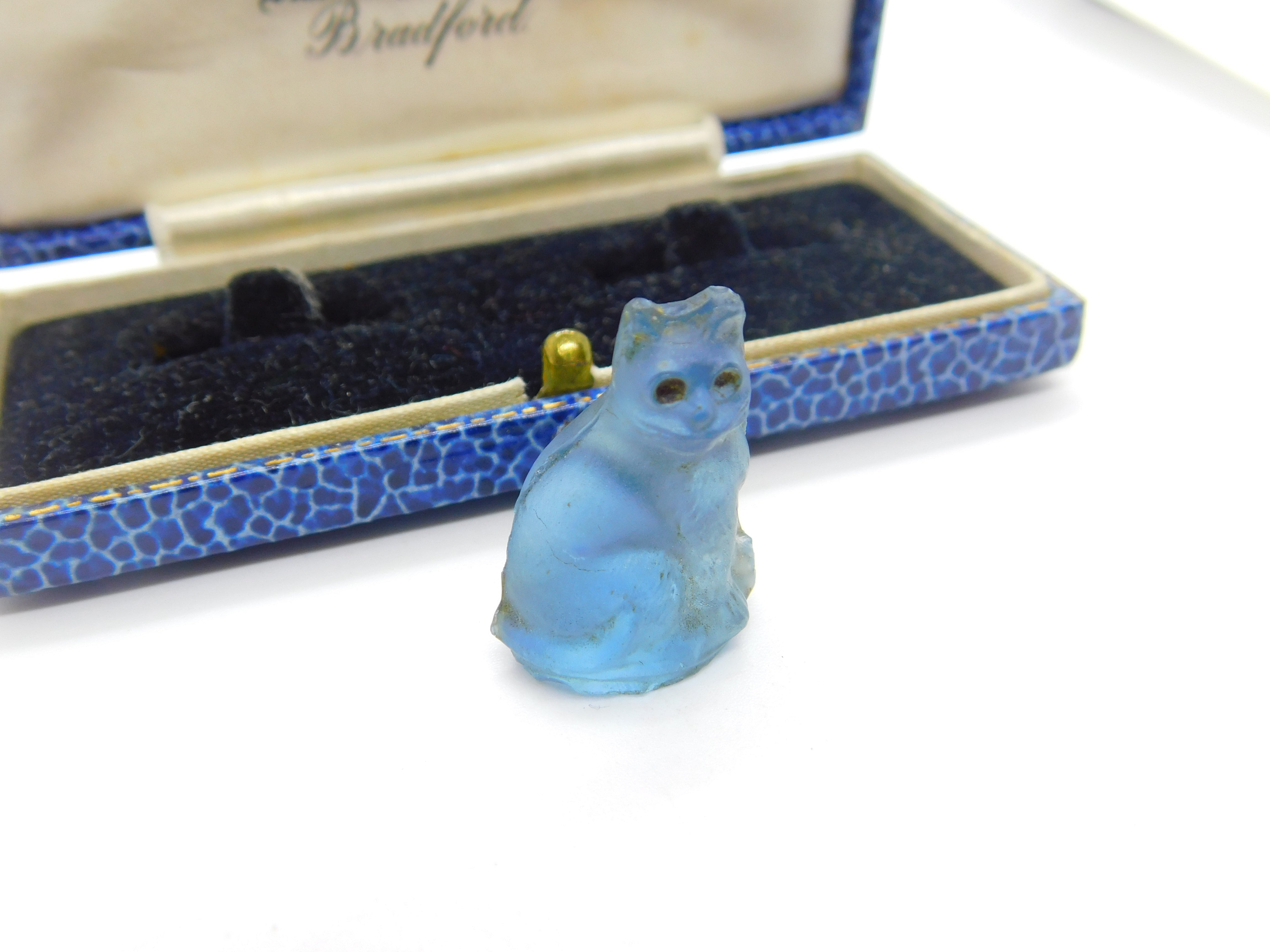 Czech Light Blue Glass Cat Cracker Charm Keepsake Antique c1920