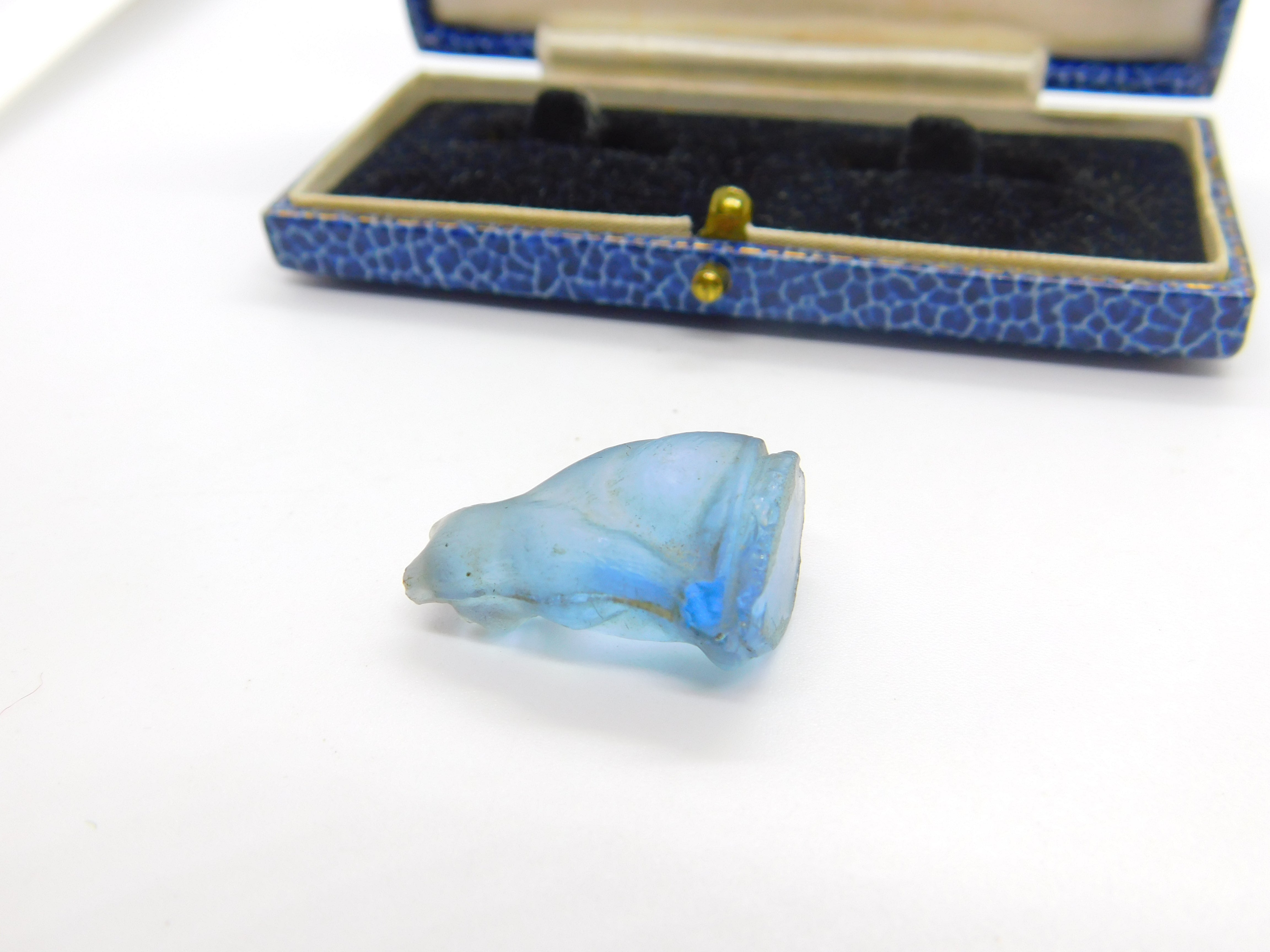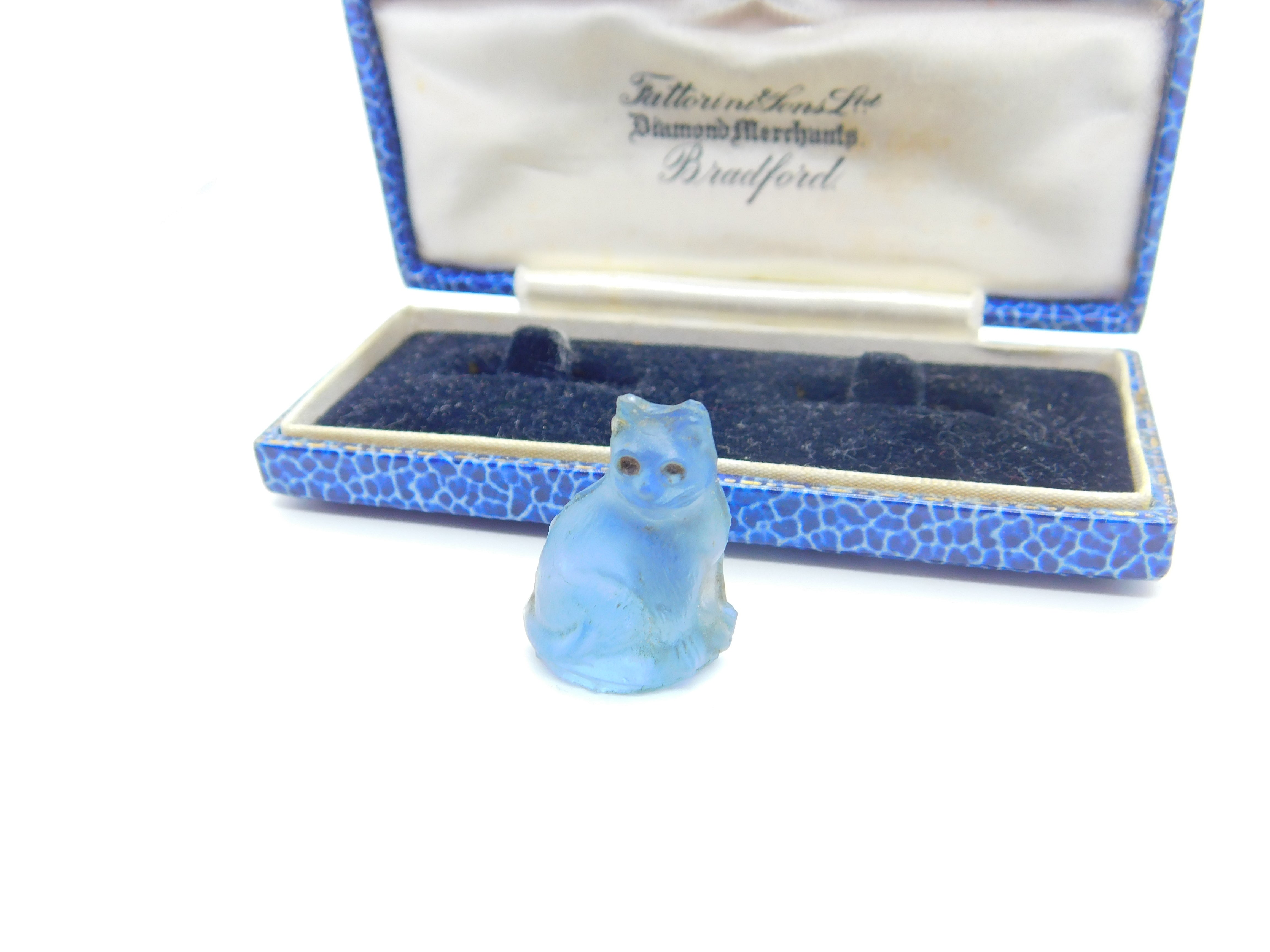 Details: A fantastic and wonderfully designed antique art deco Czechoslovakian light blue glass cat cracker charm with fun detail c1920 - clear chips please see pictures. This is a wonderful item that would make a perfect gift or addition to any collection. The BOX pictured is for PRESENTATION ONLY and is NOT included in the listings but used to frame the pictures unless specifically stated otherwise.
