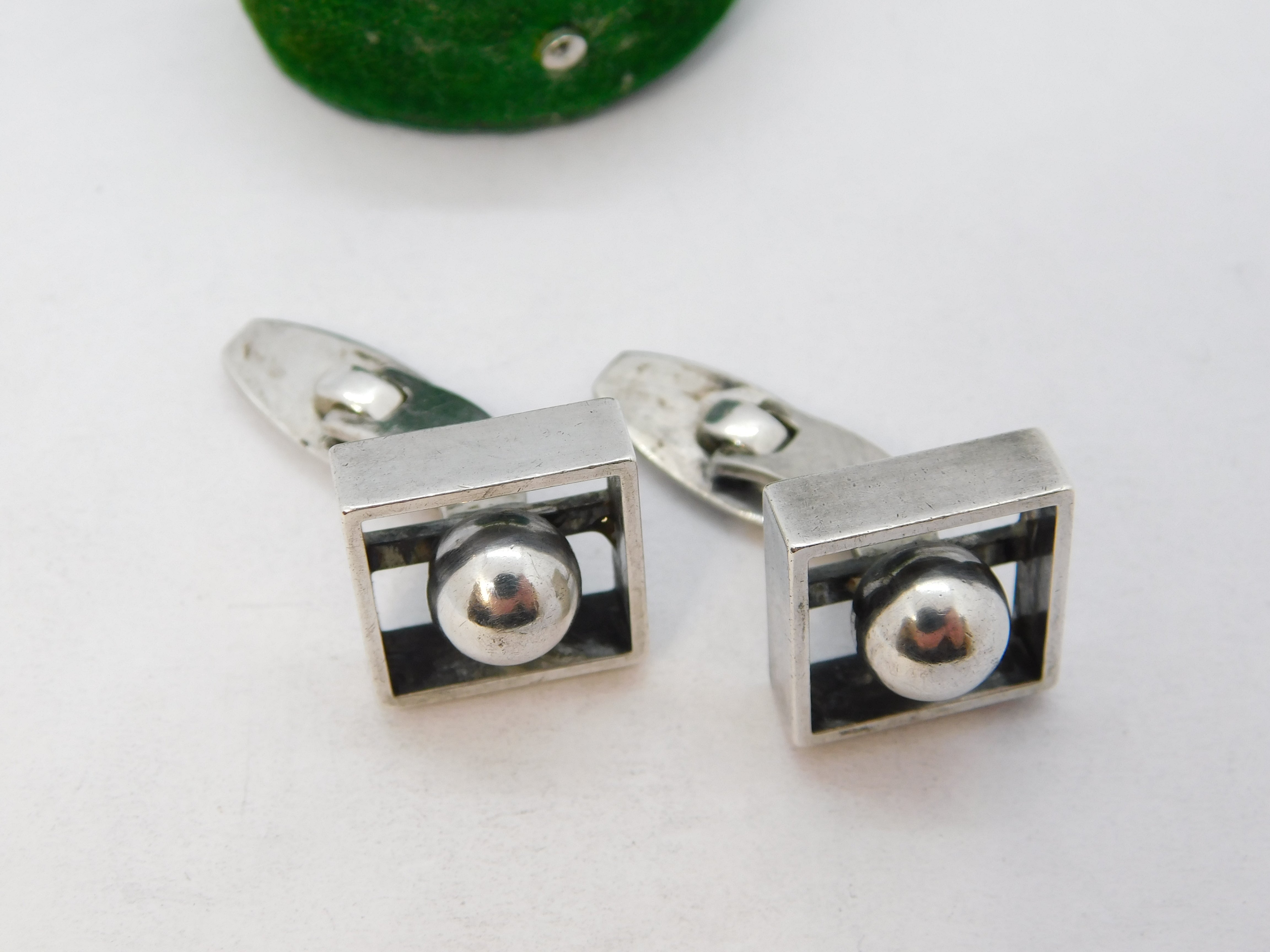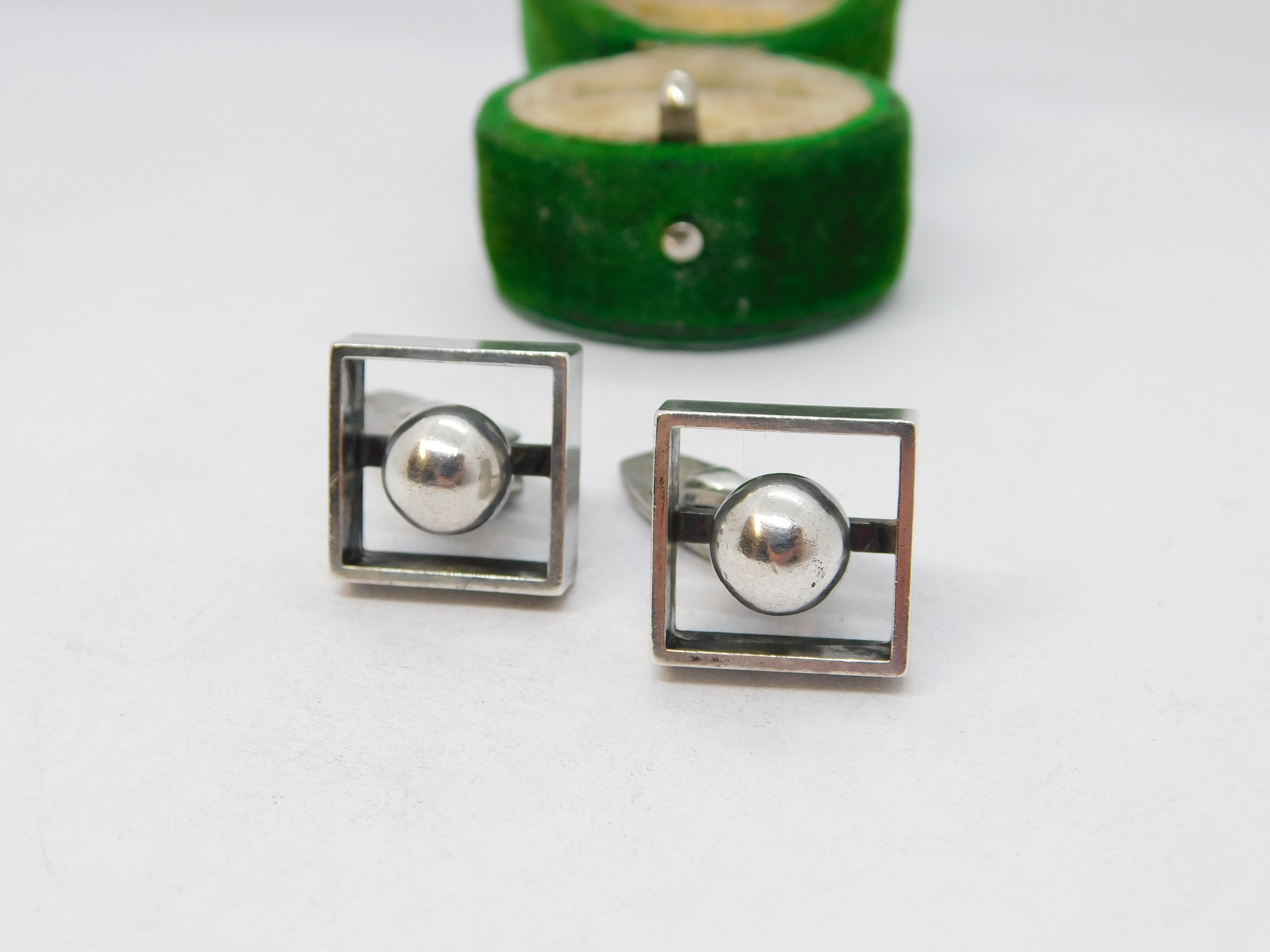 Danish Pair of Sterling Silver Modernist Gents Cufflinks Vintage c1950 N.E From