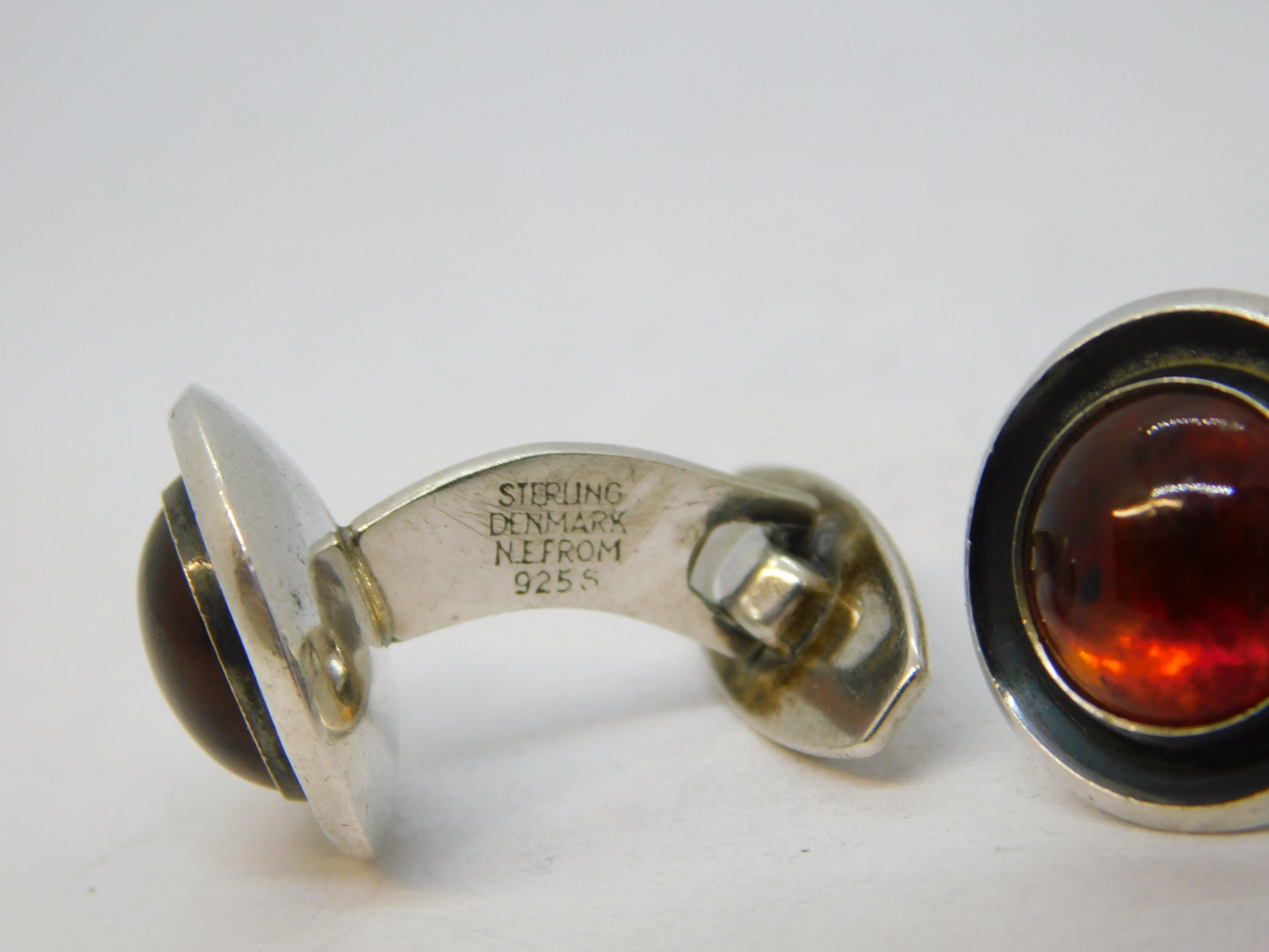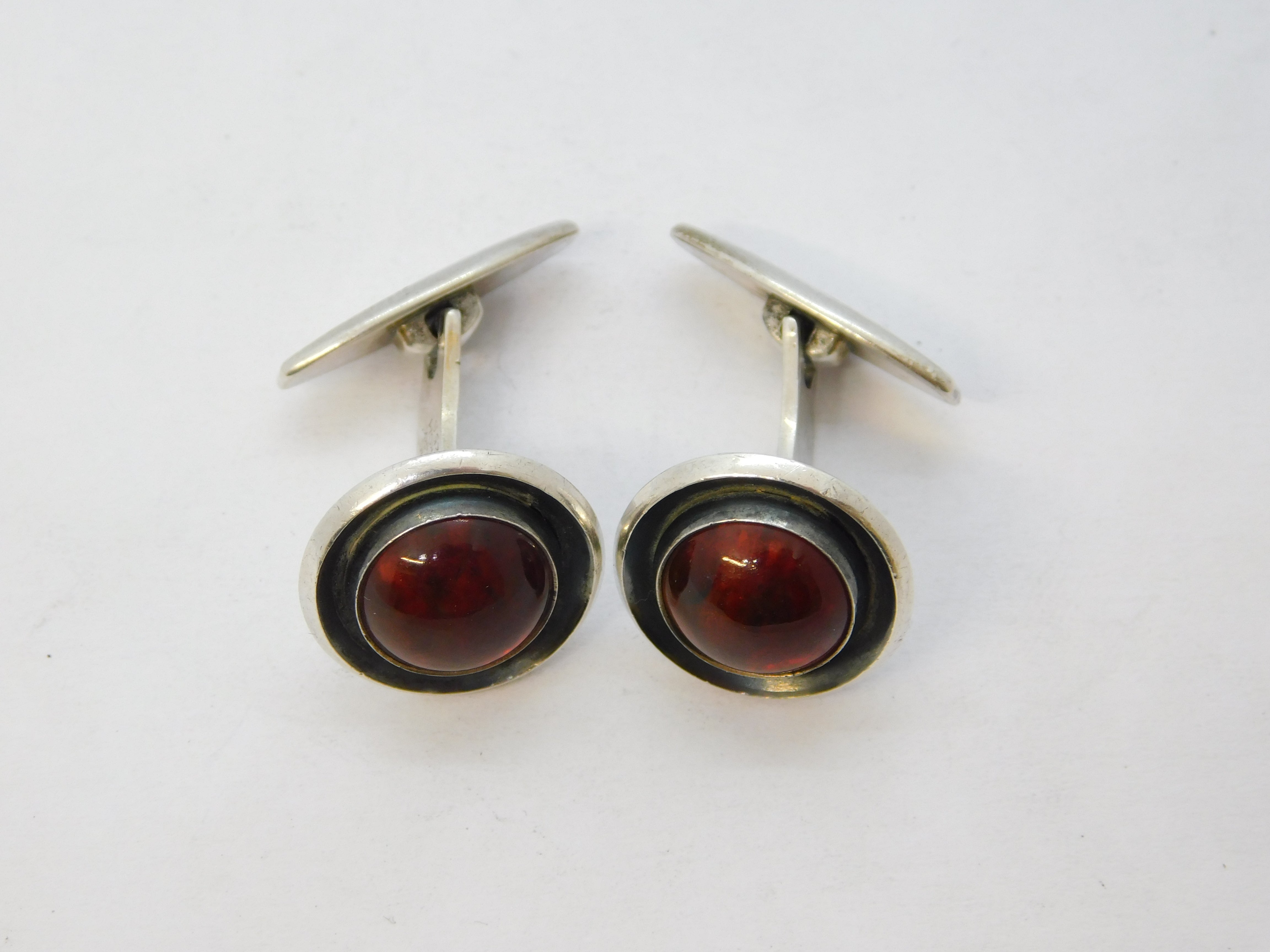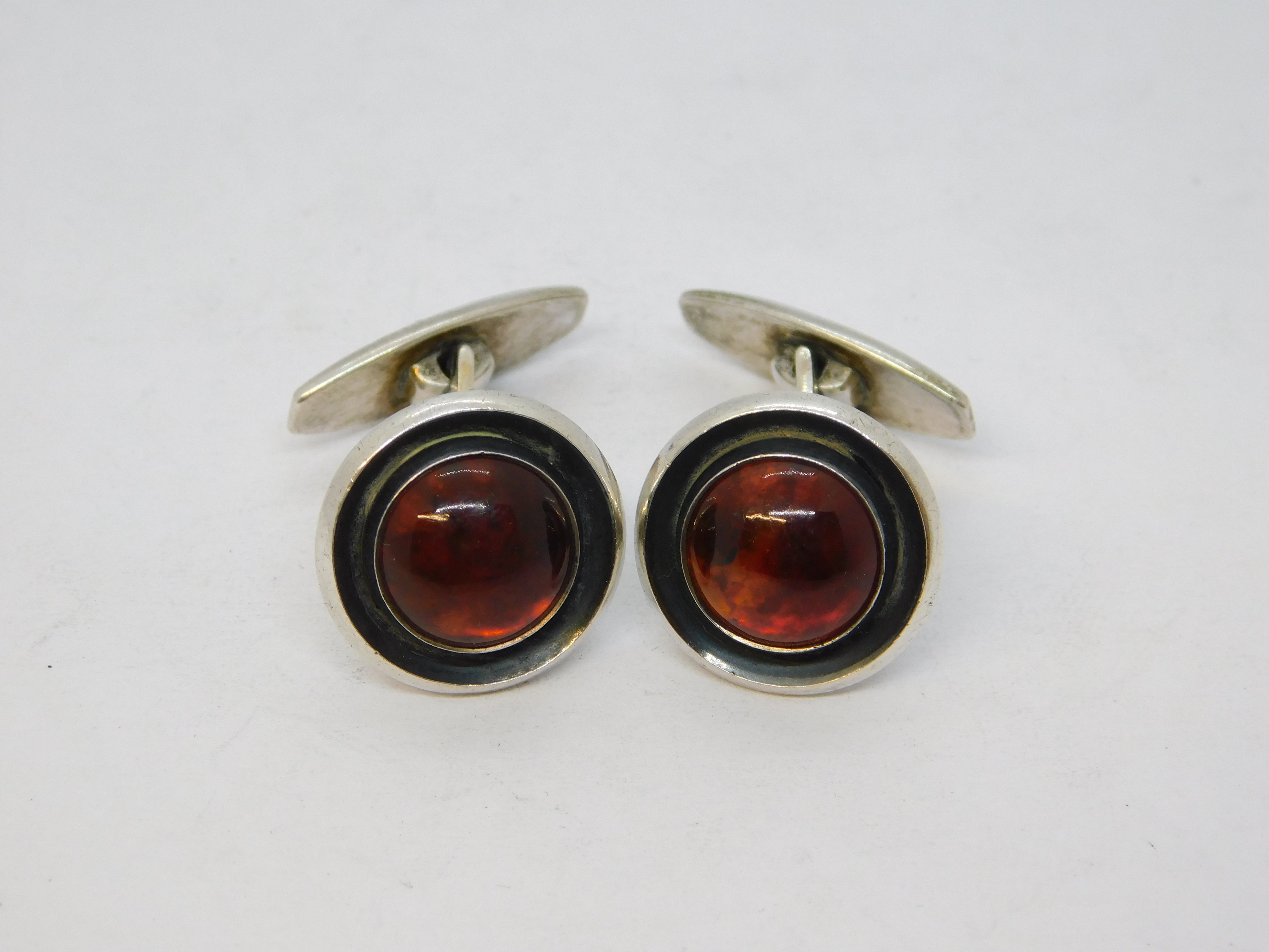 Danish Sterling Silver & Baltic Amber Gents Cufflinks Vintage N.E From c1950