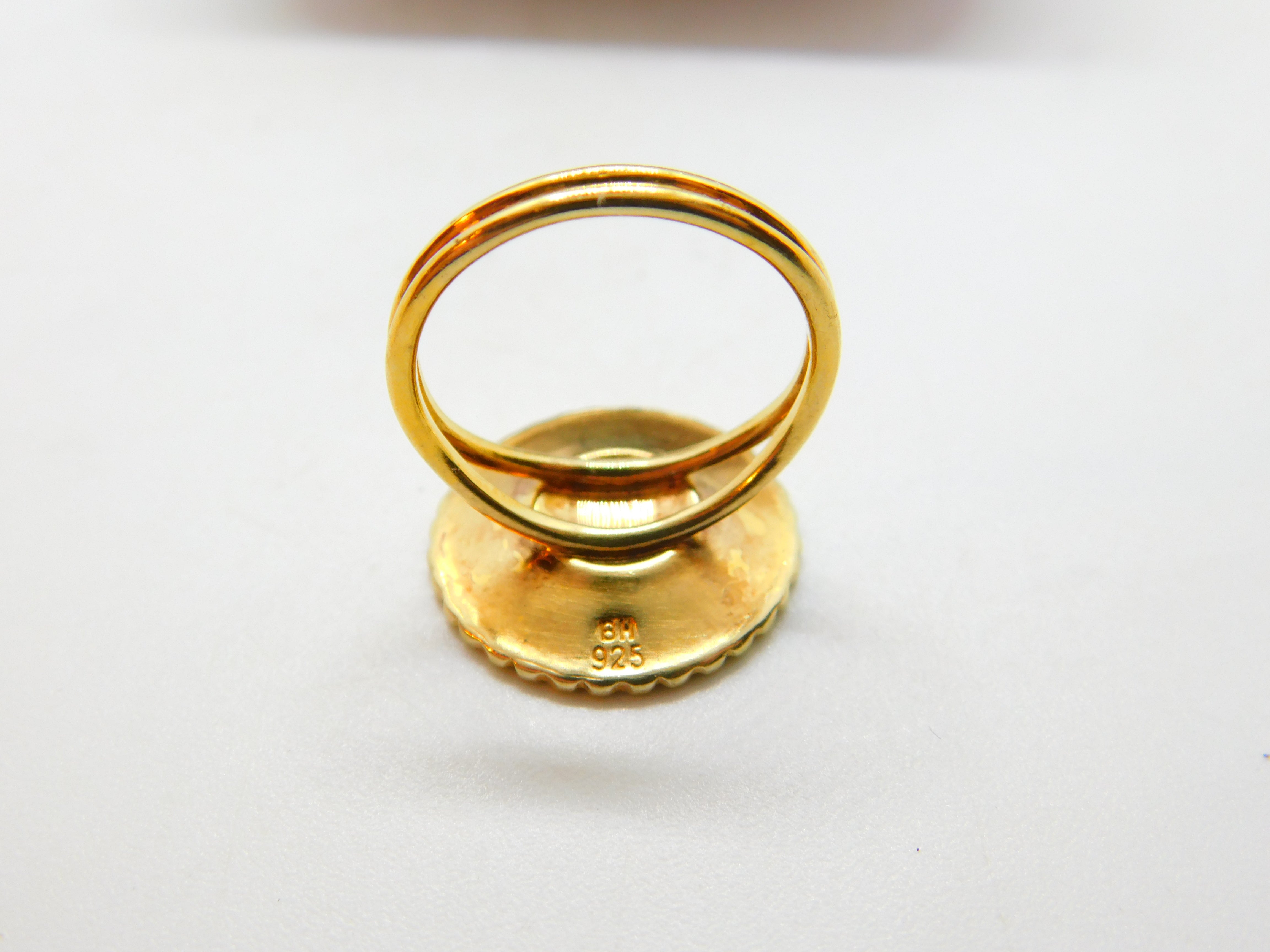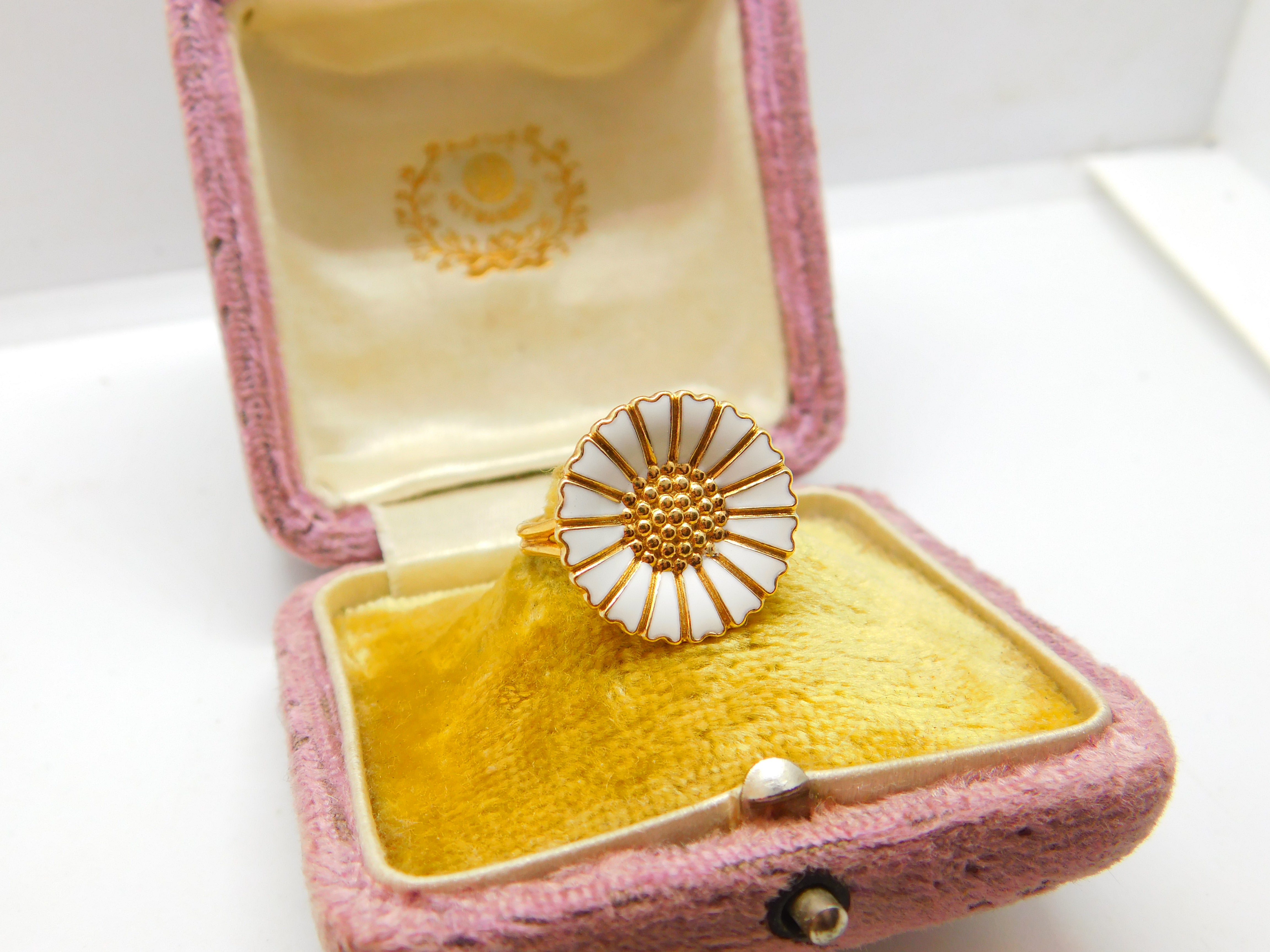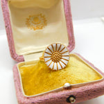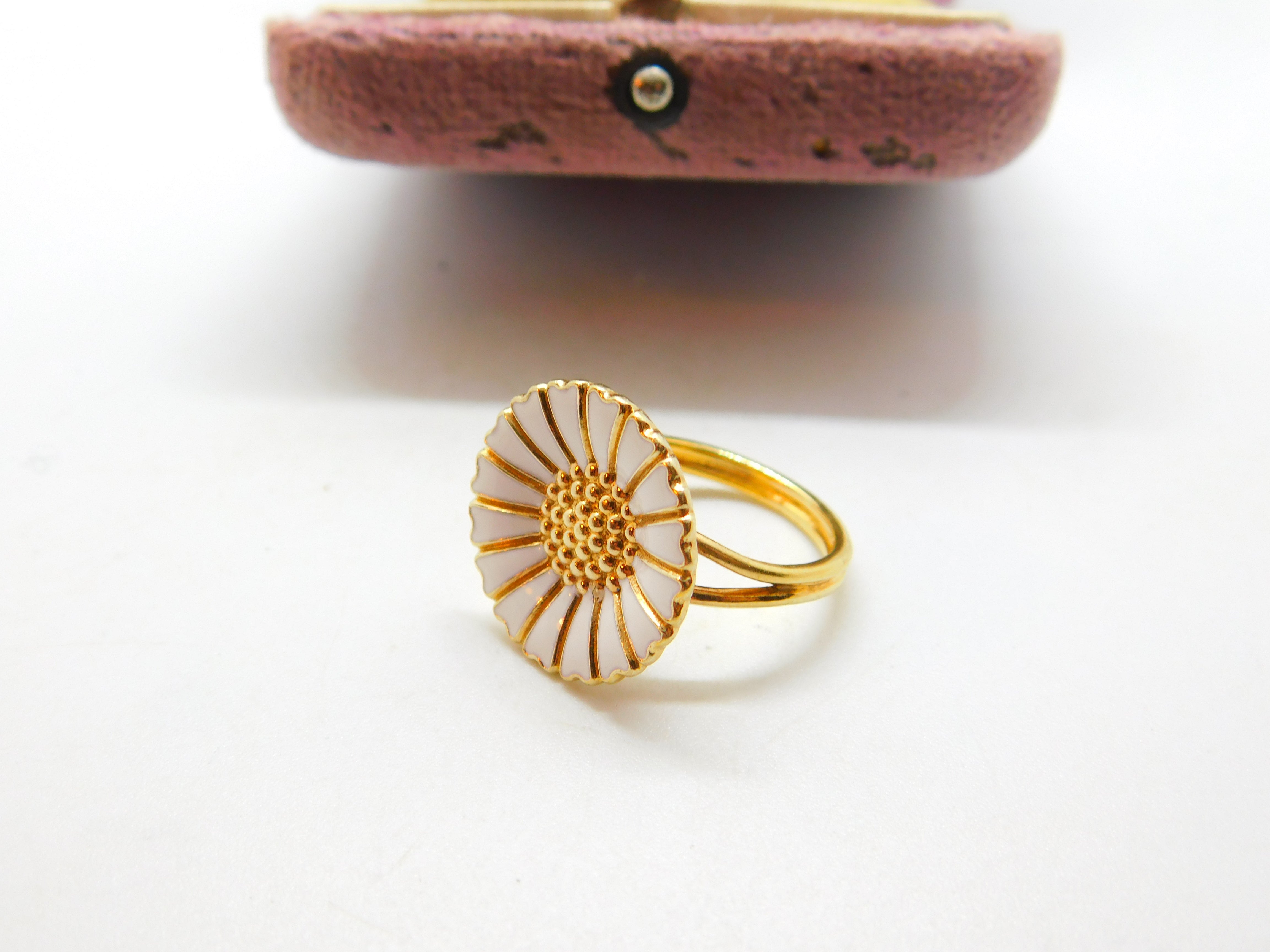 Danish Sterling Silver Gilt & White Enamel Daisy Flower Band Ring Mid-Century