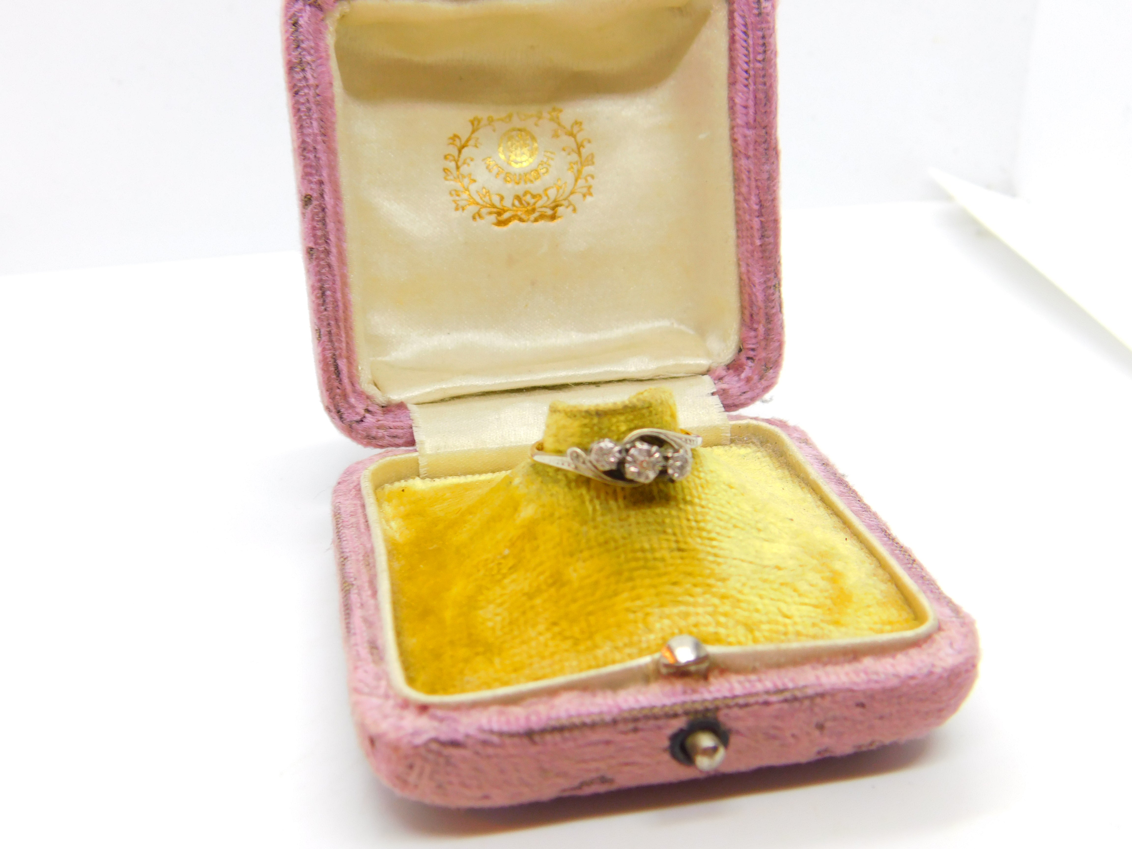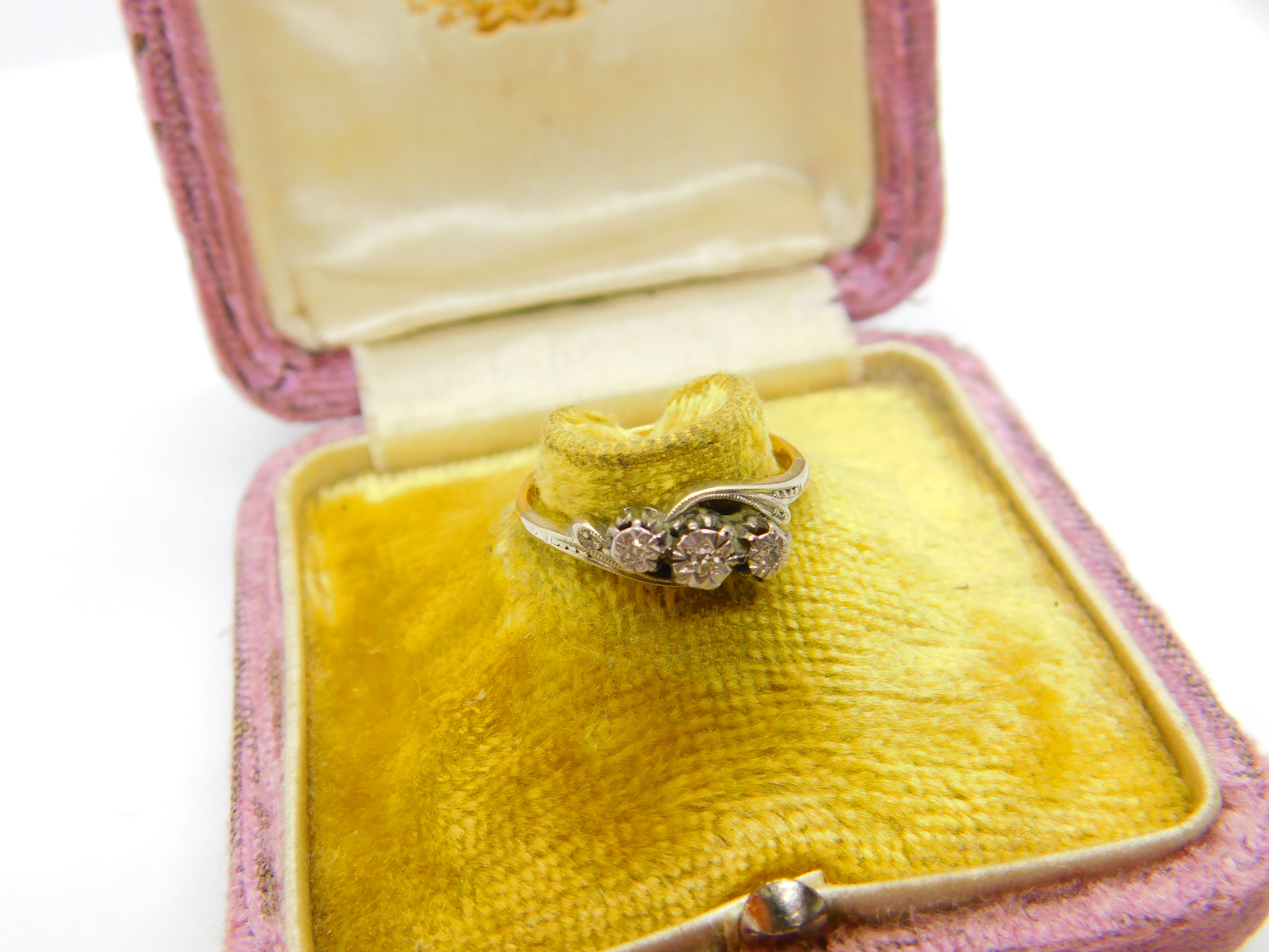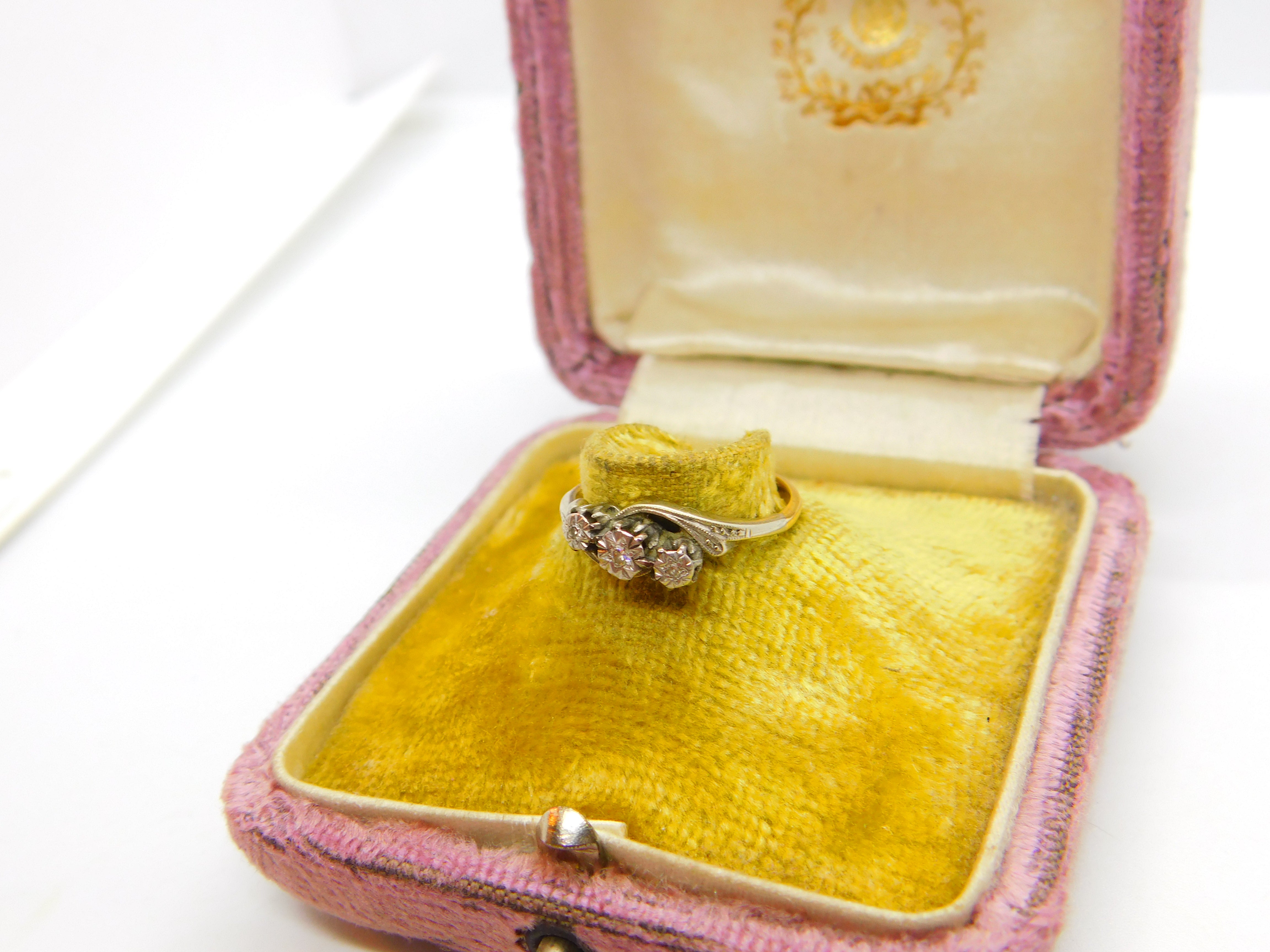 Diamond 18ct Yellow Gold and Platinum Trilogy Ring Antique Art Deco c1920