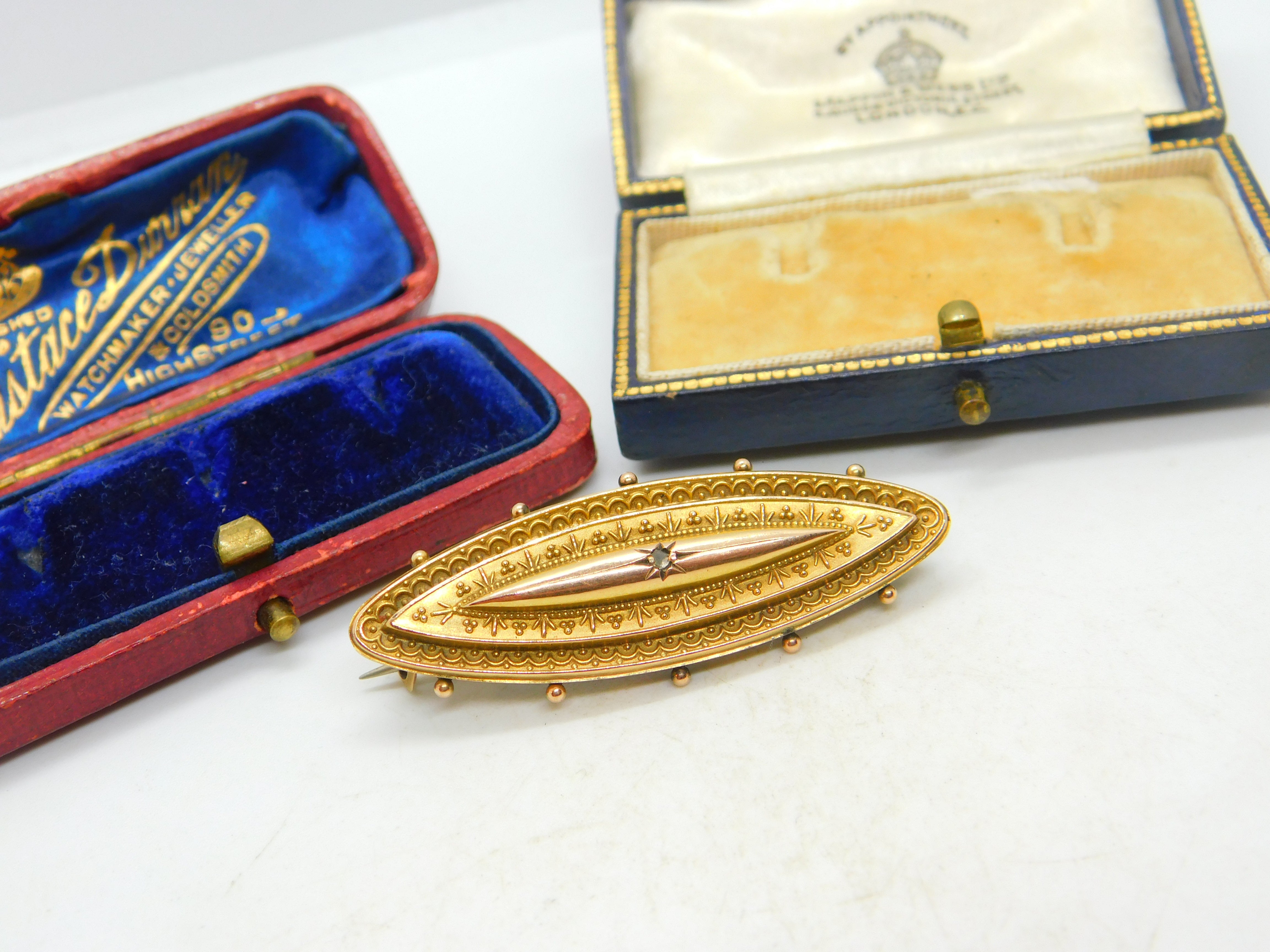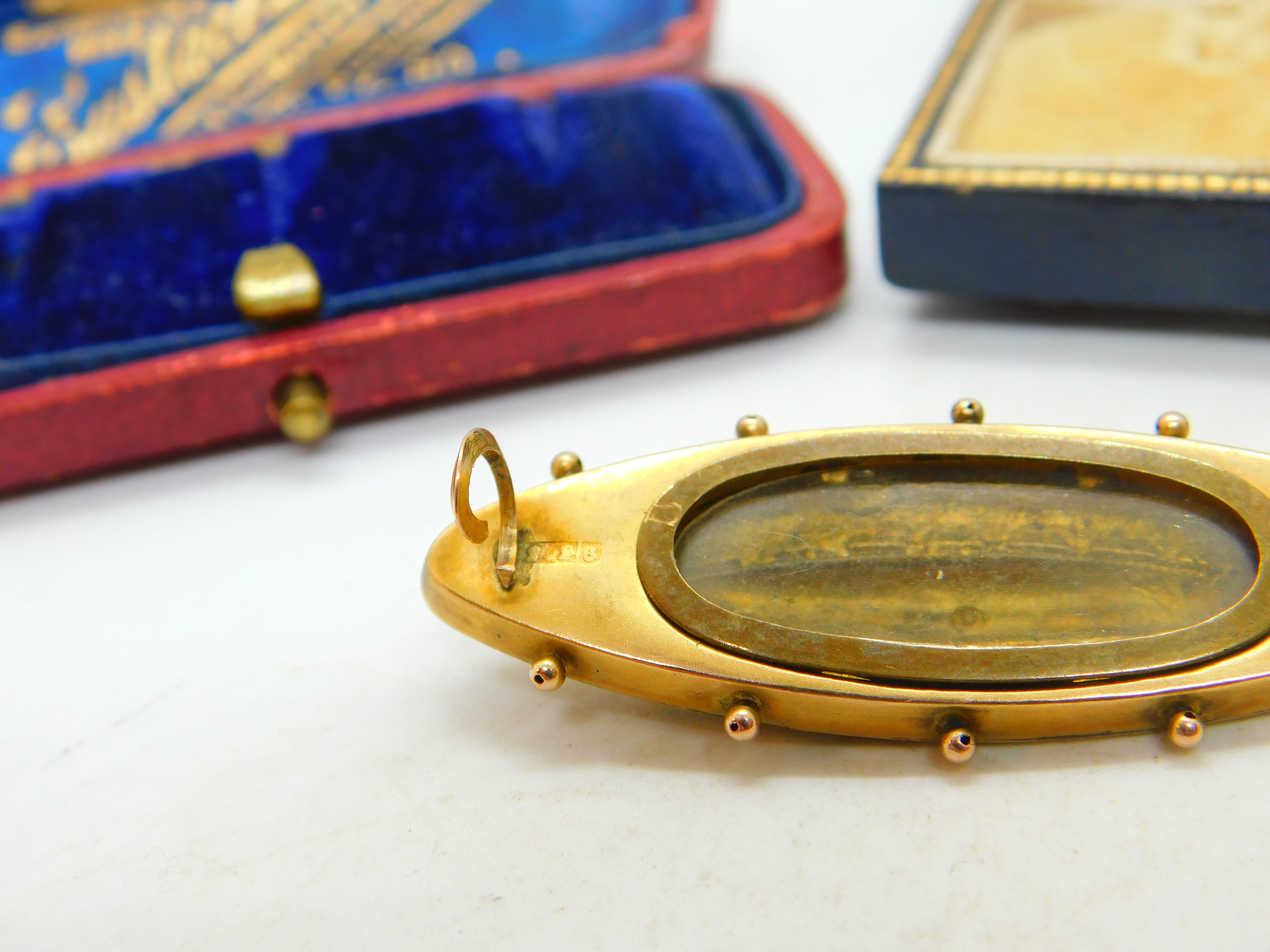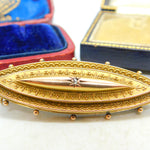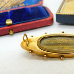 Diamond in 9ct Gold Locket Mourning Brooch Pin Antique Victorian c1860