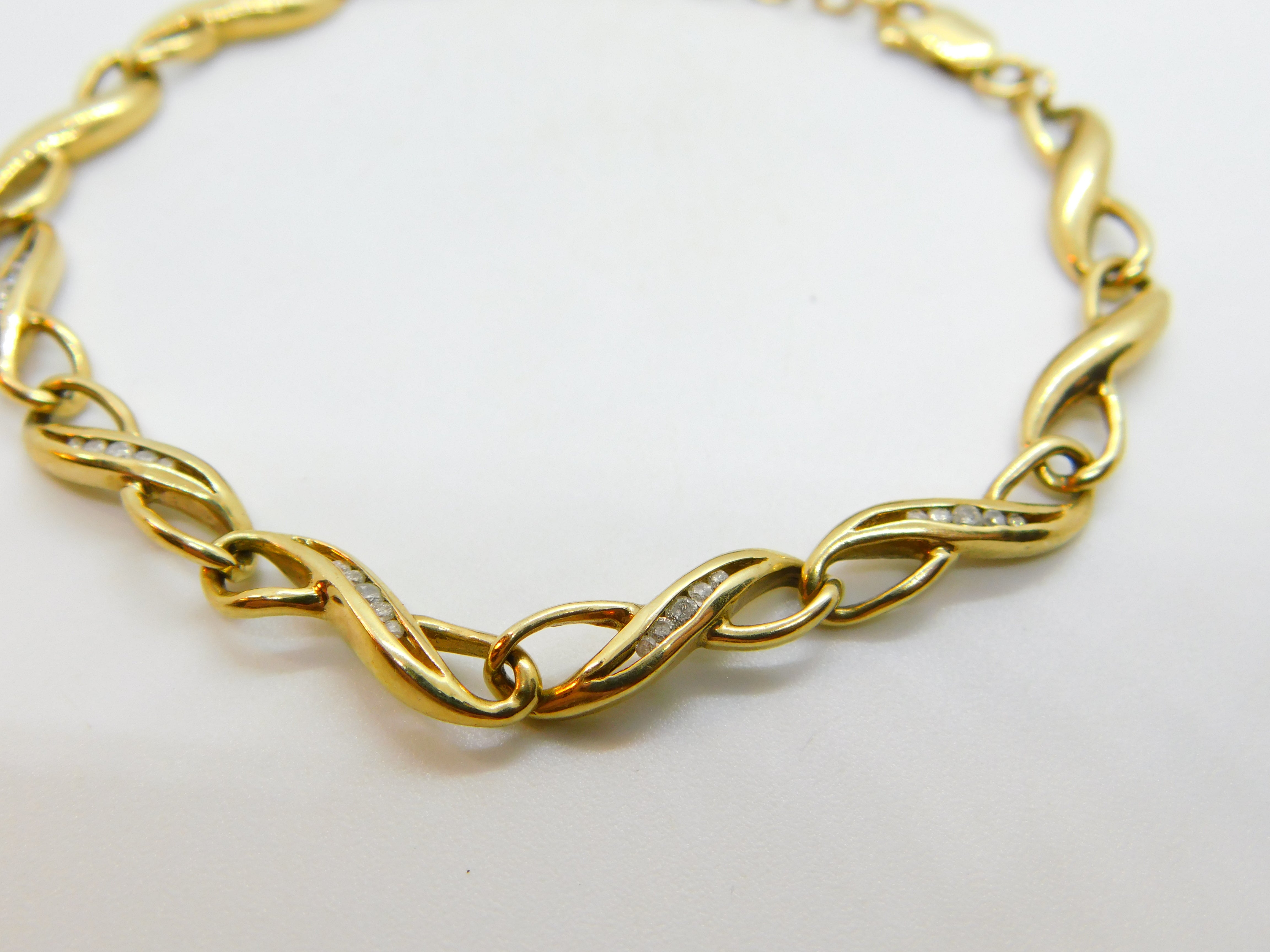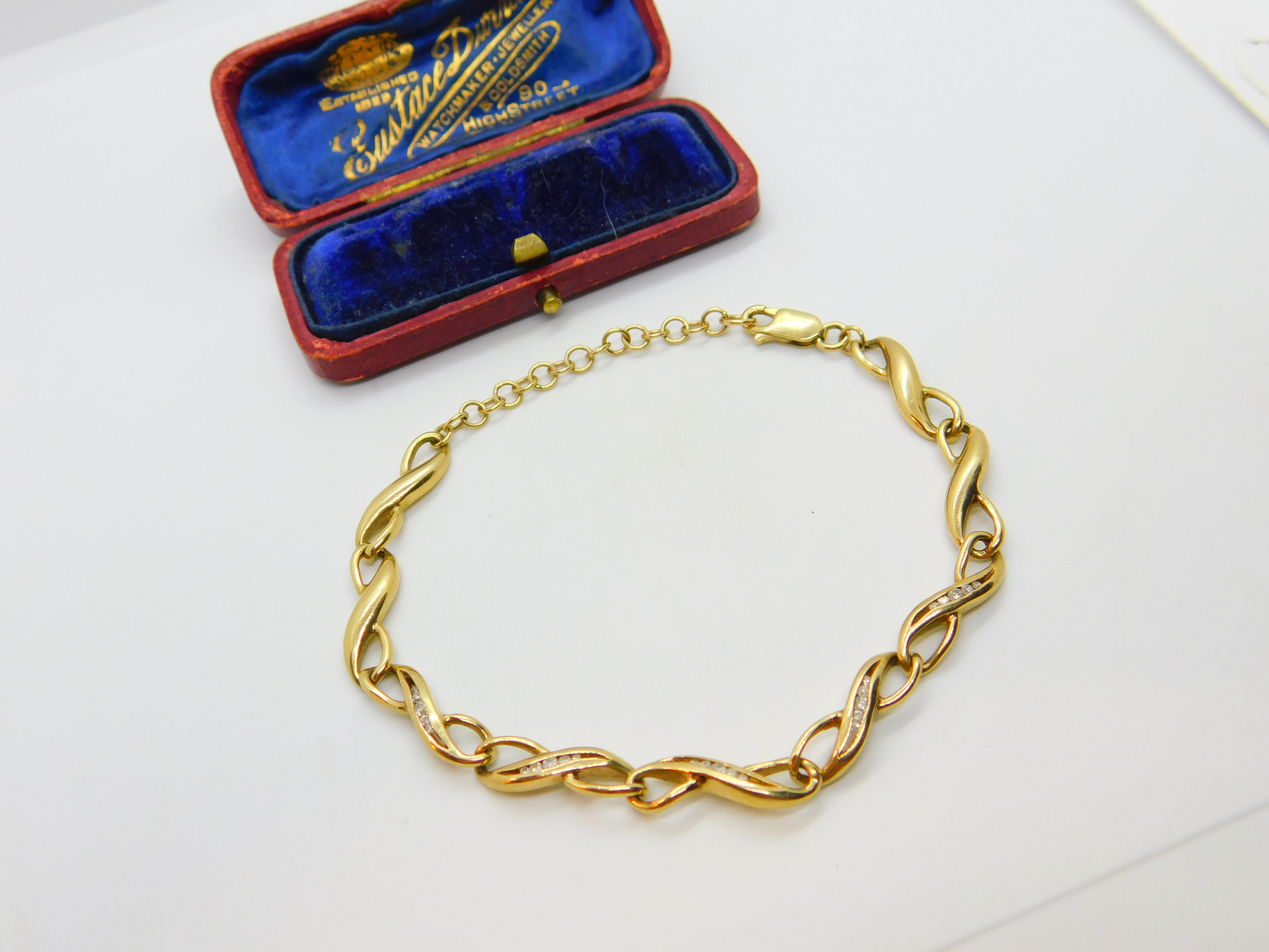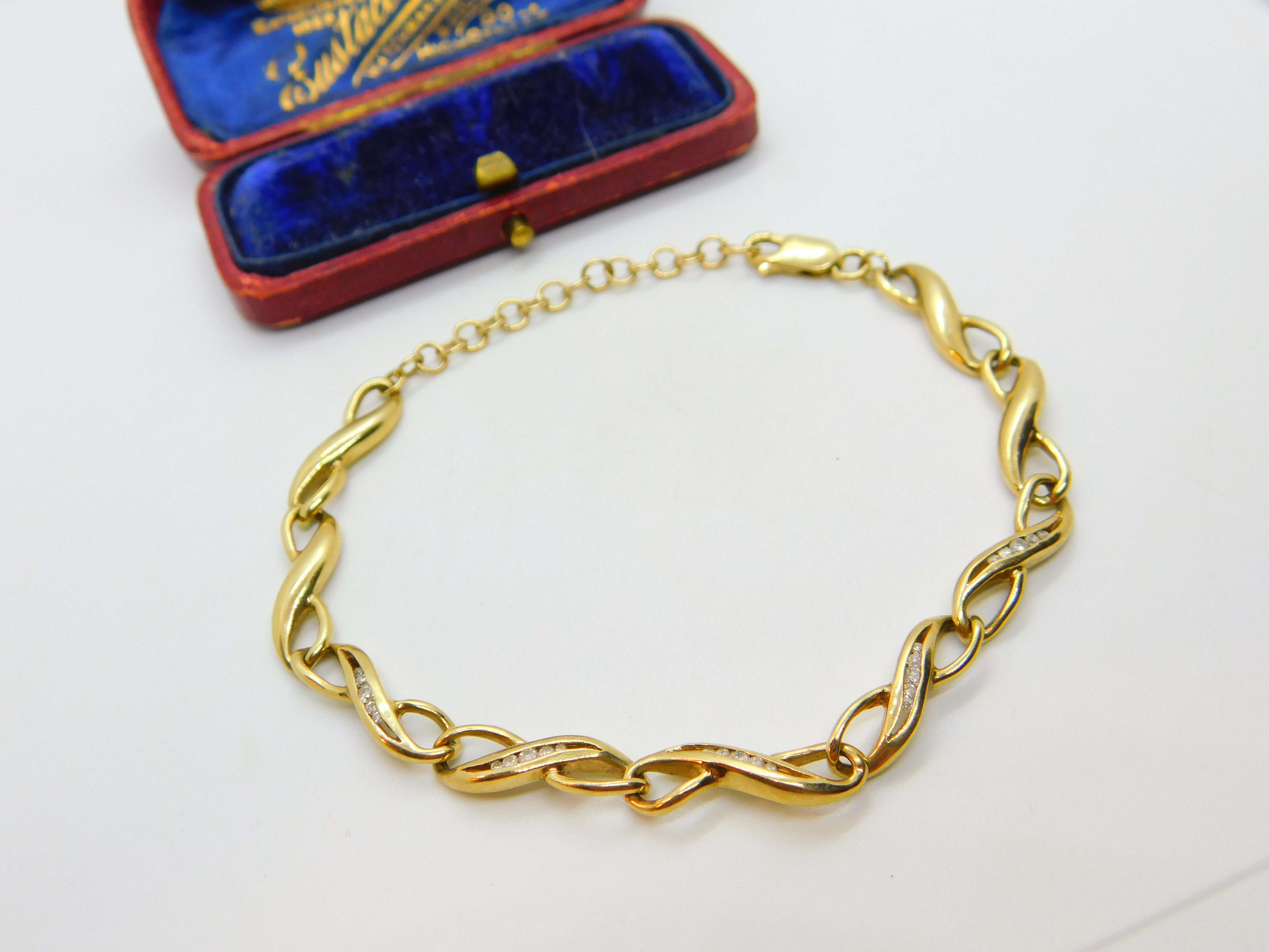 Diamond Set 9ct Yellow Gold Lover's Knot Chain Bracelet Vintage c1980