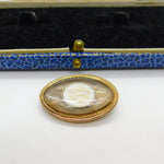 Early Georgian 9ct Rose Gold, Hair Weave & Pique Shell Mourning Brooch c1780