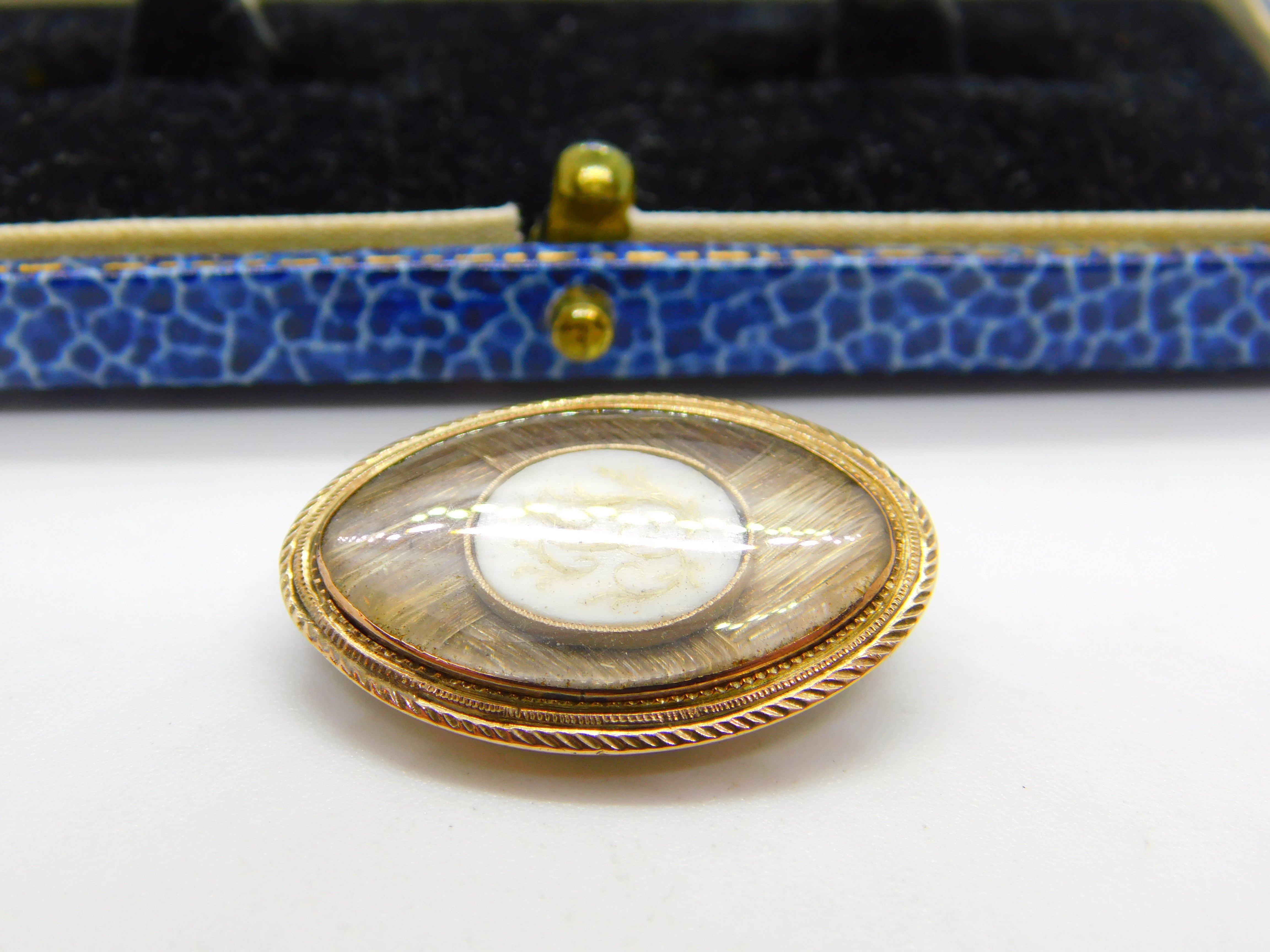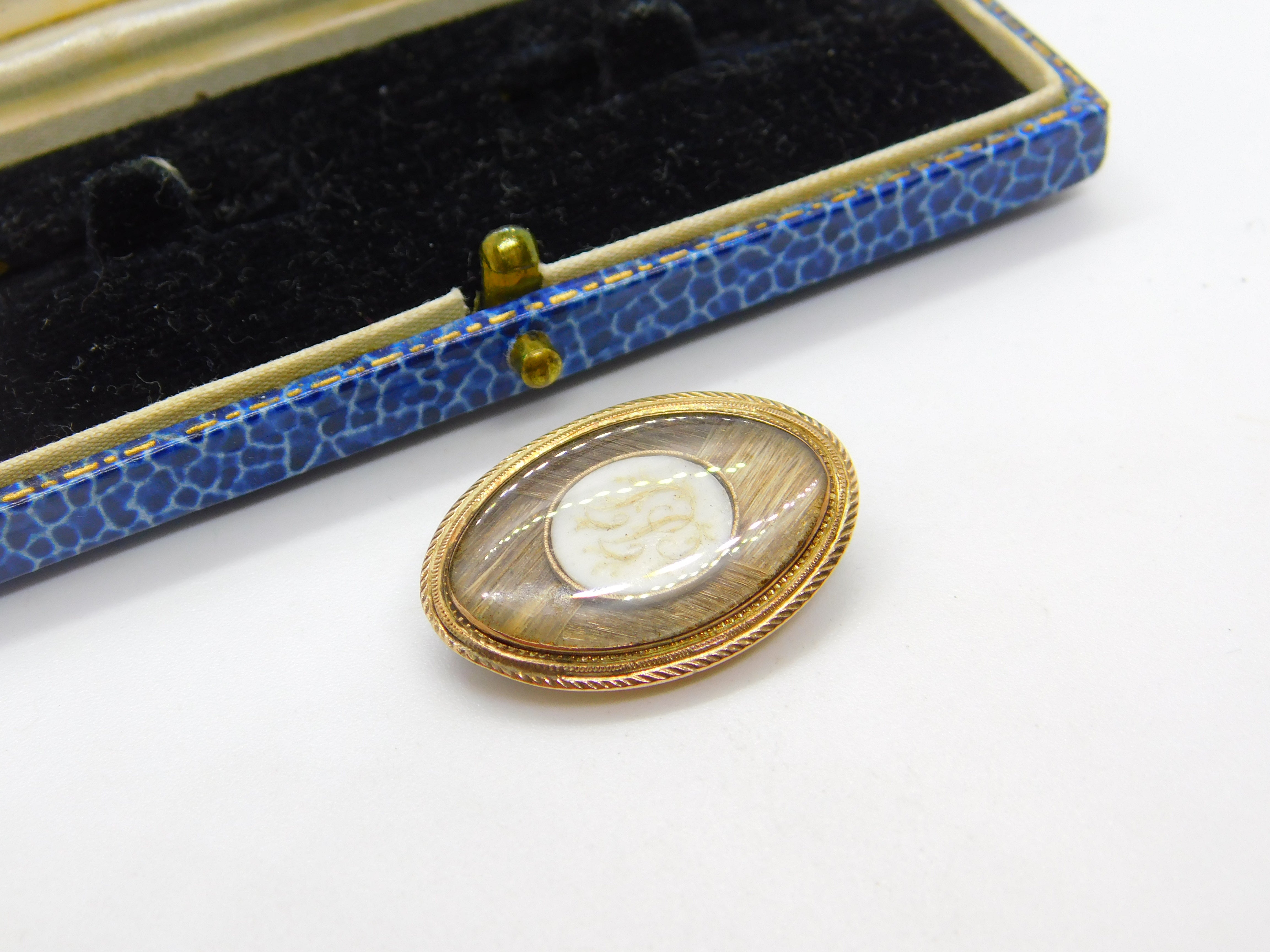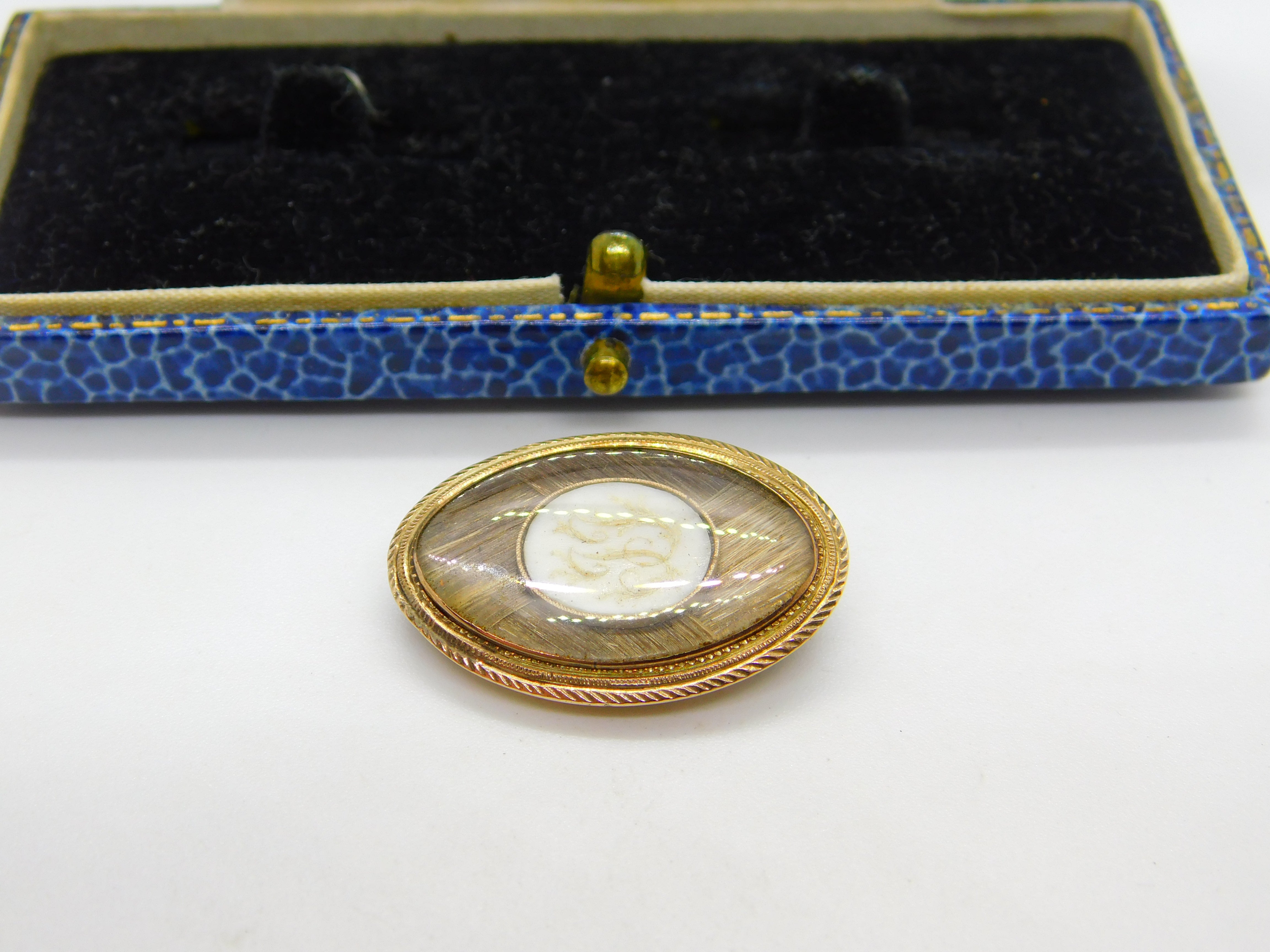 Details: A fantastic and wonderfully designed antique early Georgian 9ct rose gold oval form mourning brooch set with gorgeous hair weave surrounding a gold pique inlaid shell to the centre showing the initials JJ c1780. The gold has been XRF tested and excellent condition to the front. This is a wonderful item that would make a perfect gift or addition to any collection. The BOX pictured is for PRESENTATION ONLY and is NOT included in the listings but used to frame the pictures unless specifically stated otherwise.