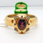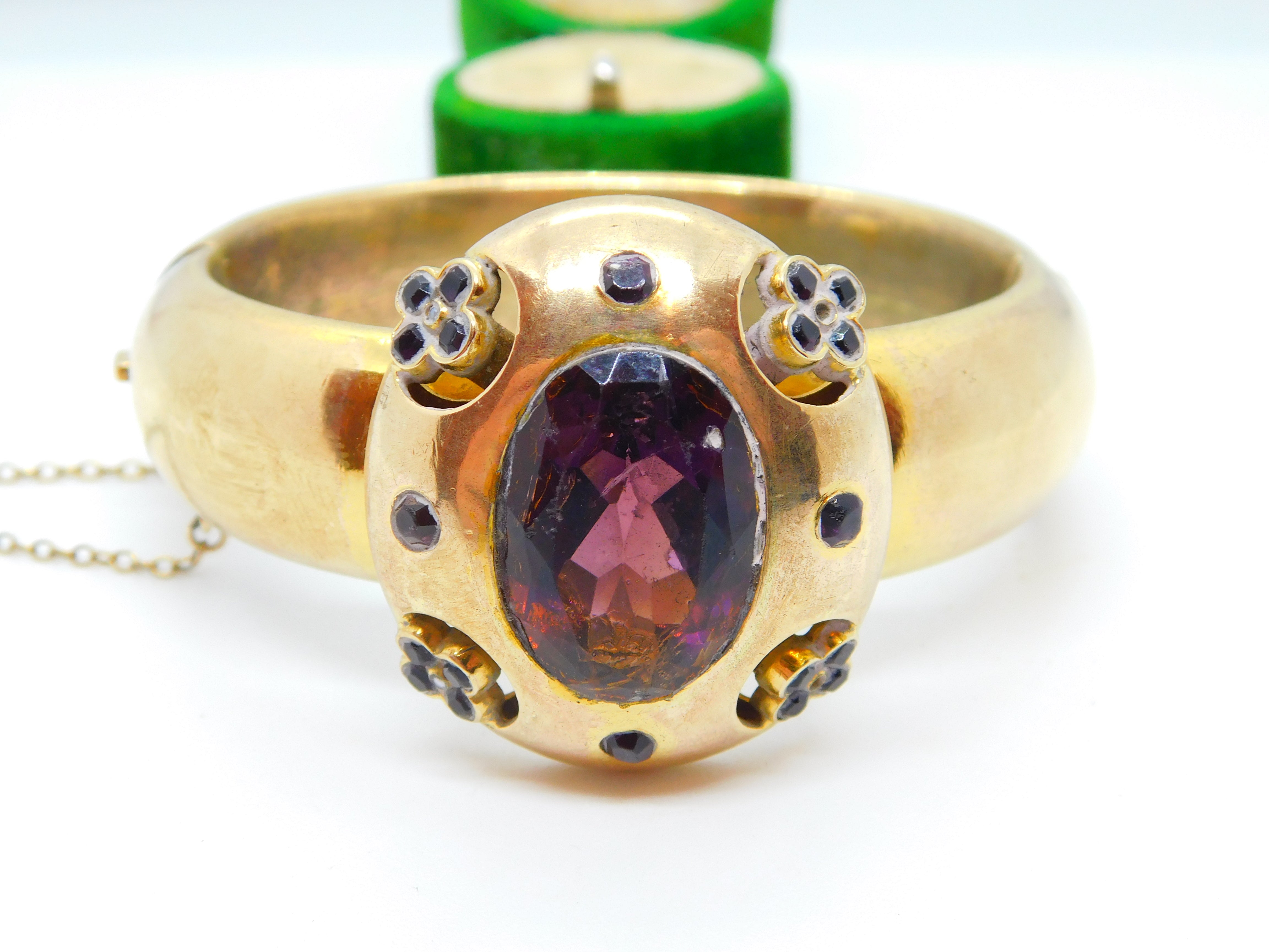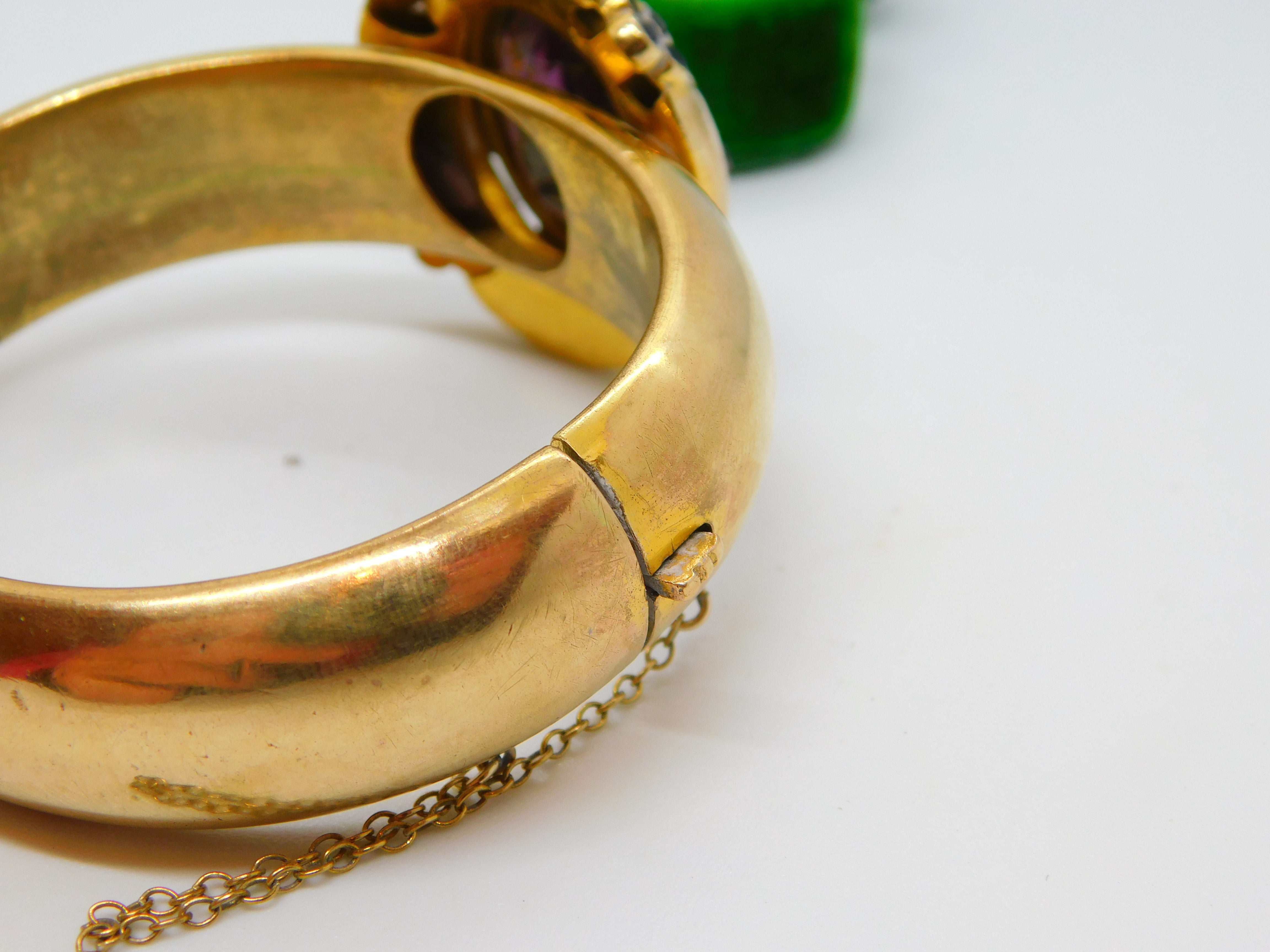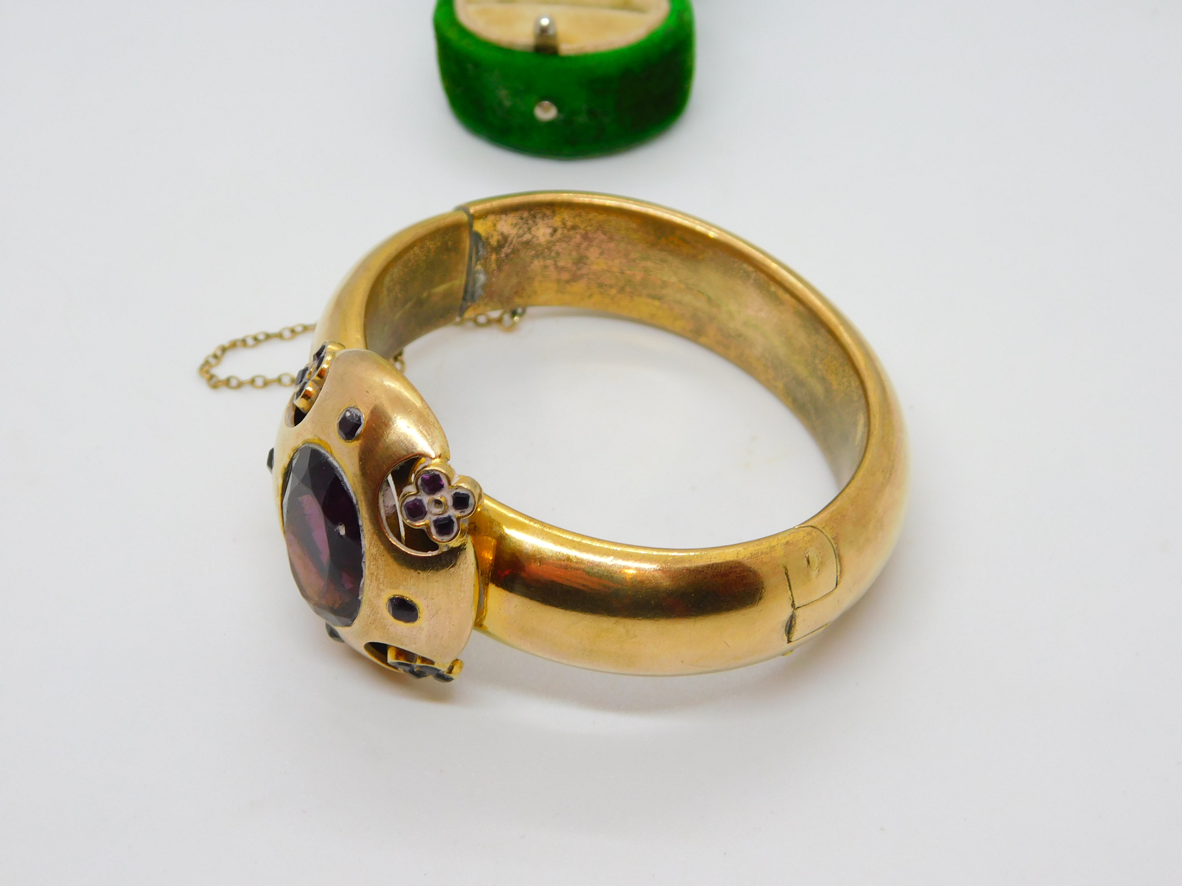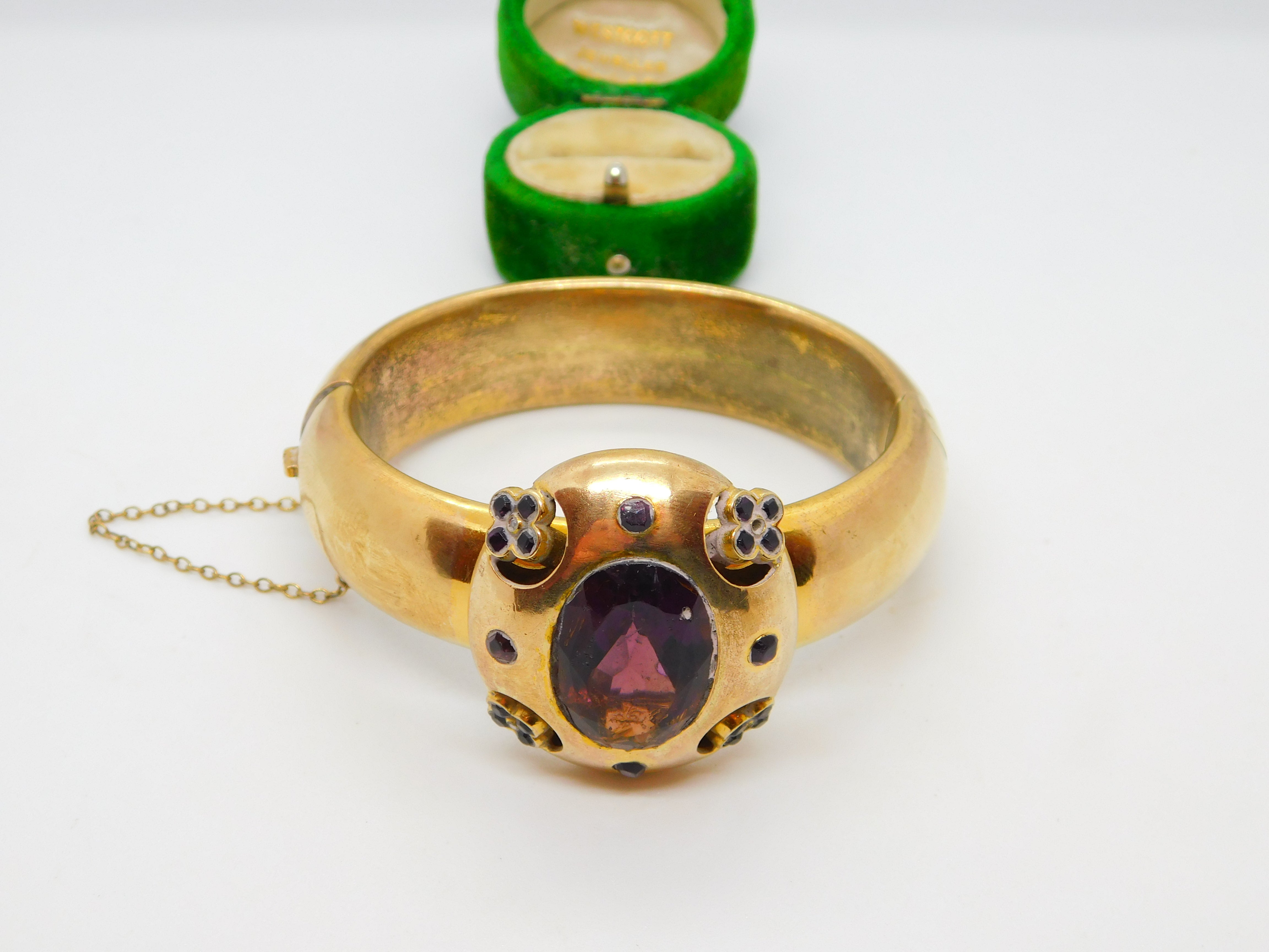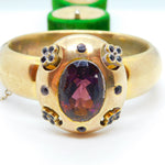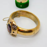 Early Victorian Pinchbeck & Amethyst Floral Paste Cuff Bangle Antique c1840