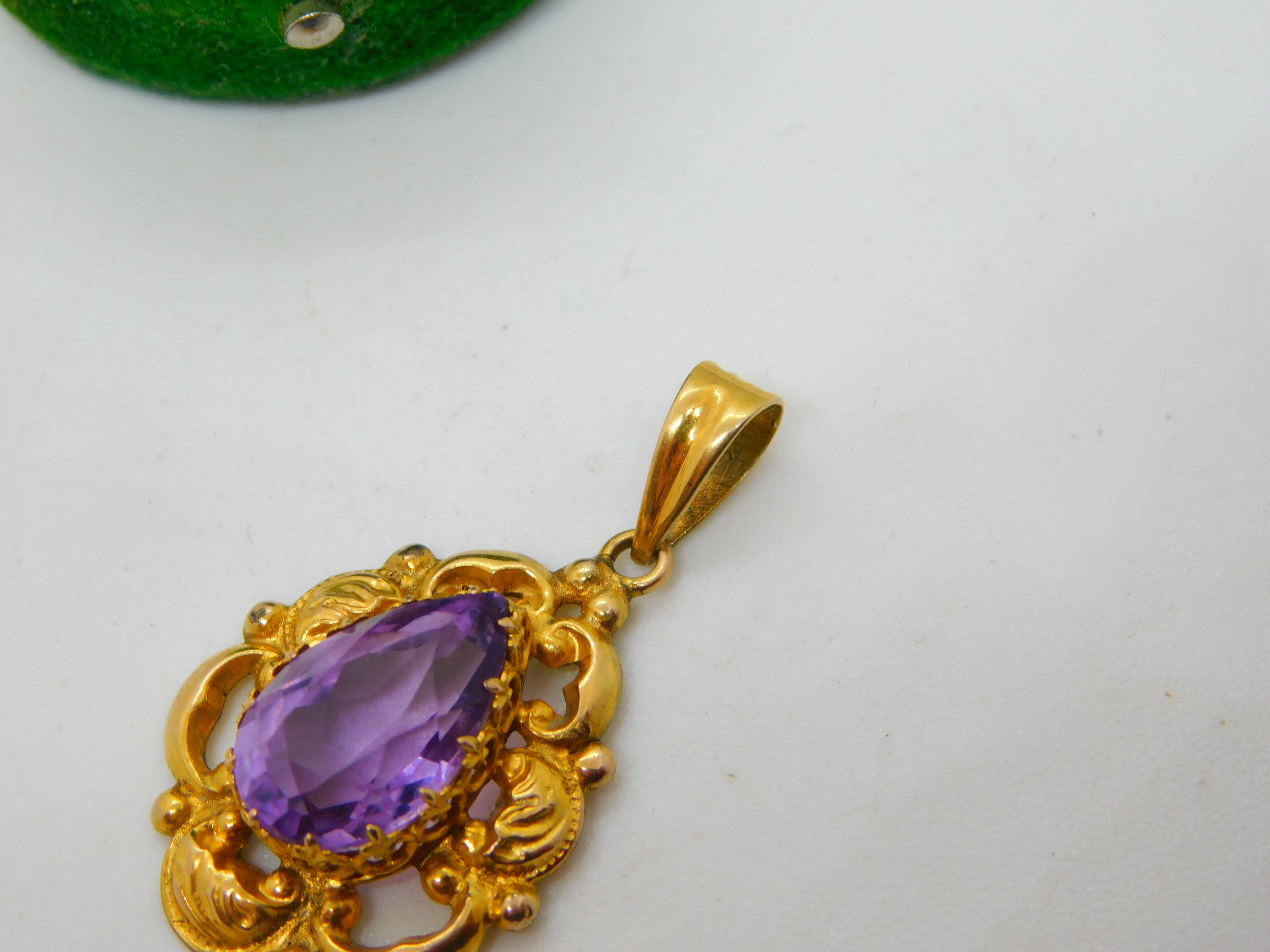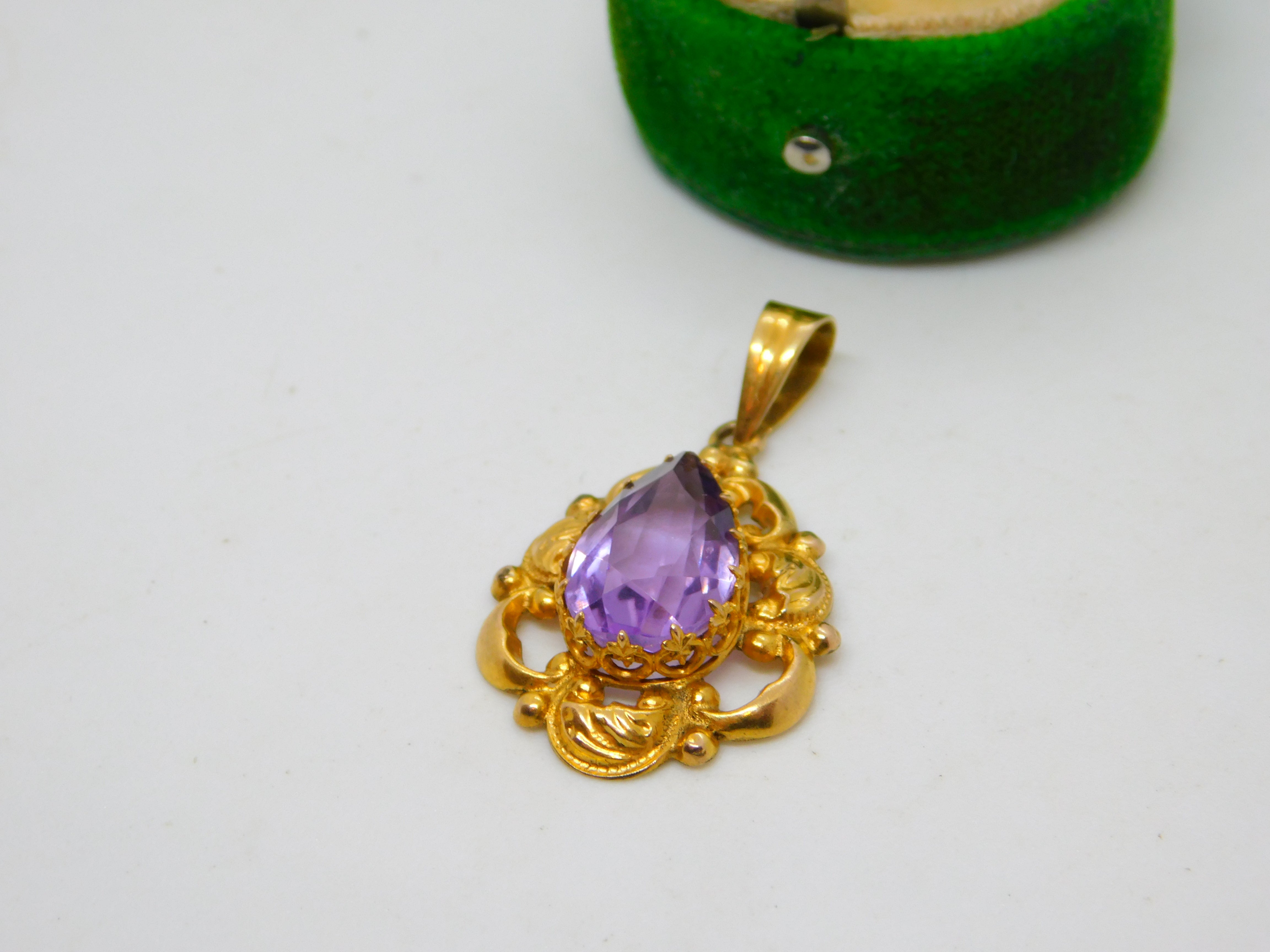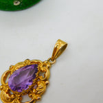 Edwardian 14ct Gold & Pear Cut Amethyst Drop Pendant Antique c1910