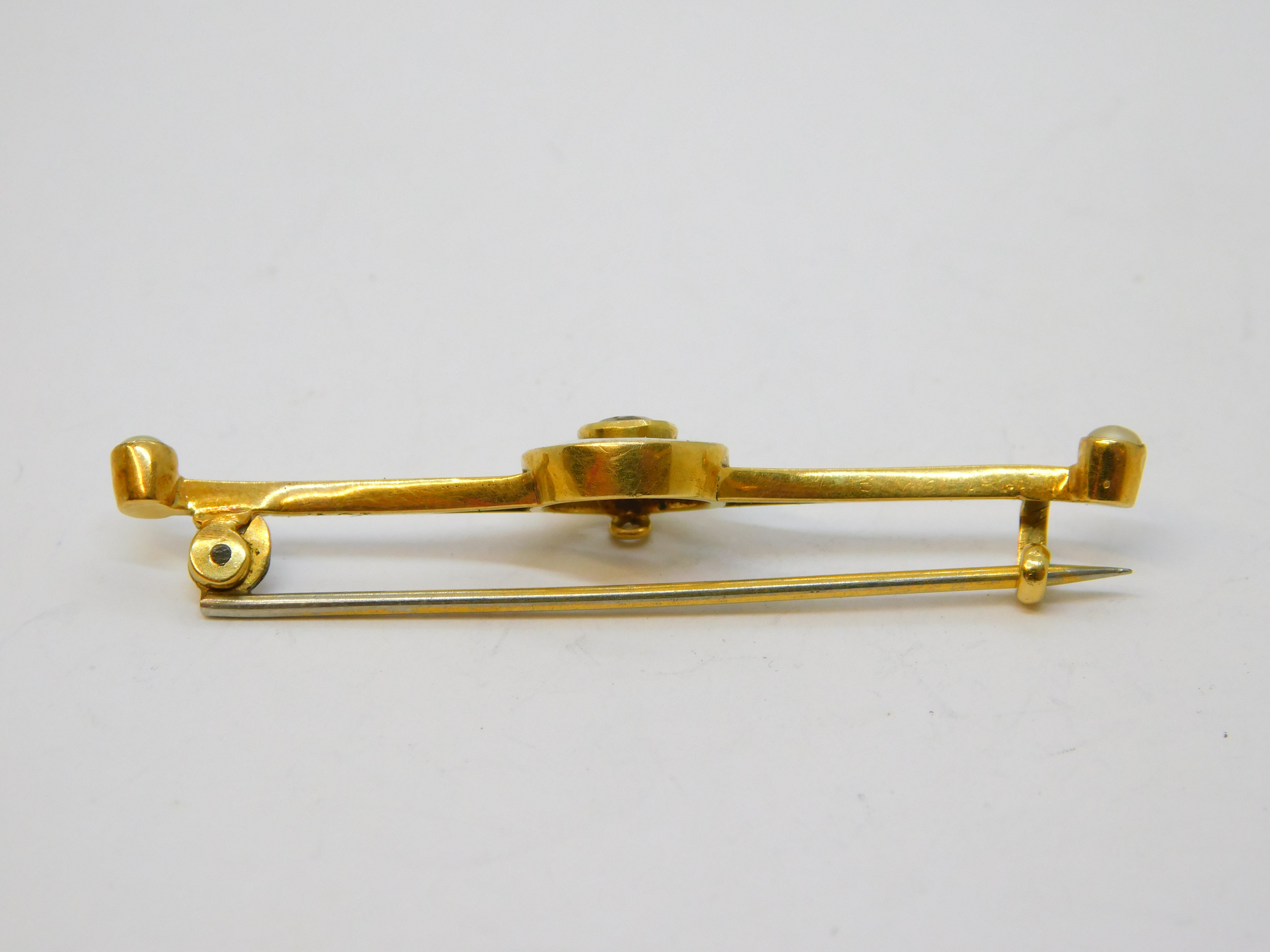 Edwardian 15ct Gold, White Enamel, Tourmaline & Pearl Target Brooch Antique c1910