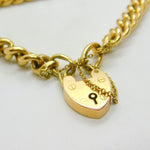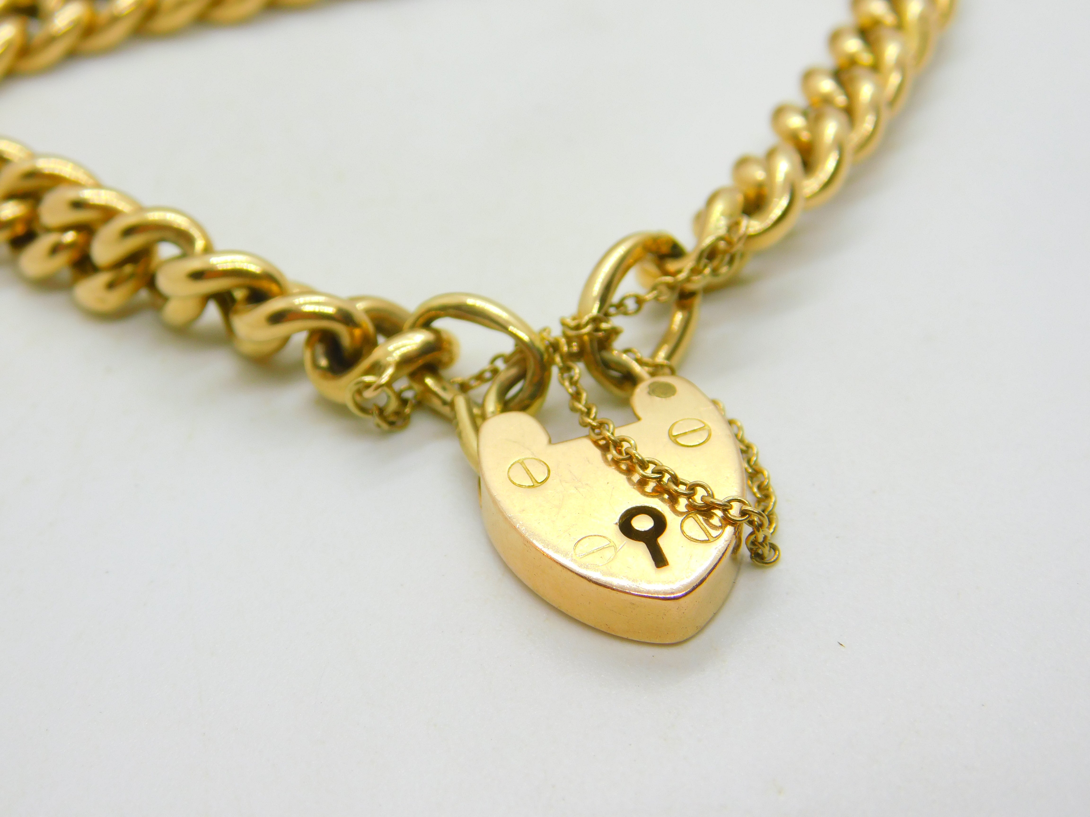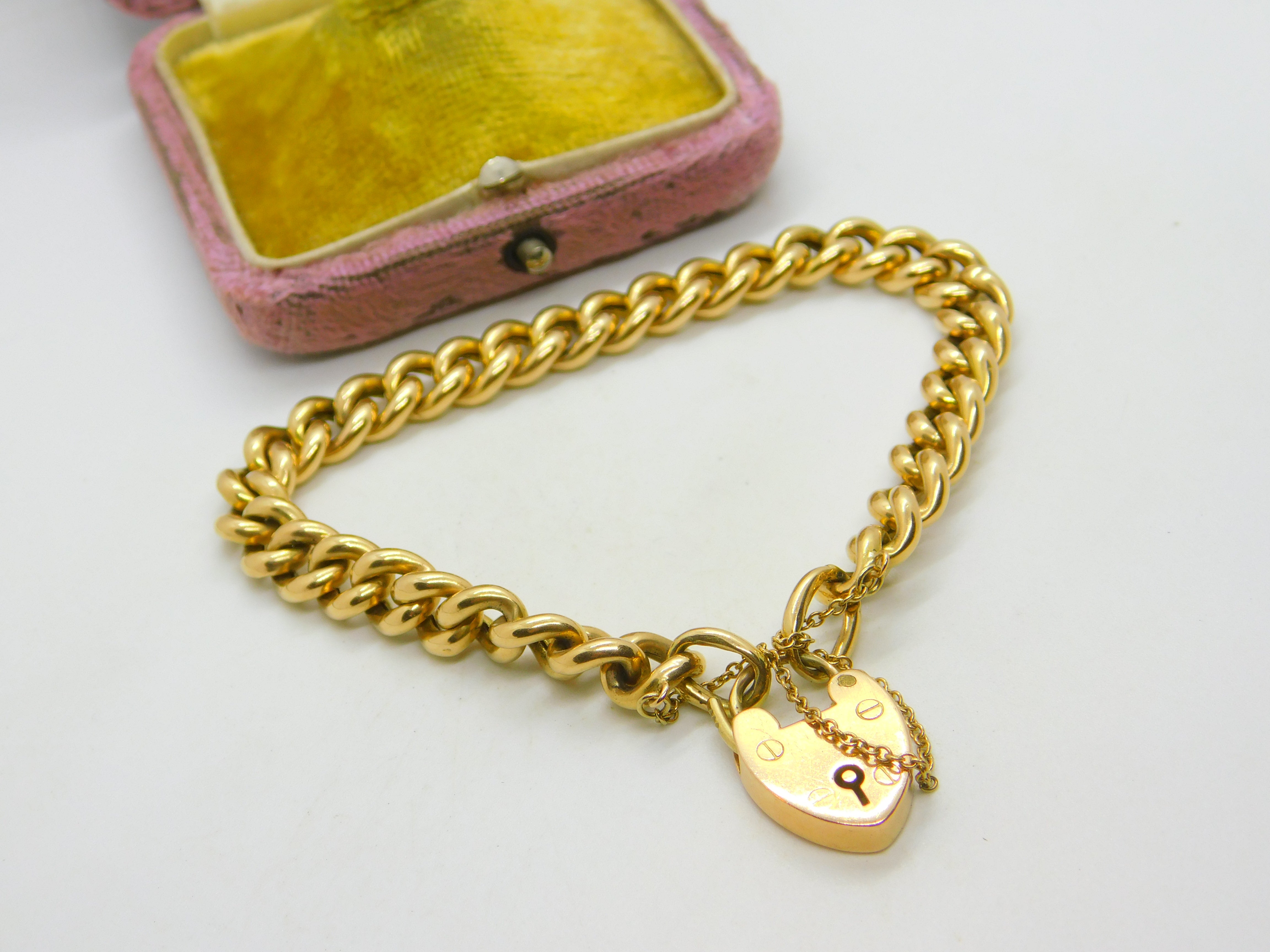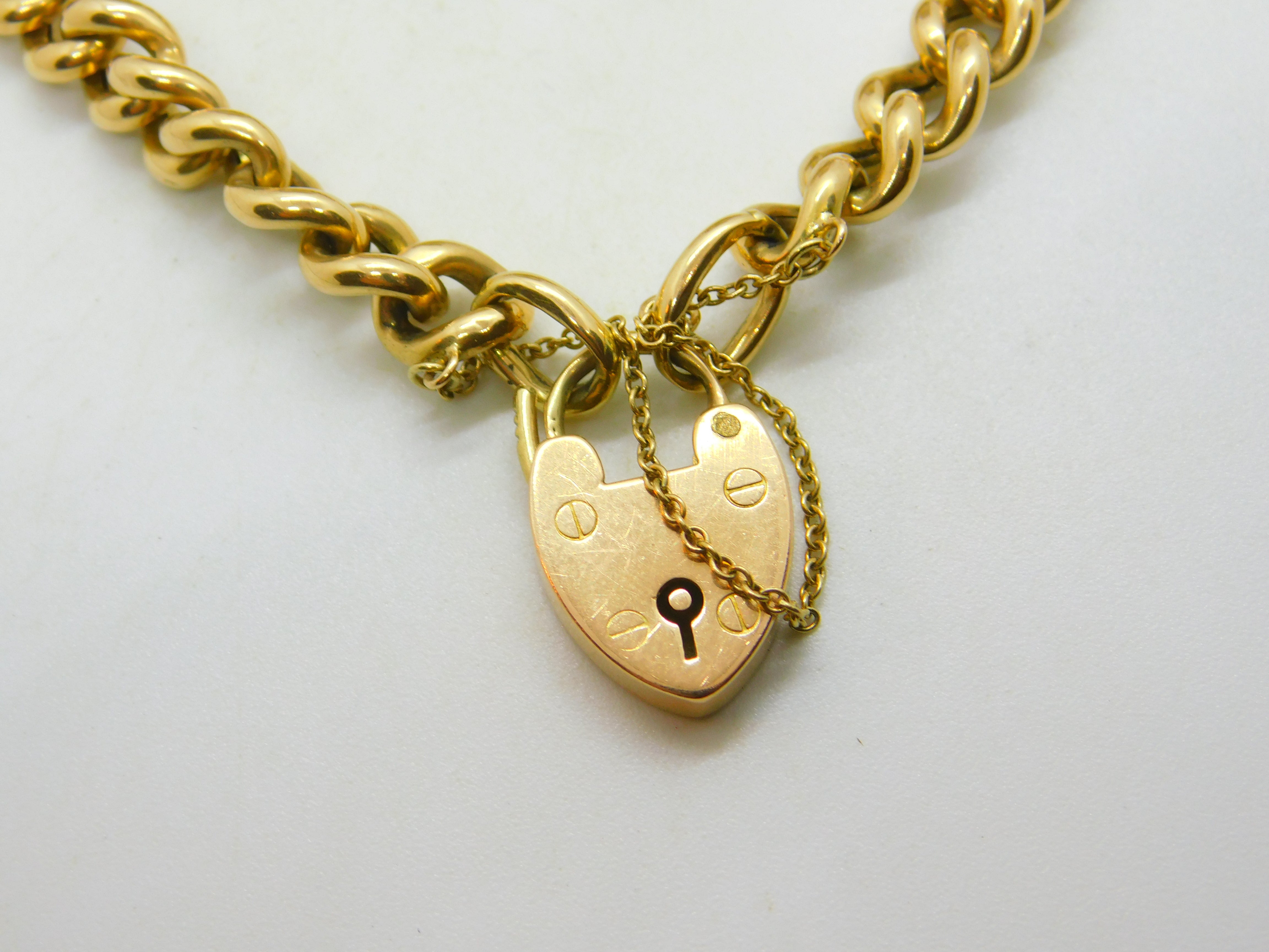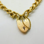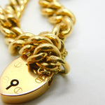 Edwardian 15ct Yellow Gold Curb Link Charm Bracelet & Heart Clasp Antique c1910