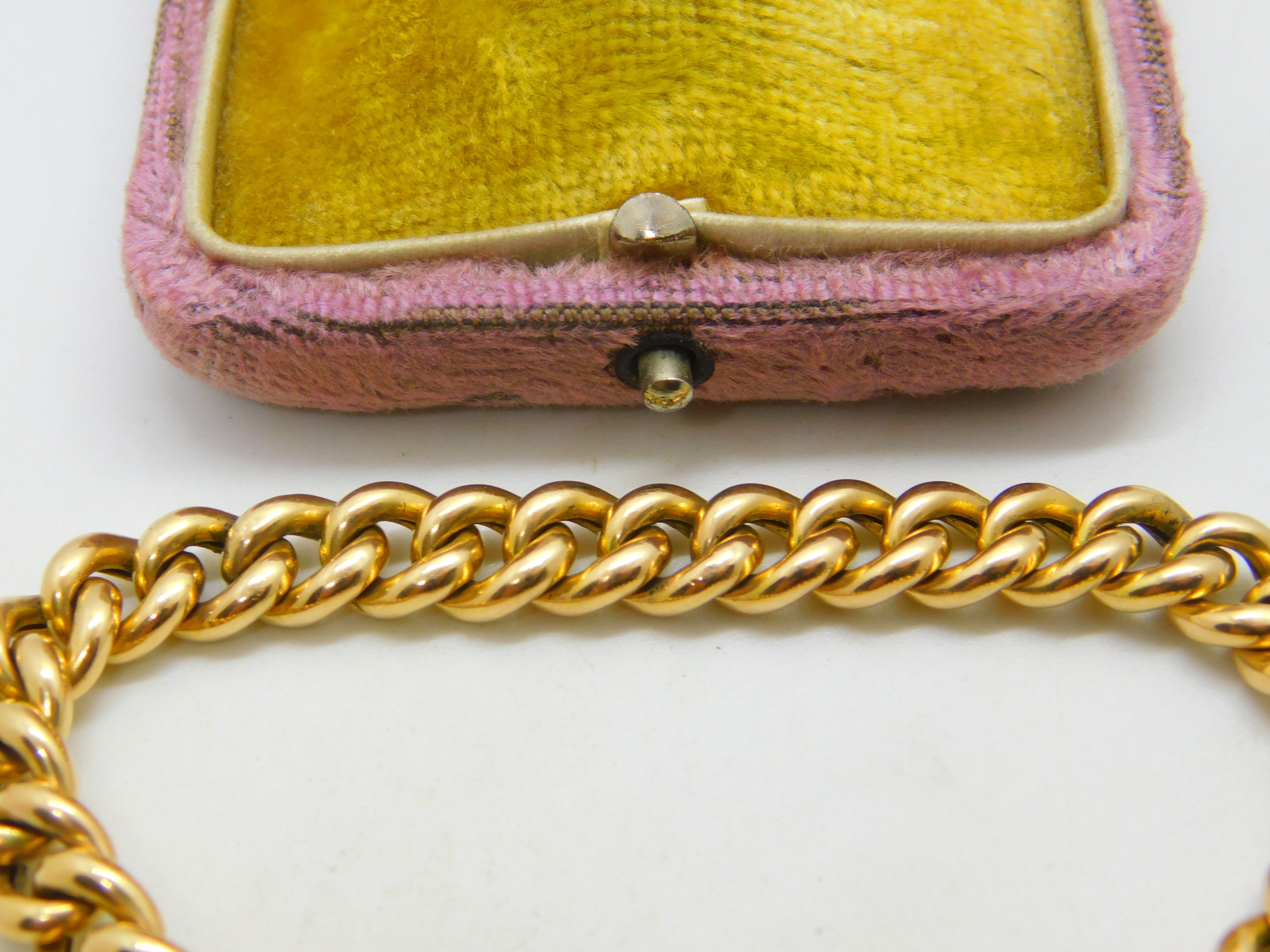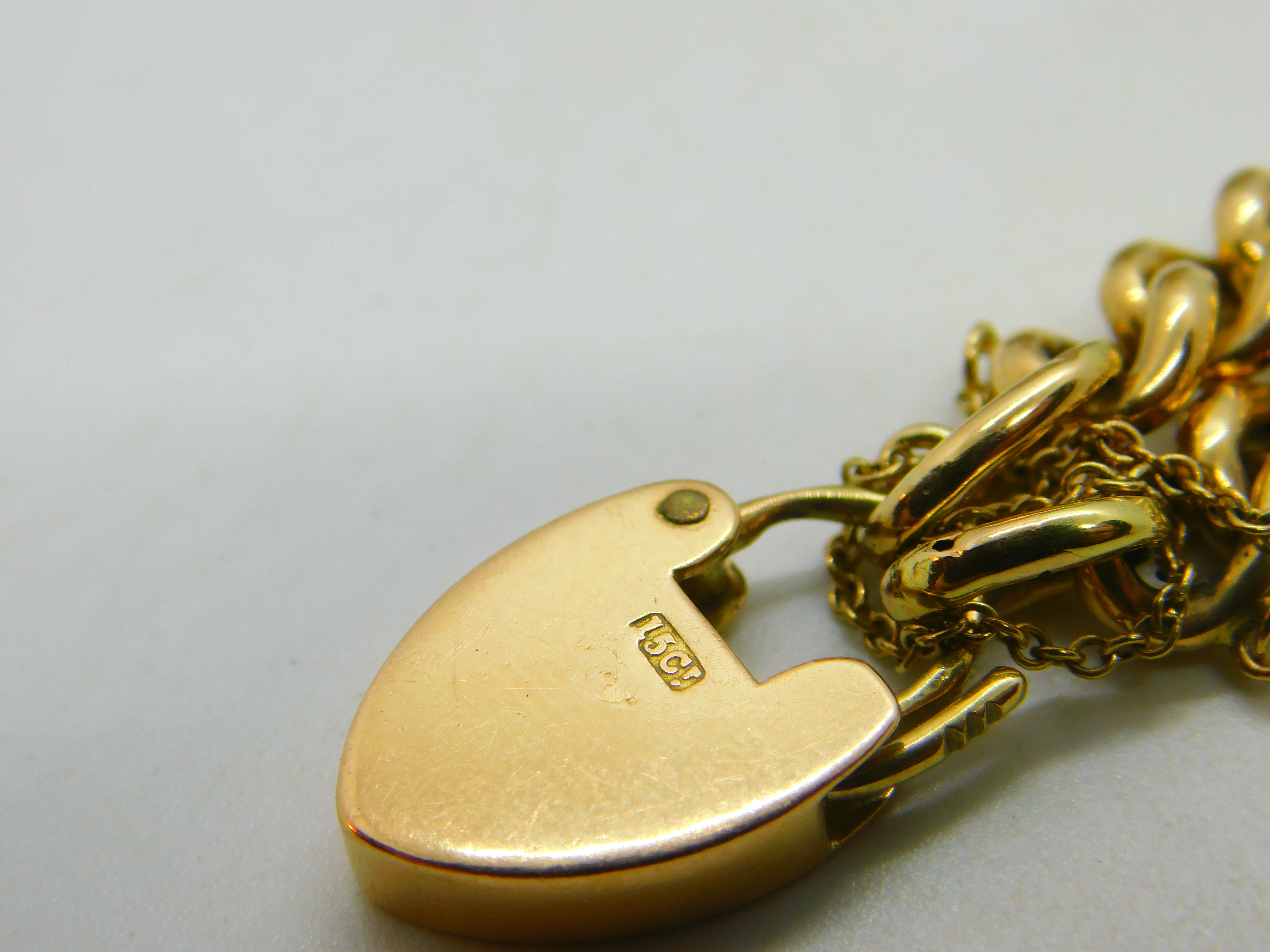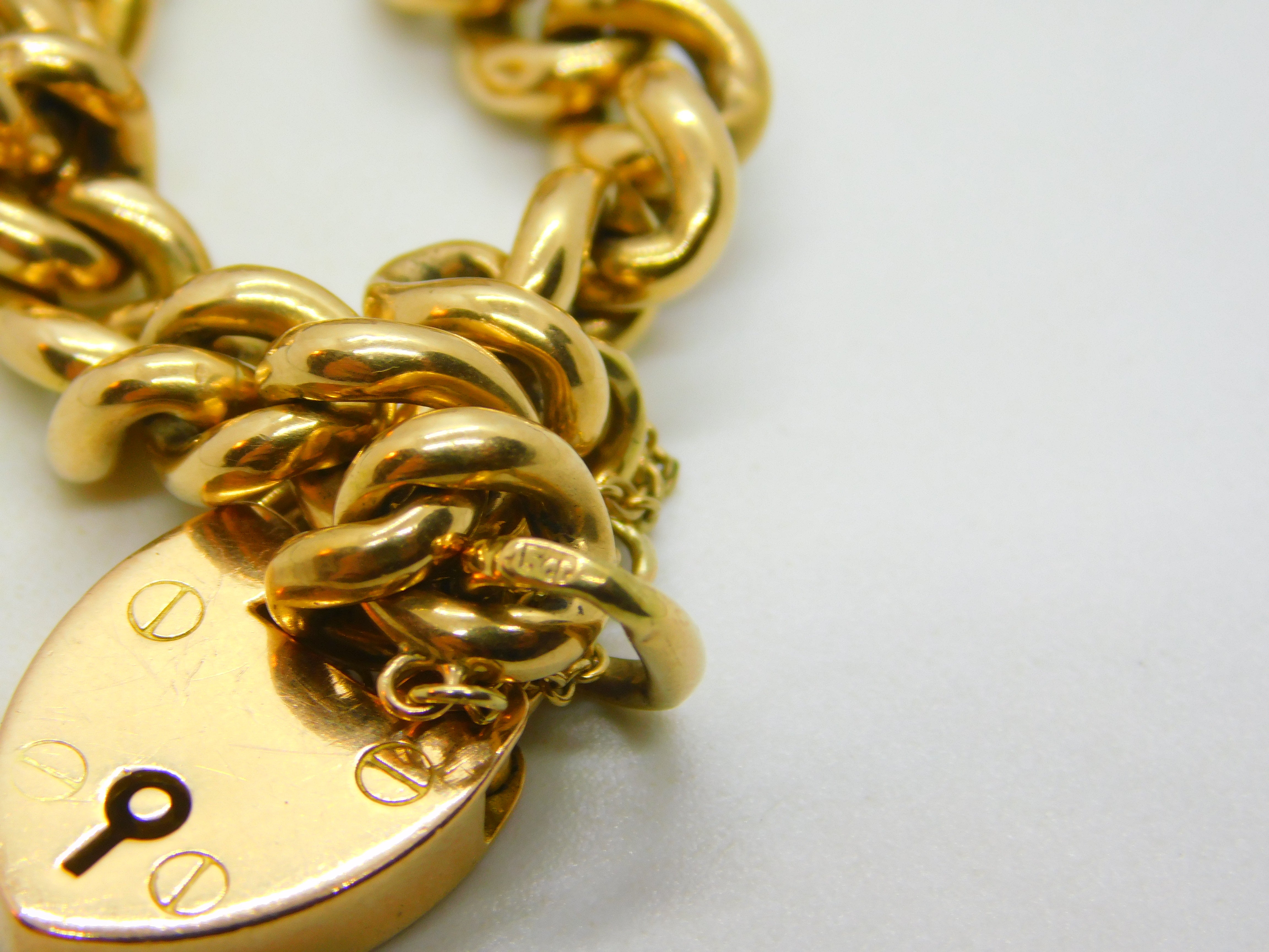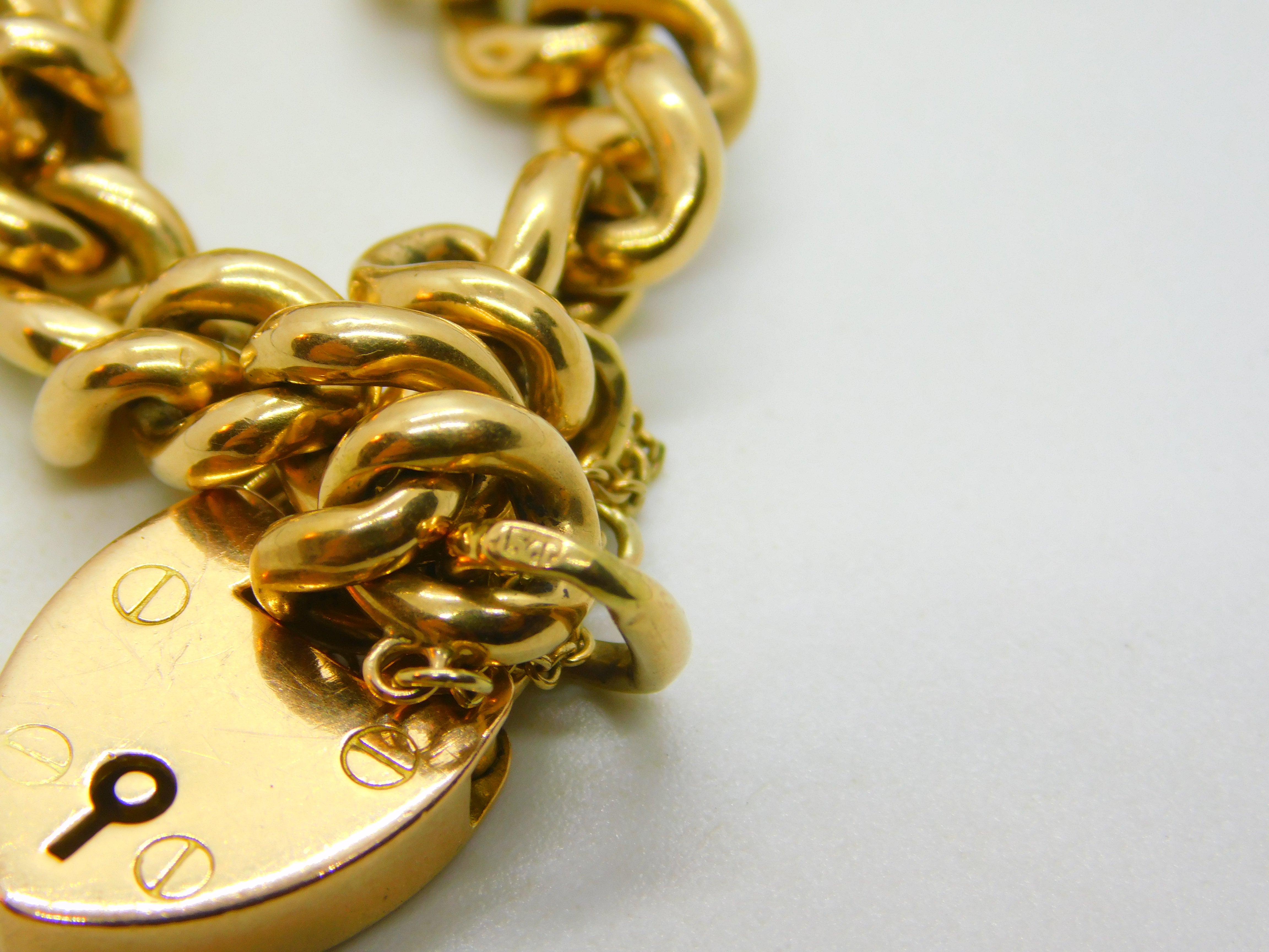 Edwardian 15ct Yellow Gold Curb Link Charm Bracelet & Heart Clasp Antique c1910
