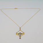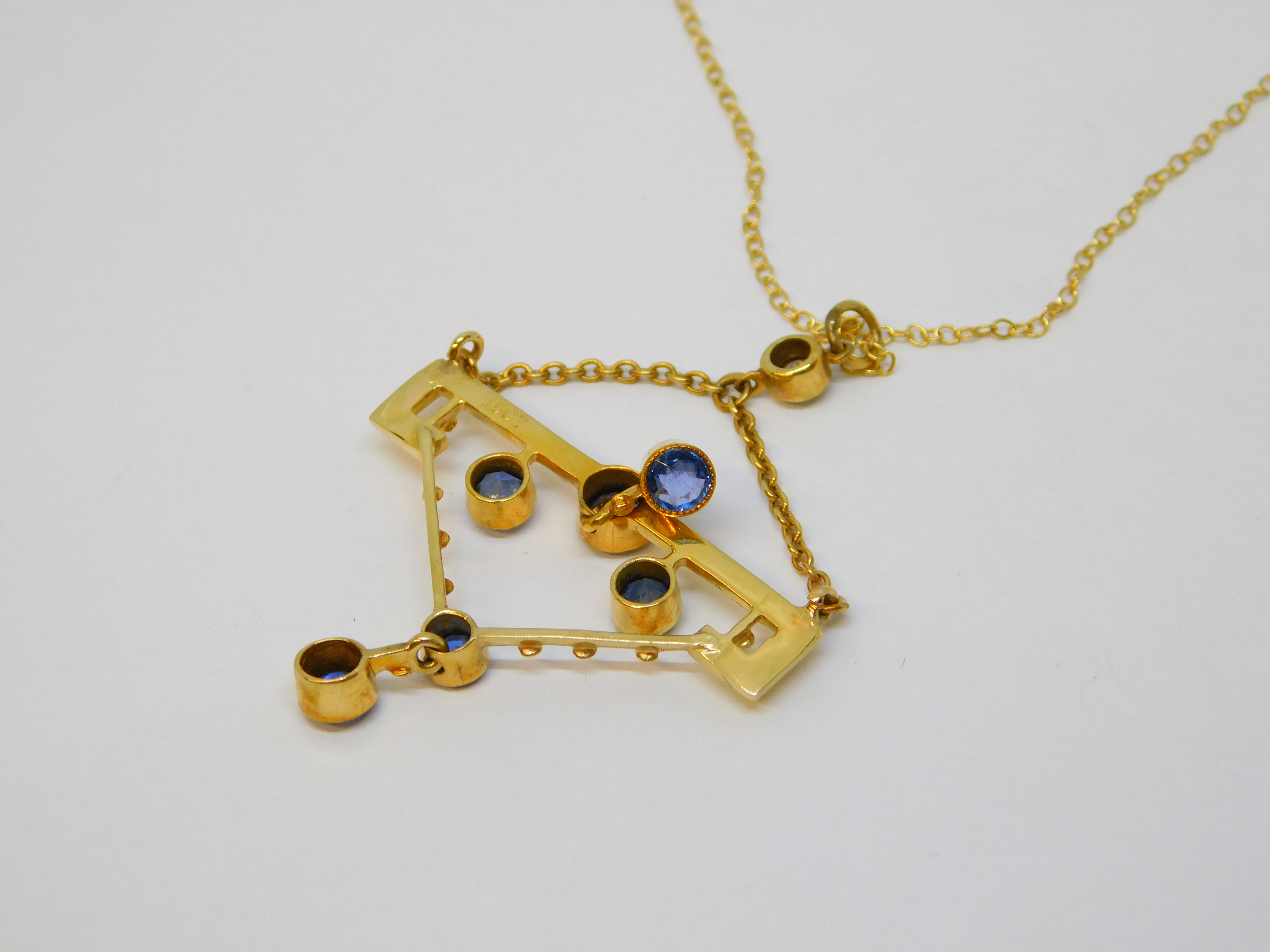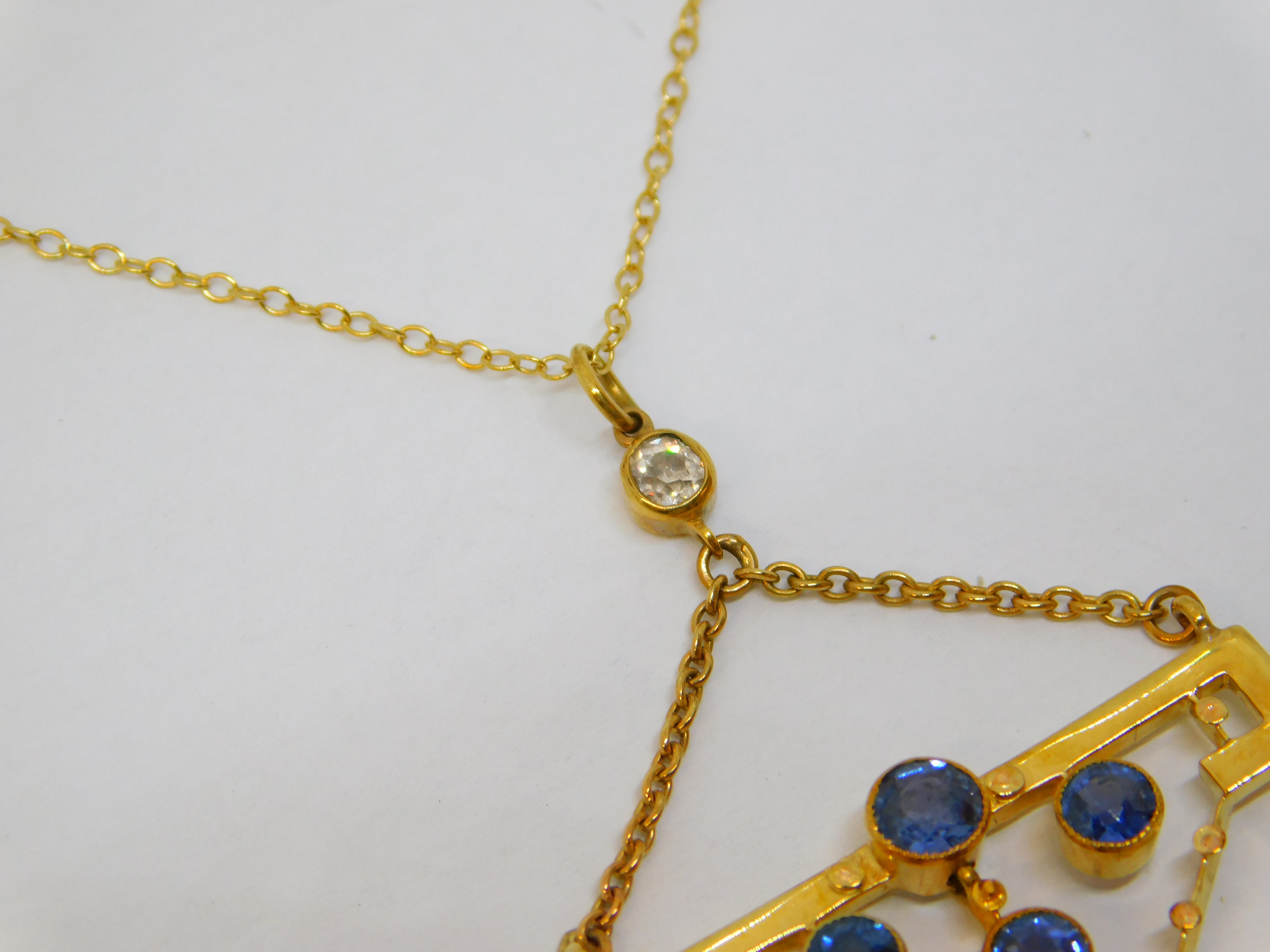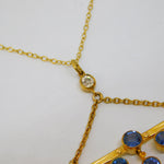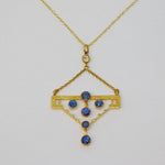 Edwardian 15ct Yellow Gold, Sapphire & 0.15ct Diamond Lavalier Necklace Antique c1910