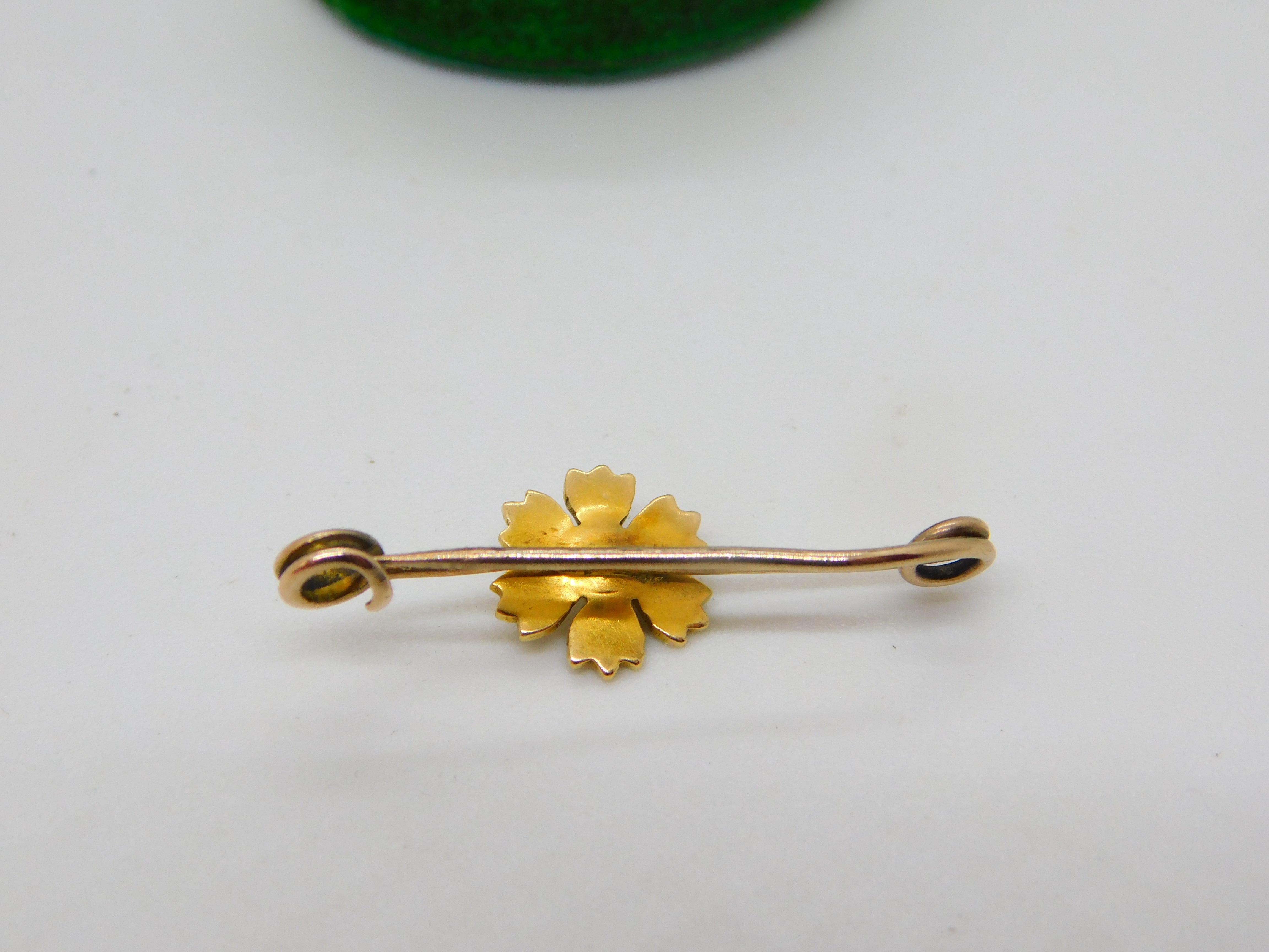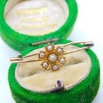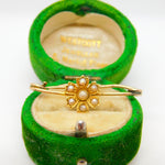 Edwardian 15ct Yellow Gold Seed Pearl Daisy Flower Brooch Antique c1910