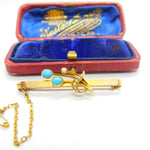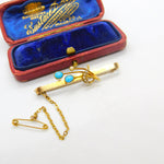 Edwardian 15ct Yellow Gold, Seed Pearl & Turquoise Floral Brooch c1910 Antique