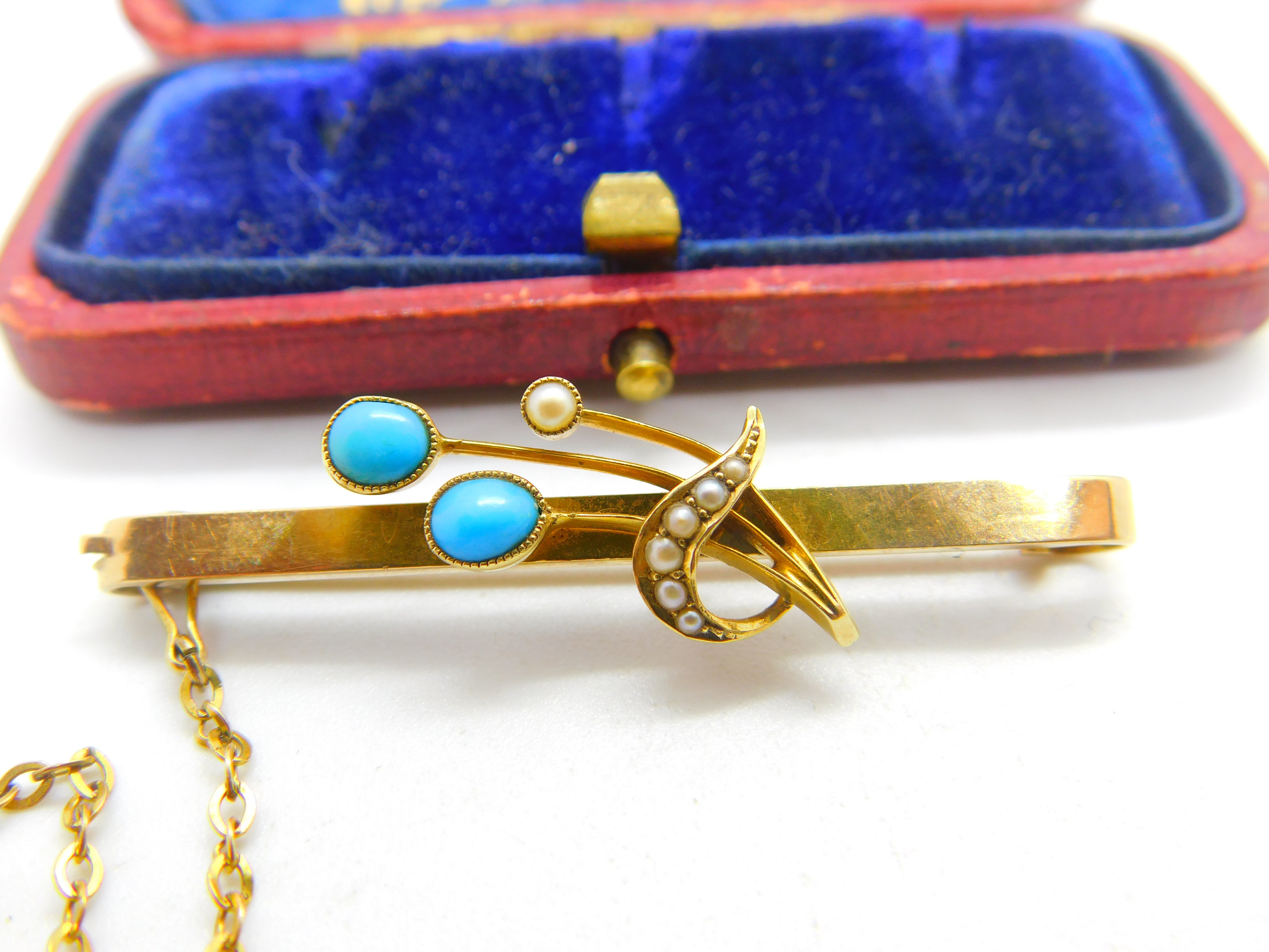 Details: A fantastic and wonderfully designed antique Edwardian 15ct yellow gold floral sweetheart brooch set with seed pearl and turquoise marked 15ct to the reverse c1910. This is a wonderful item that would make a perfect gift or addition to any collection. The BOX pictured is for PRESENTATION ONLY and is NOT included in the listings but used to frame the pictures unless specifically stated otherwise.