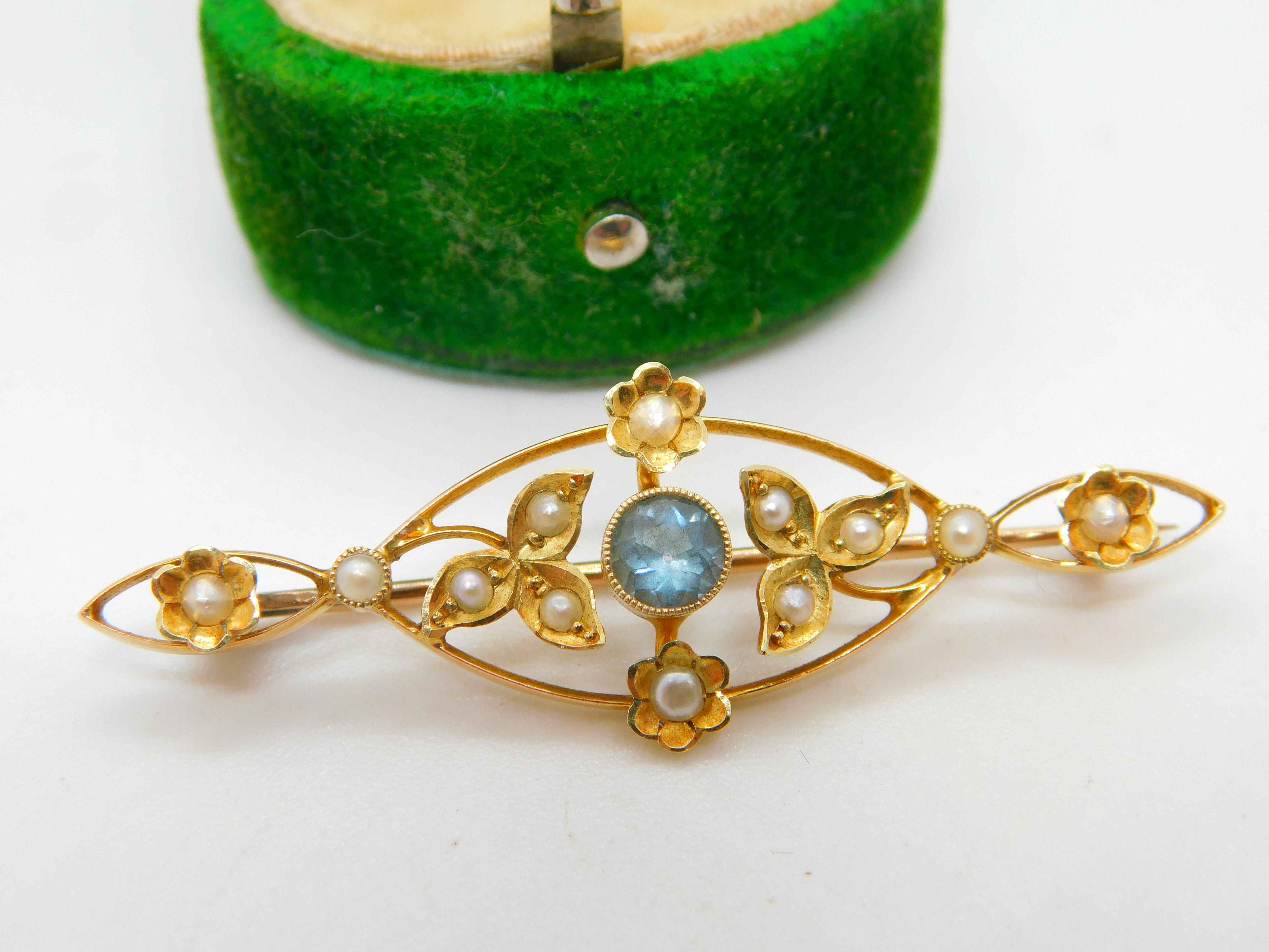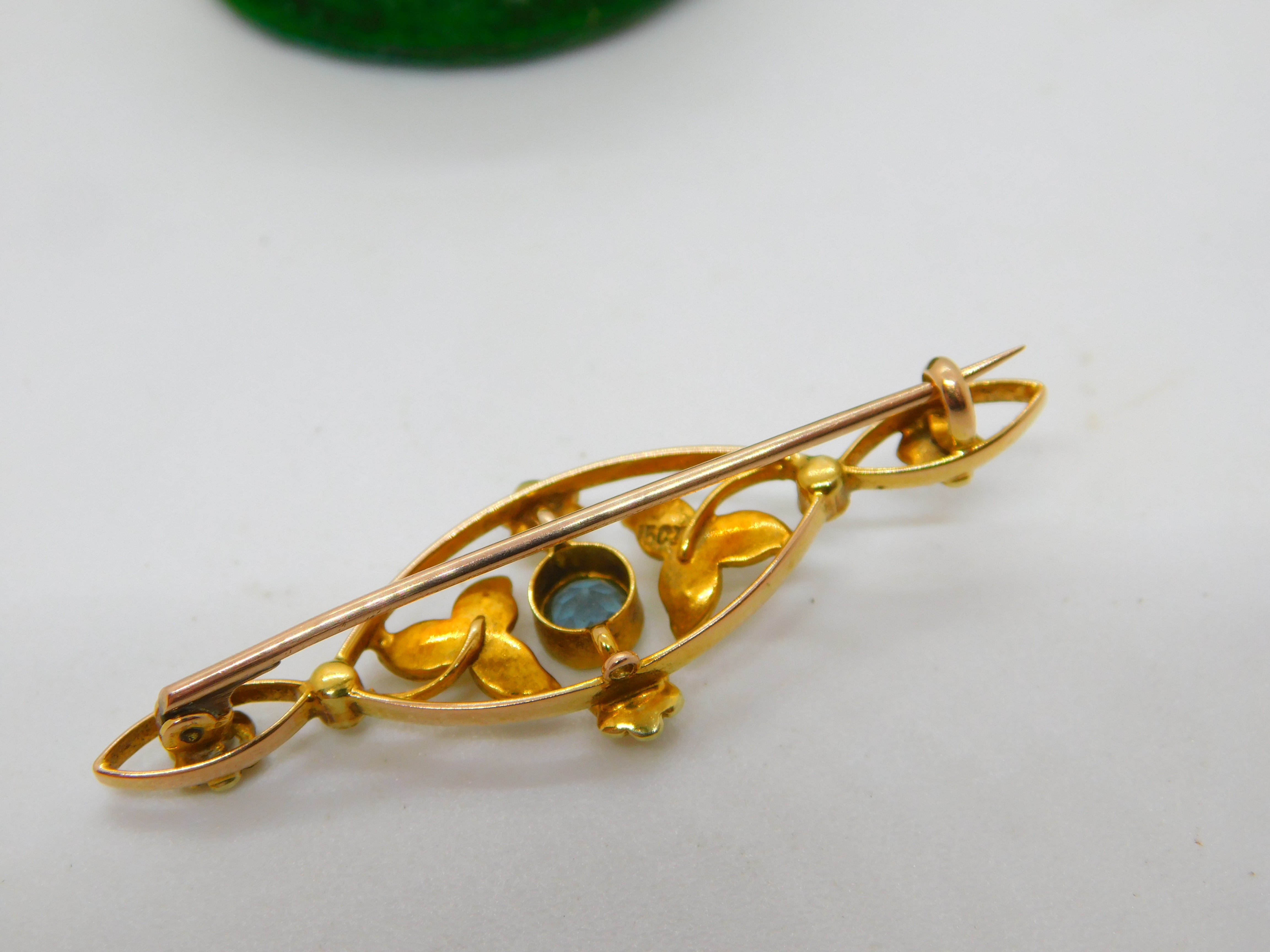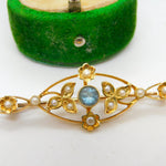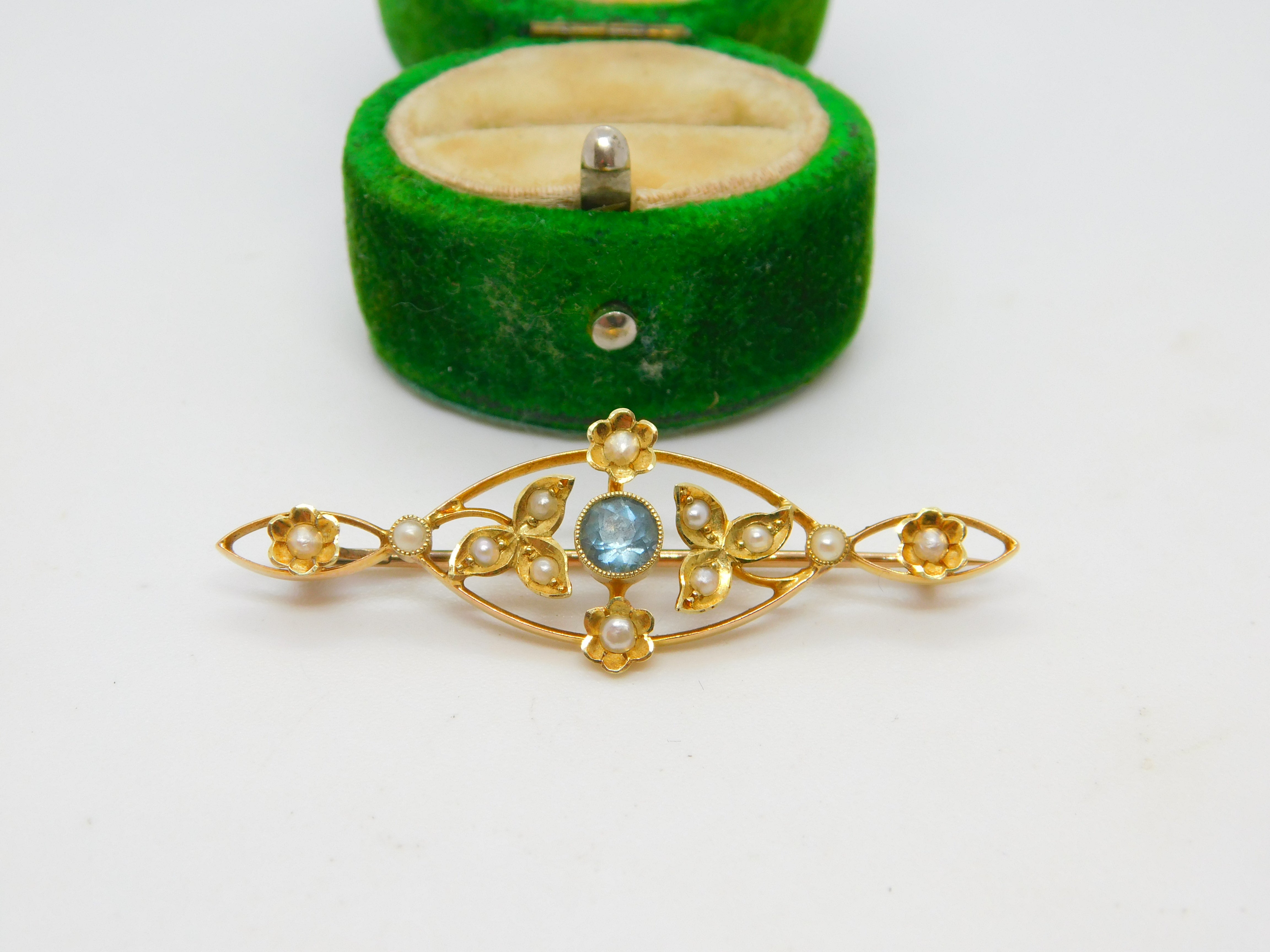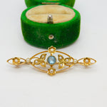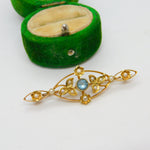 Edwardian 15ct Yellow Gold, Topaz & Seed Pearl Floral Brooch Antique c1910
