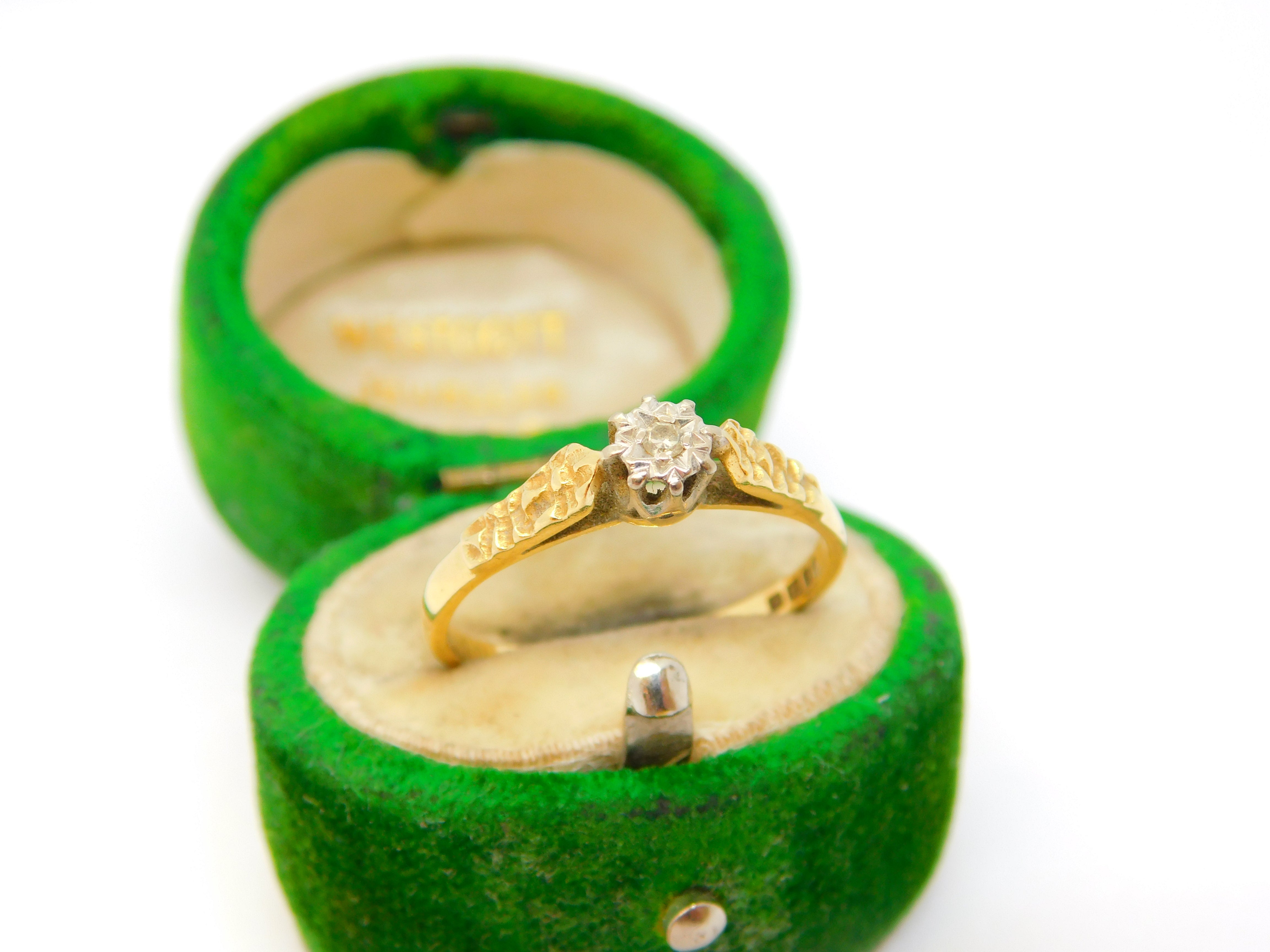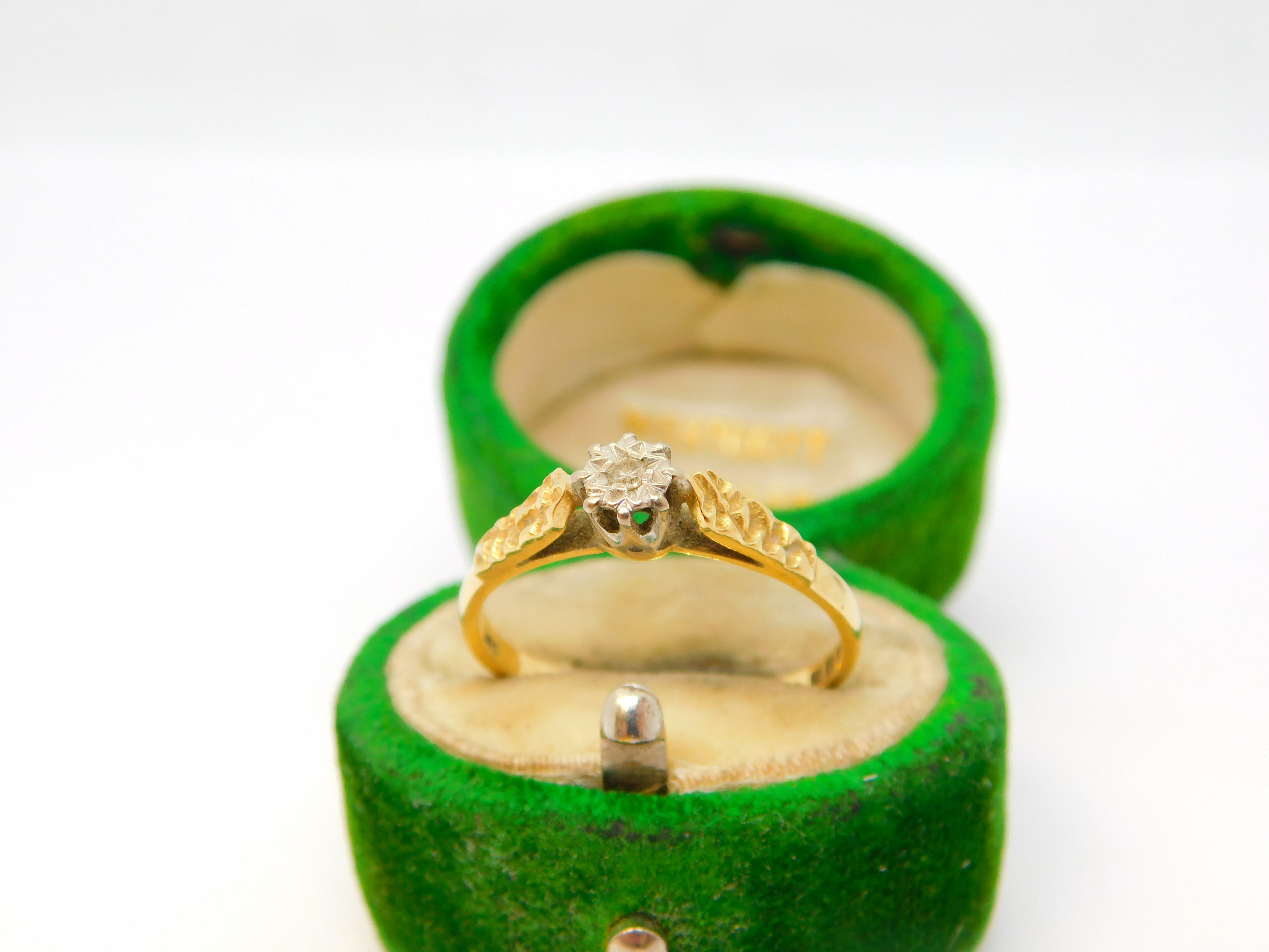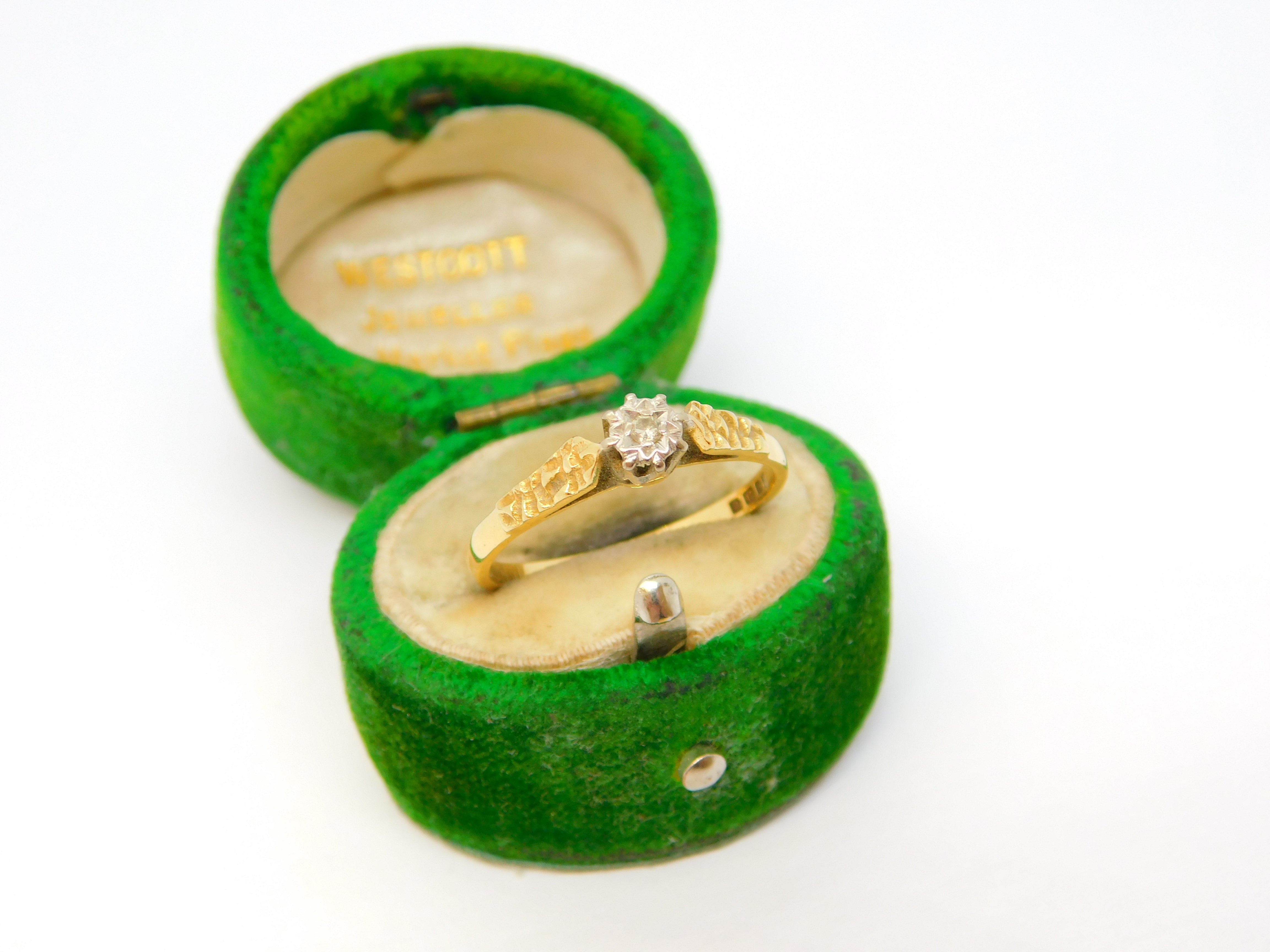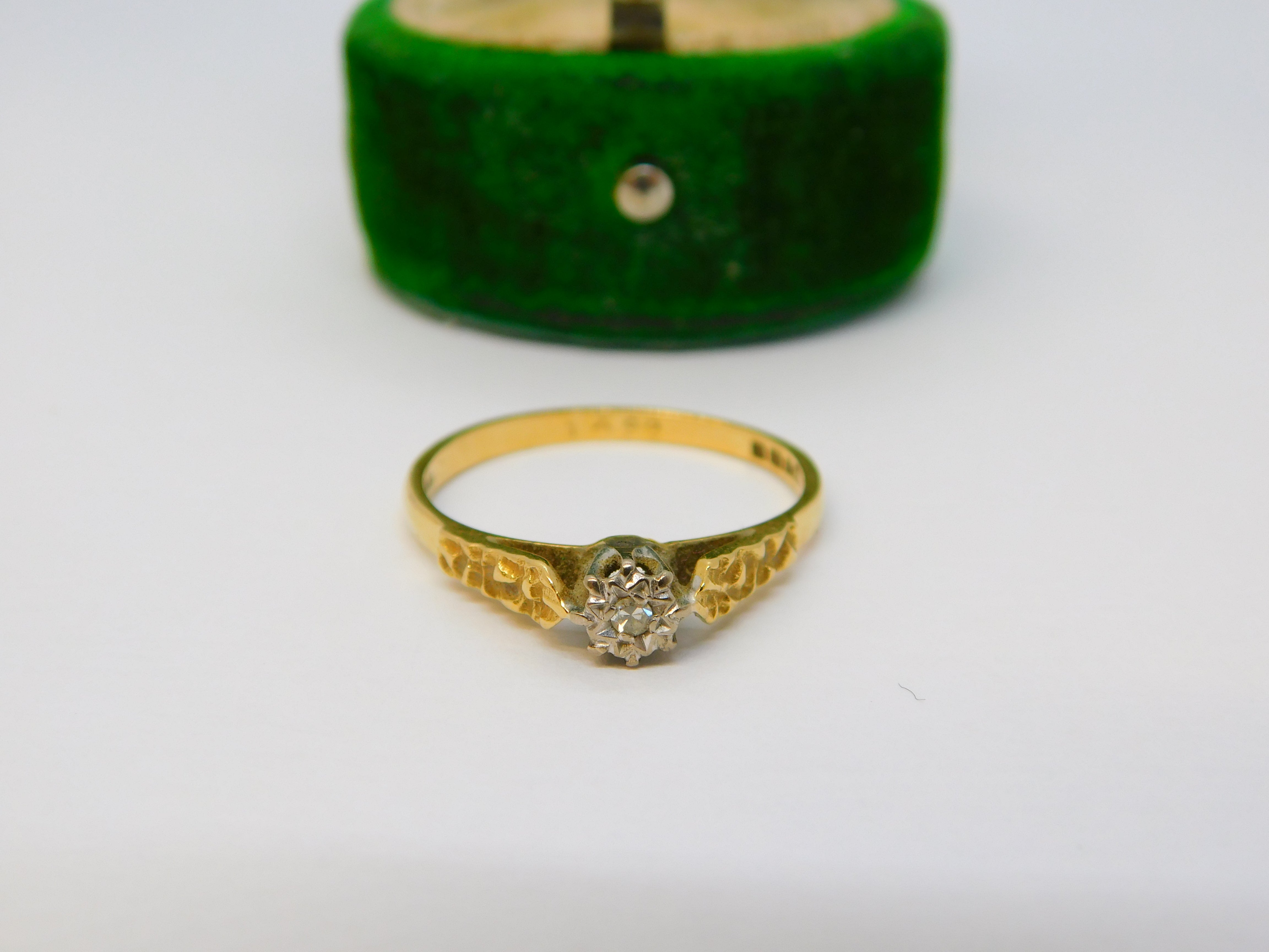Edwardian 18ct Yellow Gold & Diamond Solitaire Ring Antique c1910