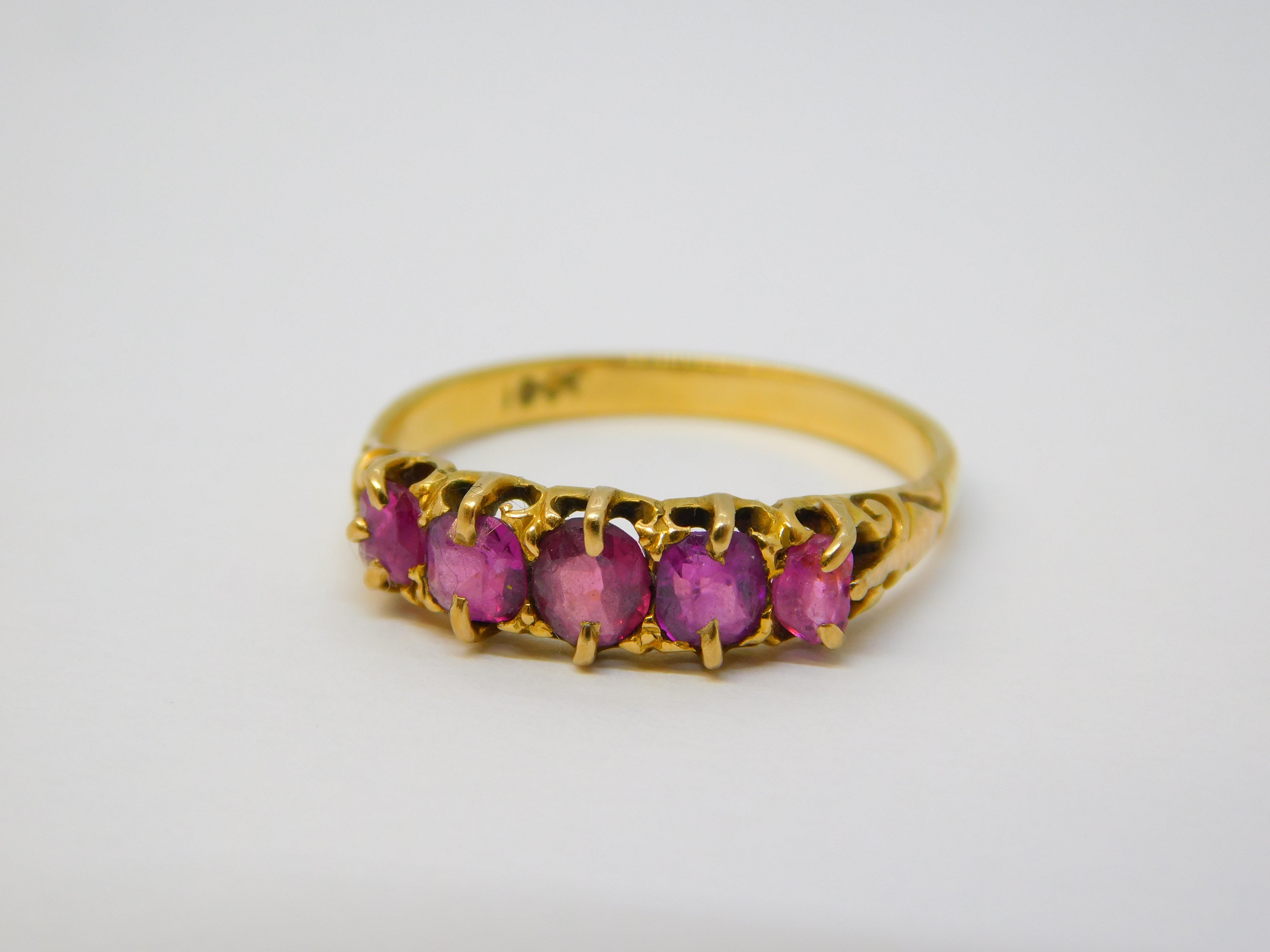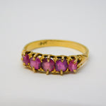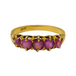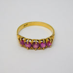 Edwardian 18ct Yellow Gold & Five-Stone Ruby Boat Ring Antique c1910