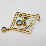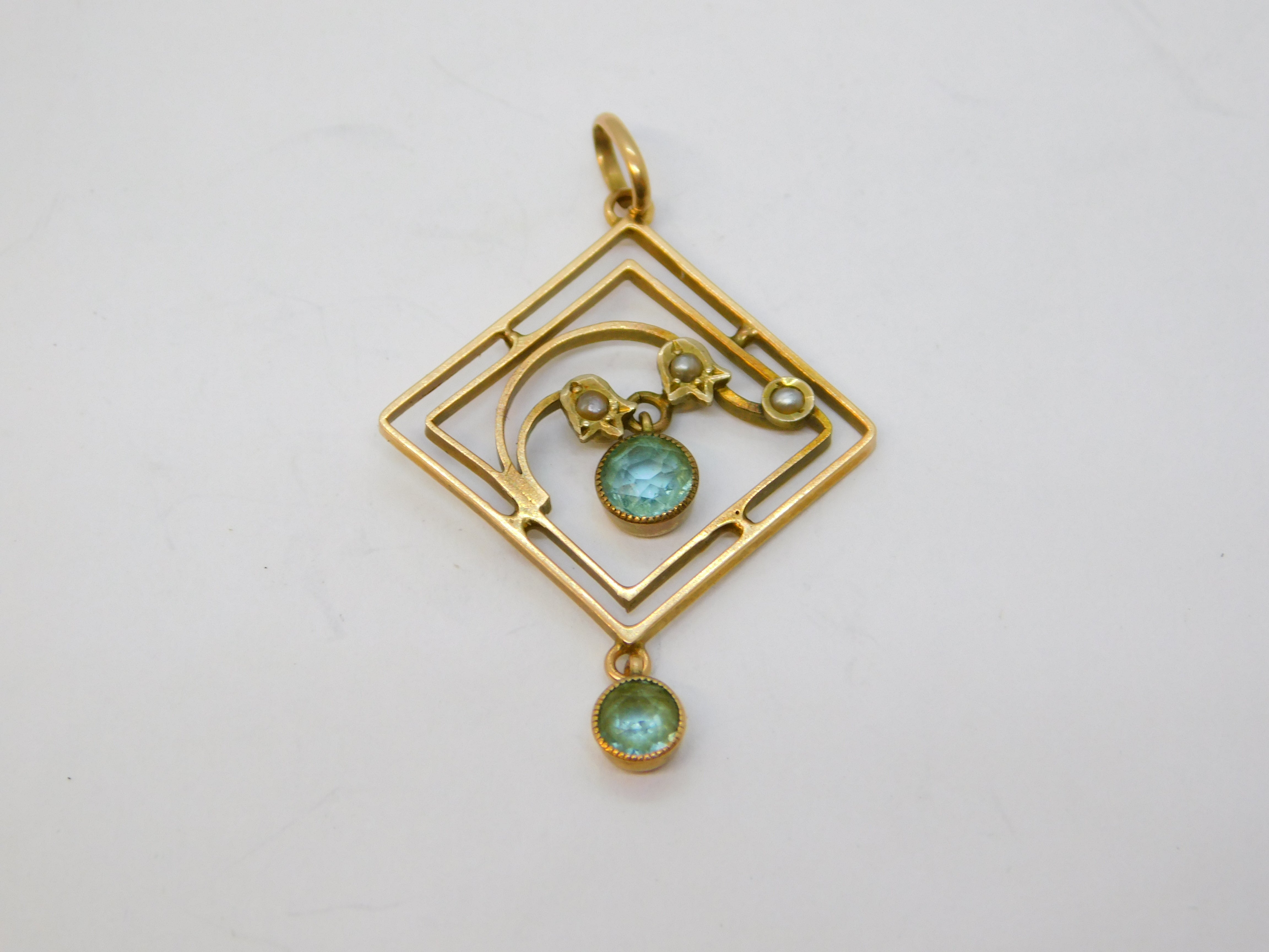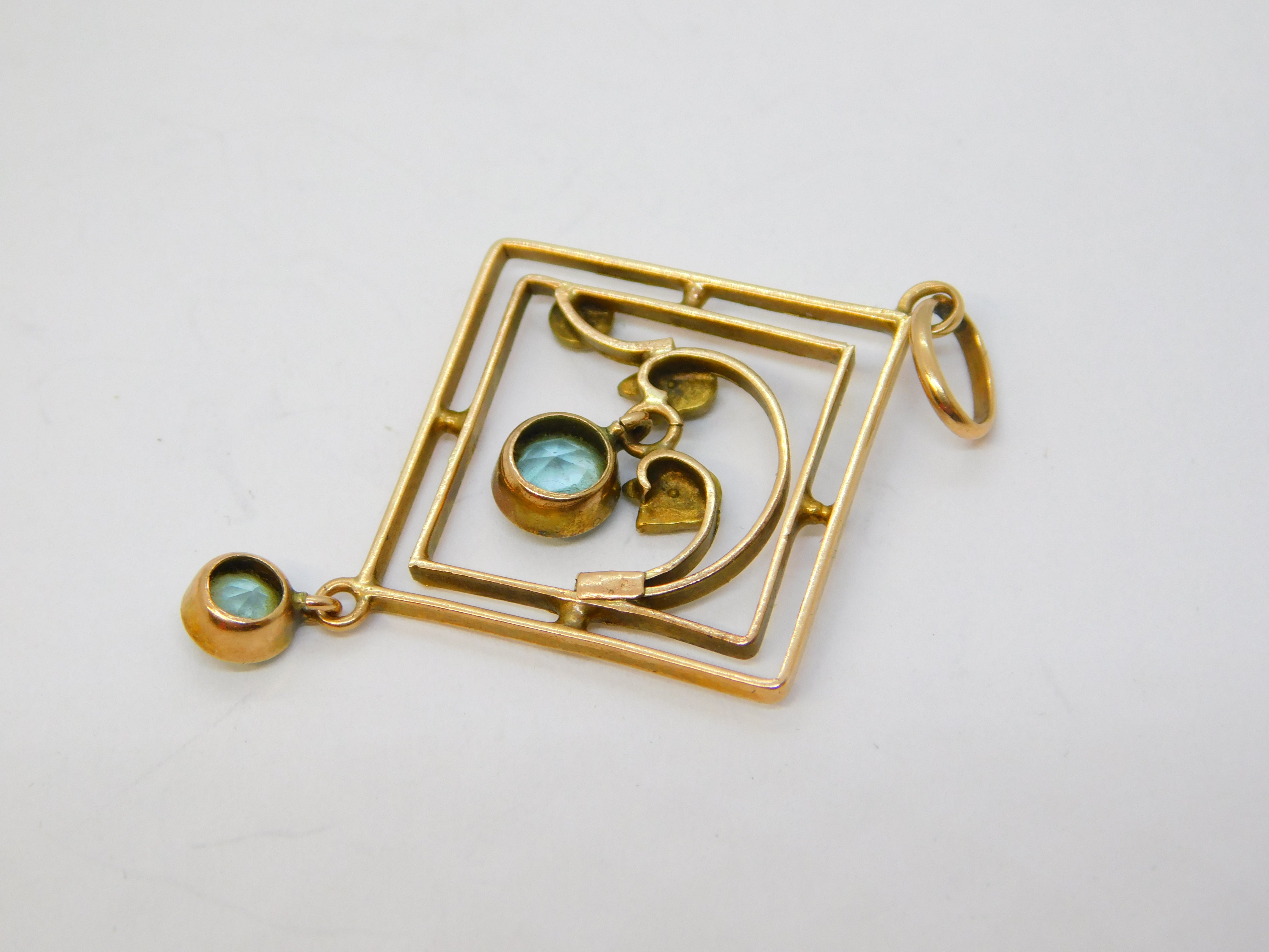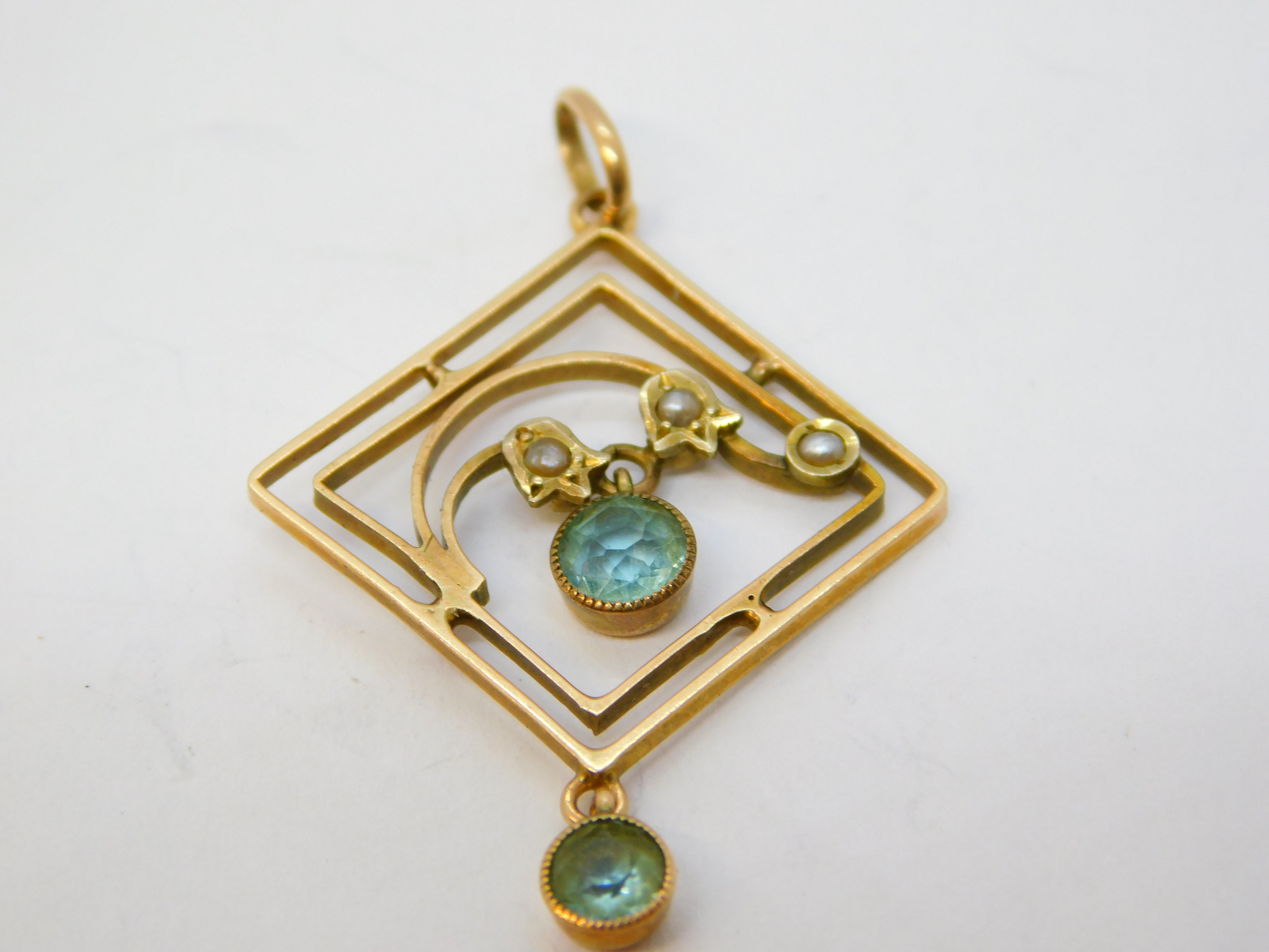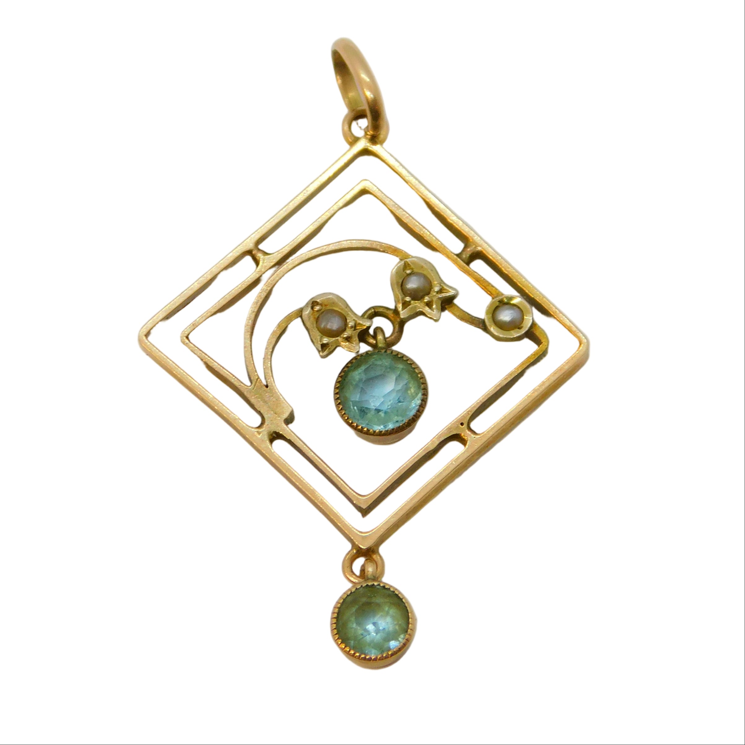 Details: A fantastic and wonderfully designed antique edwardian 9ct yellow gold lavalier drop pendant set with blue topaz & seed pearls c1910, the gold has been XRF tested as the marks are rubbed. This is a wonderful item that would make a perfect gift or addition to any collection. We are more than happy to provide XRF reports for items upon request.