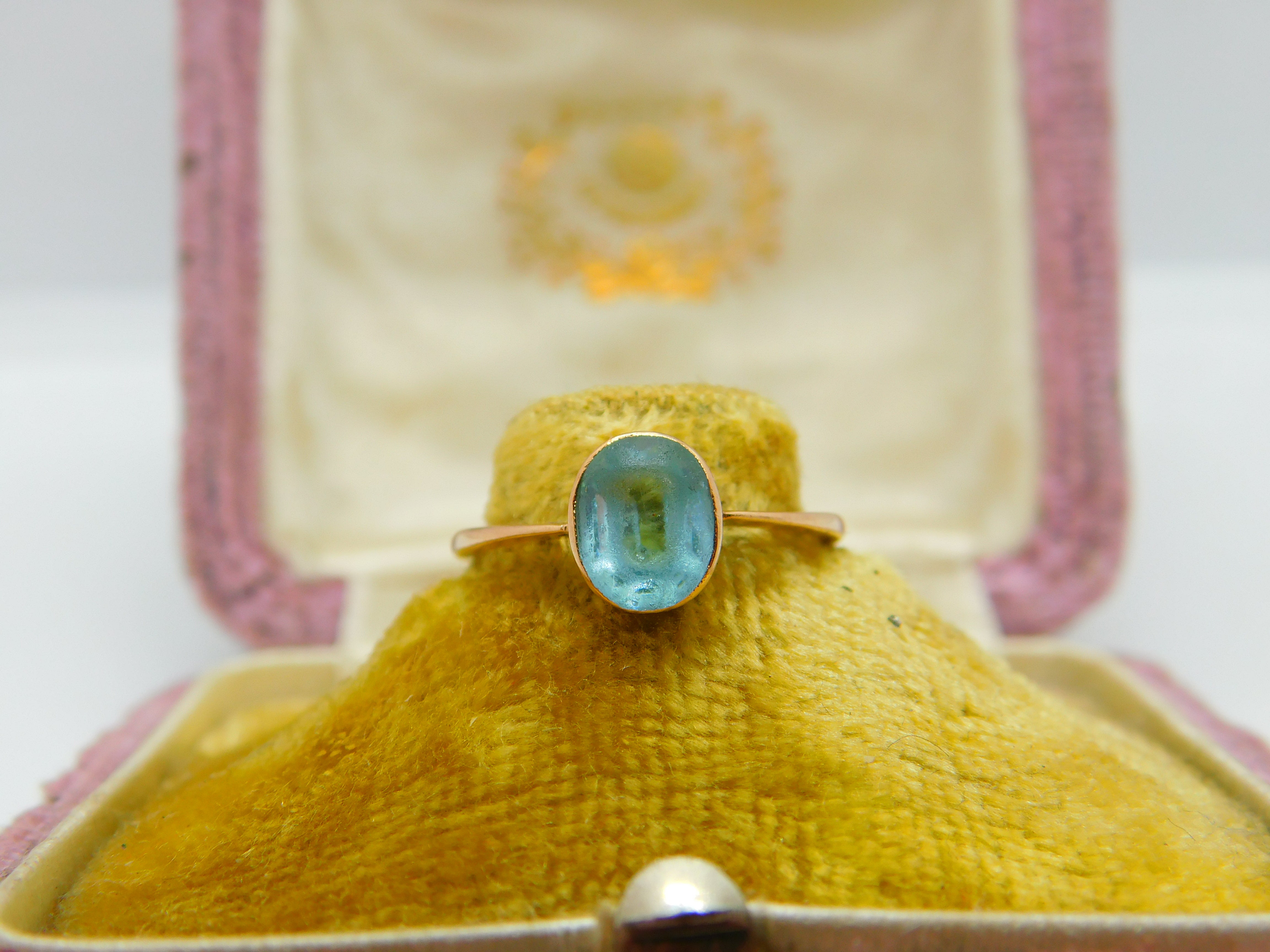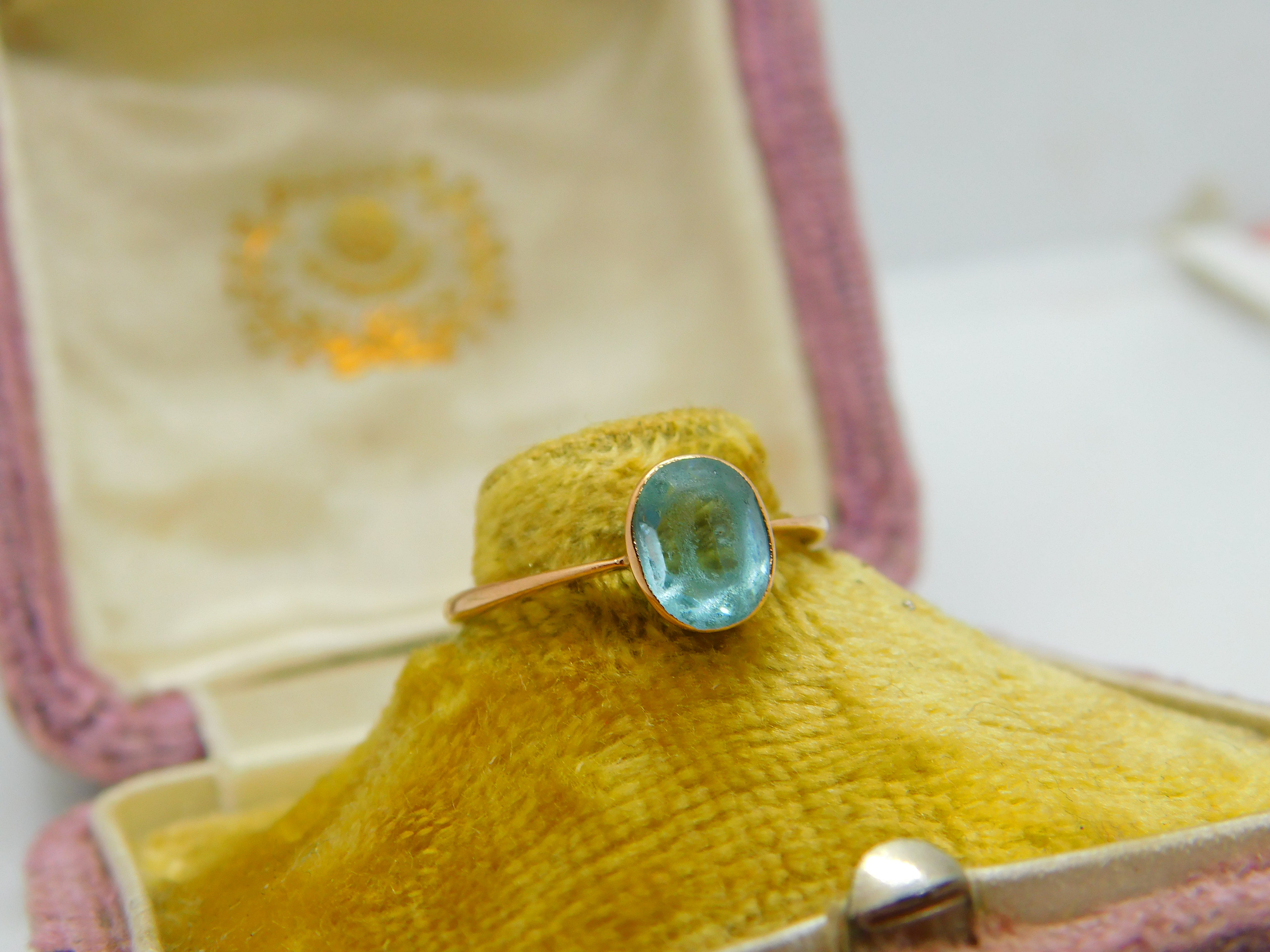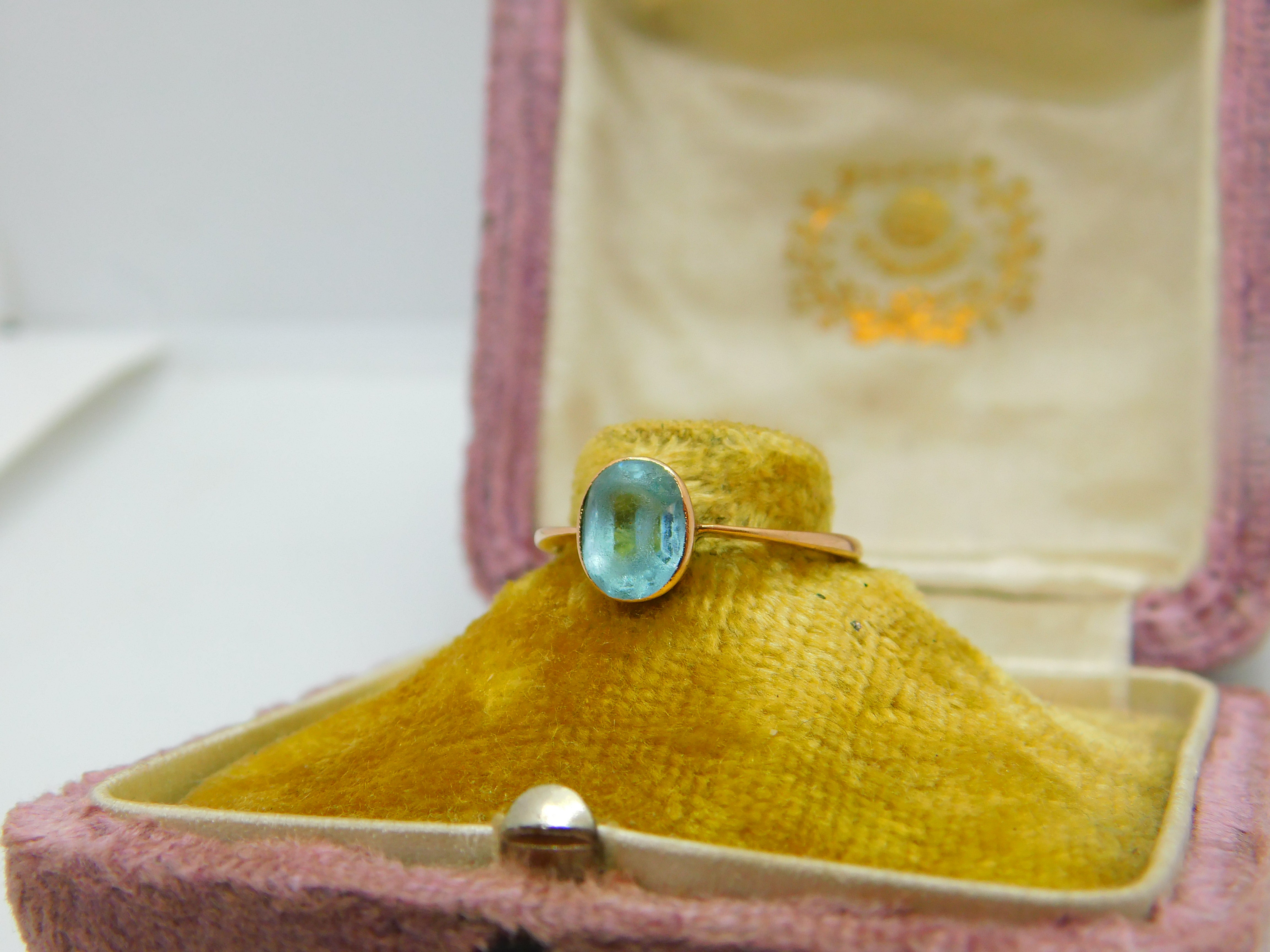 Edwardian 9ct Gold & Blue Topaz Stone Dress Ring Antique c1910