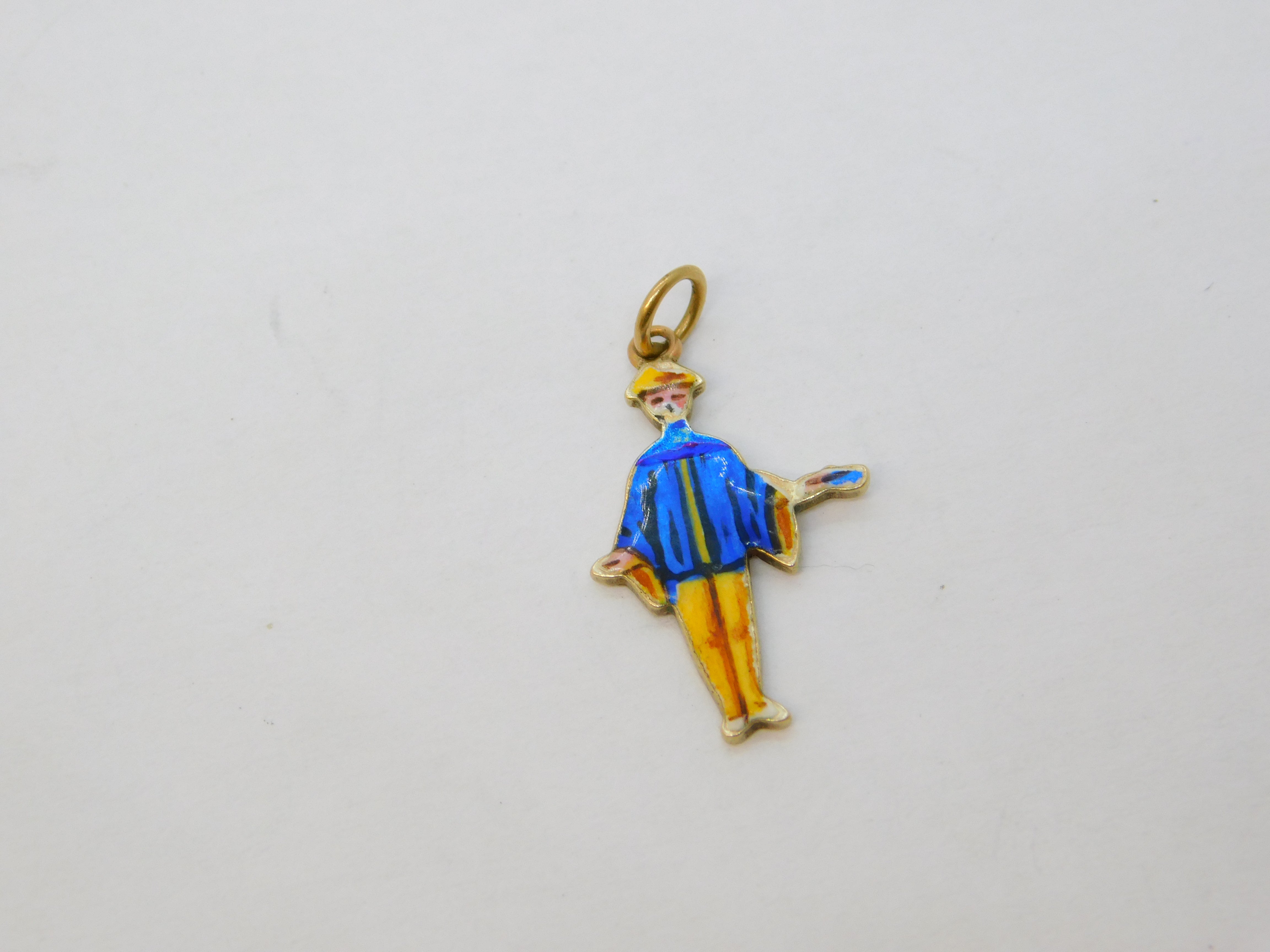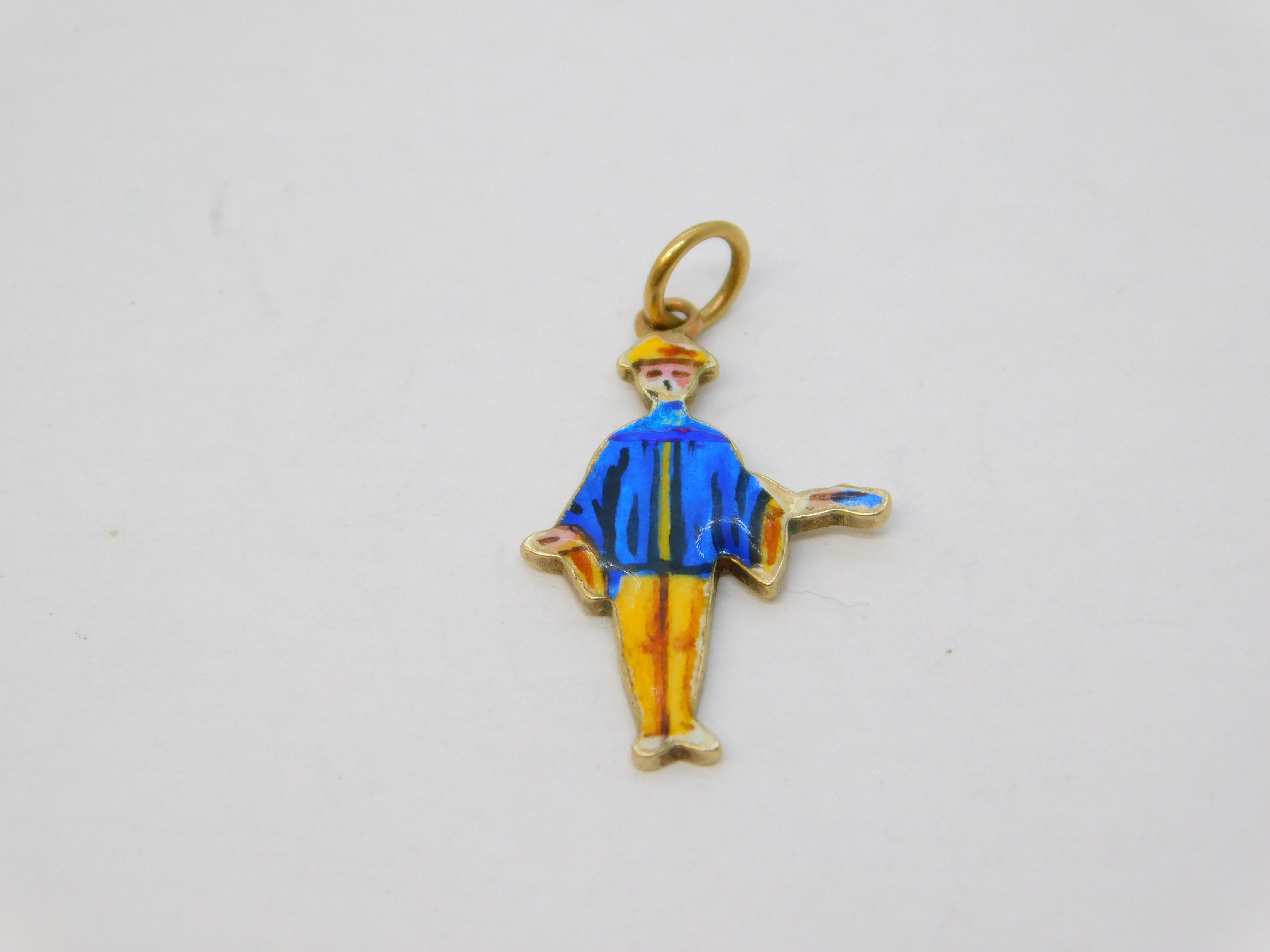 Edwardian 9ct Gold & Colourful Enamel Town Crier Charm Pendant Antique c1910
