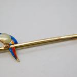 Edwardian 9ct Gold, Enamel & Blistered Pearl Parrot Bar Brooch Antique c1910