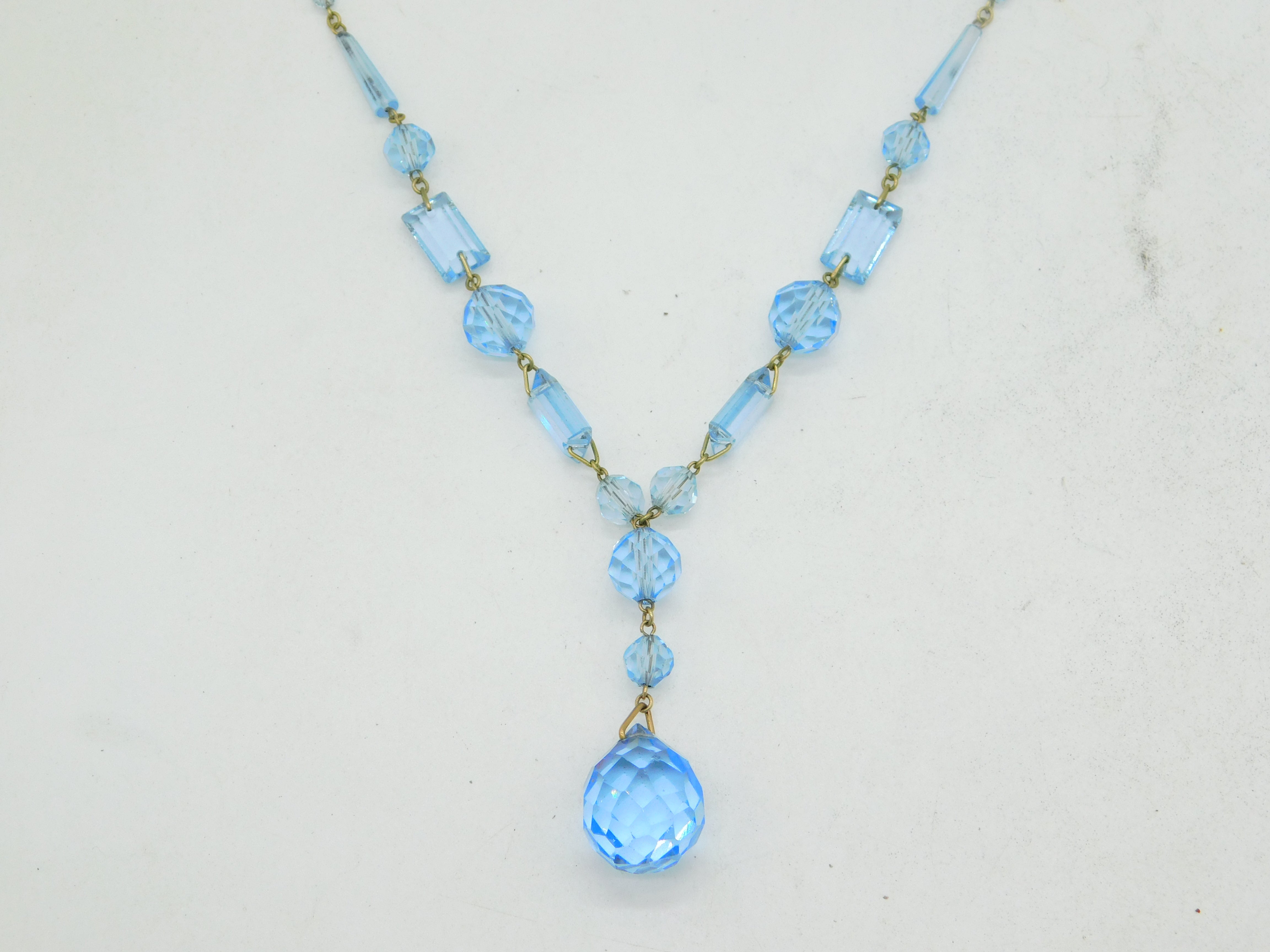 Details: A fantastic and wonderfully designed antique edwardian 9ct yellow gold & faceted blue glass drop pendant necklace hallmarked to the clasp c1910. This is a wonderful item that would make a perfect gift or addition to any collection. We are more than happy to provide XRF reports for items upon request.