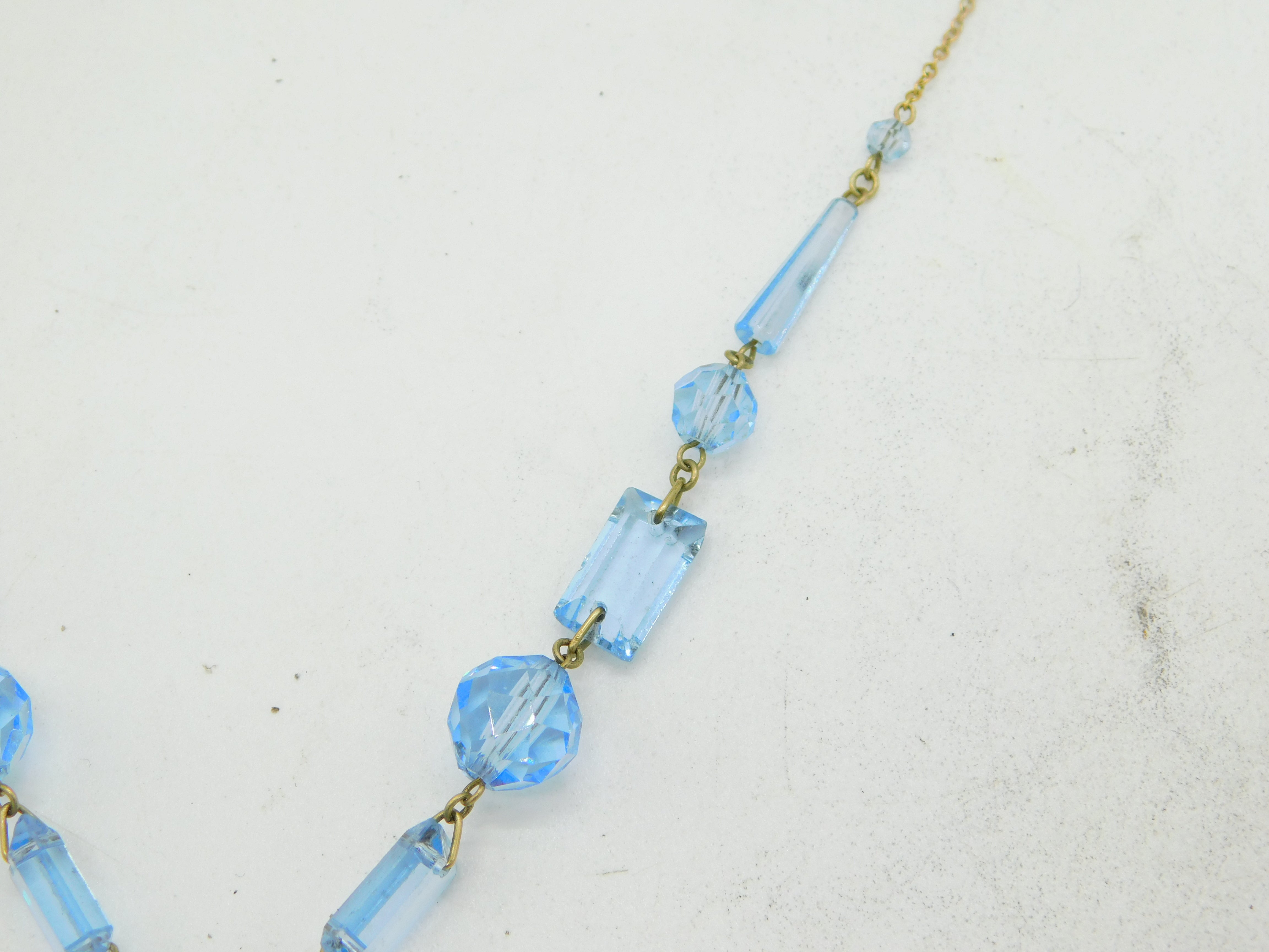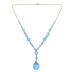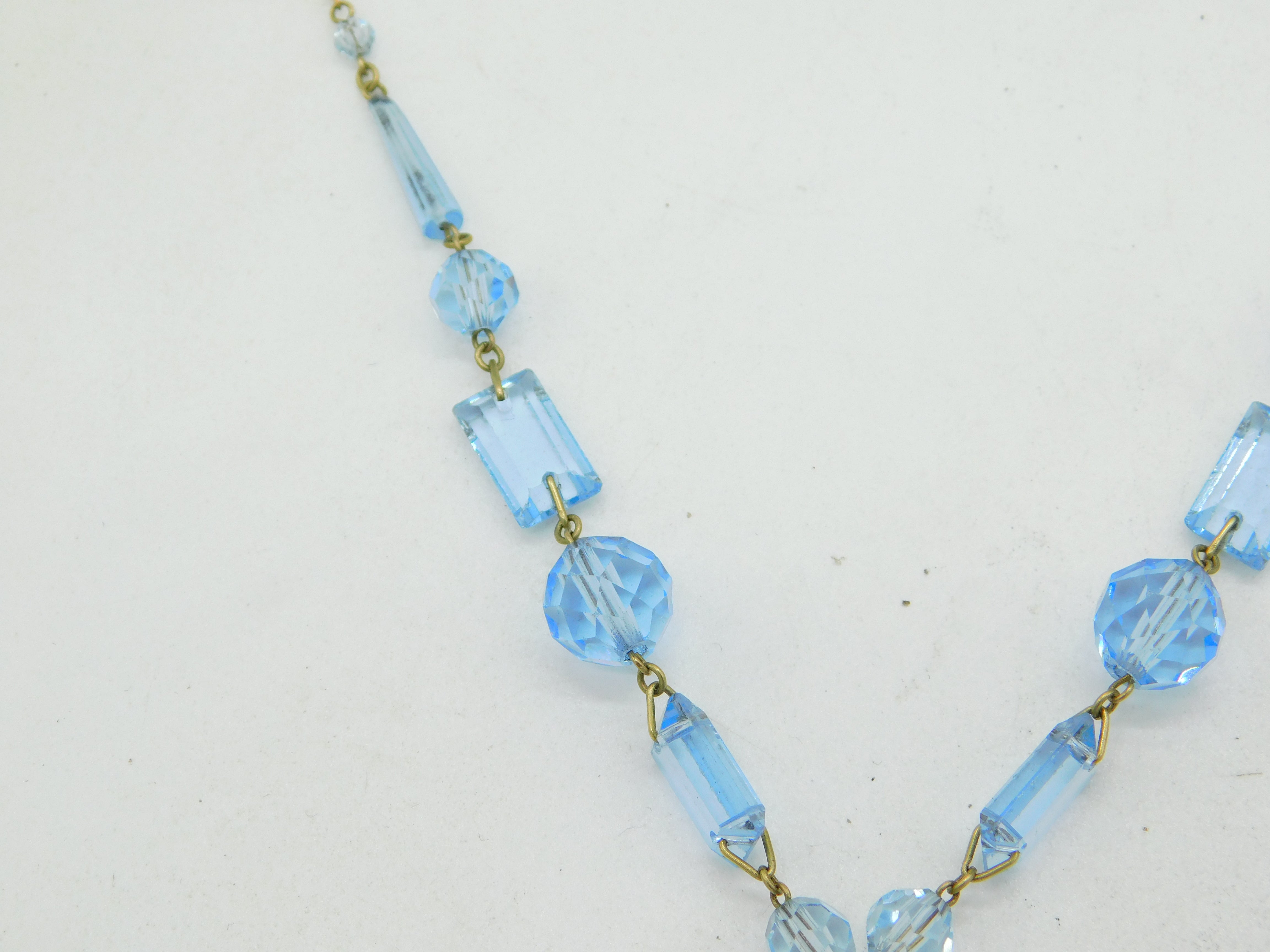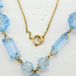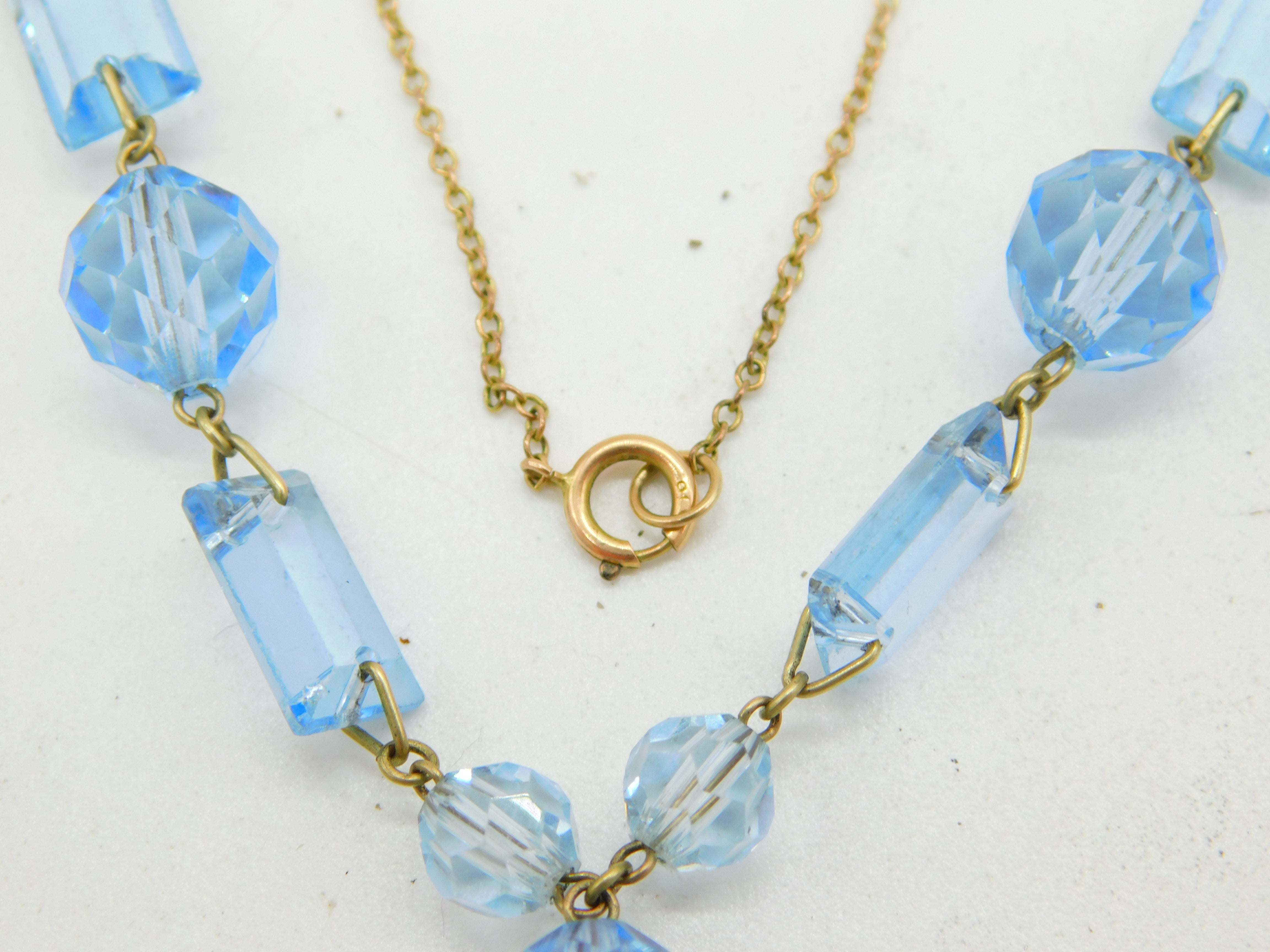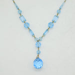 Edwardian 9ct Gold & Faceted Blue Glass Drop Pendant Necklace Antique c1910