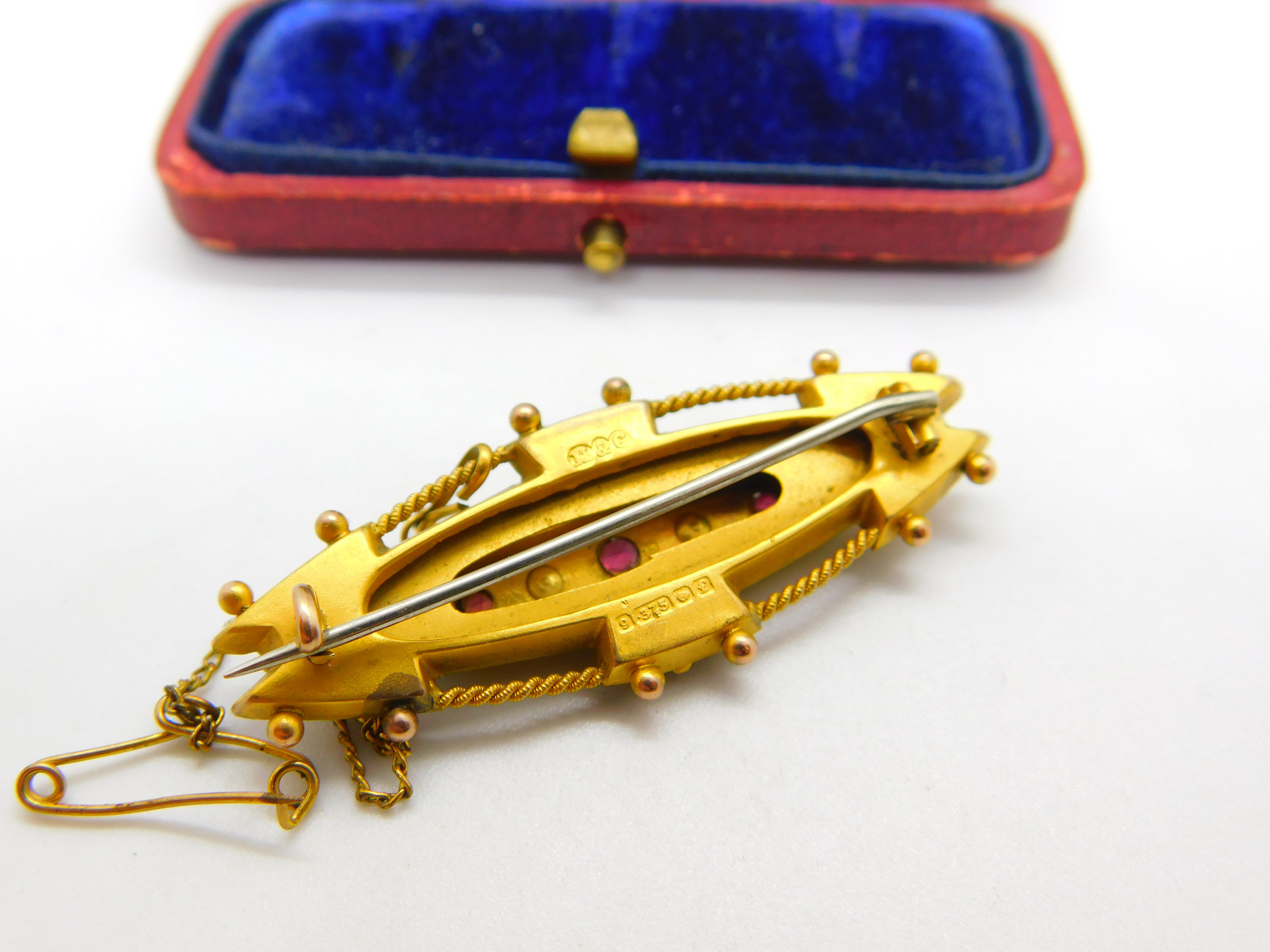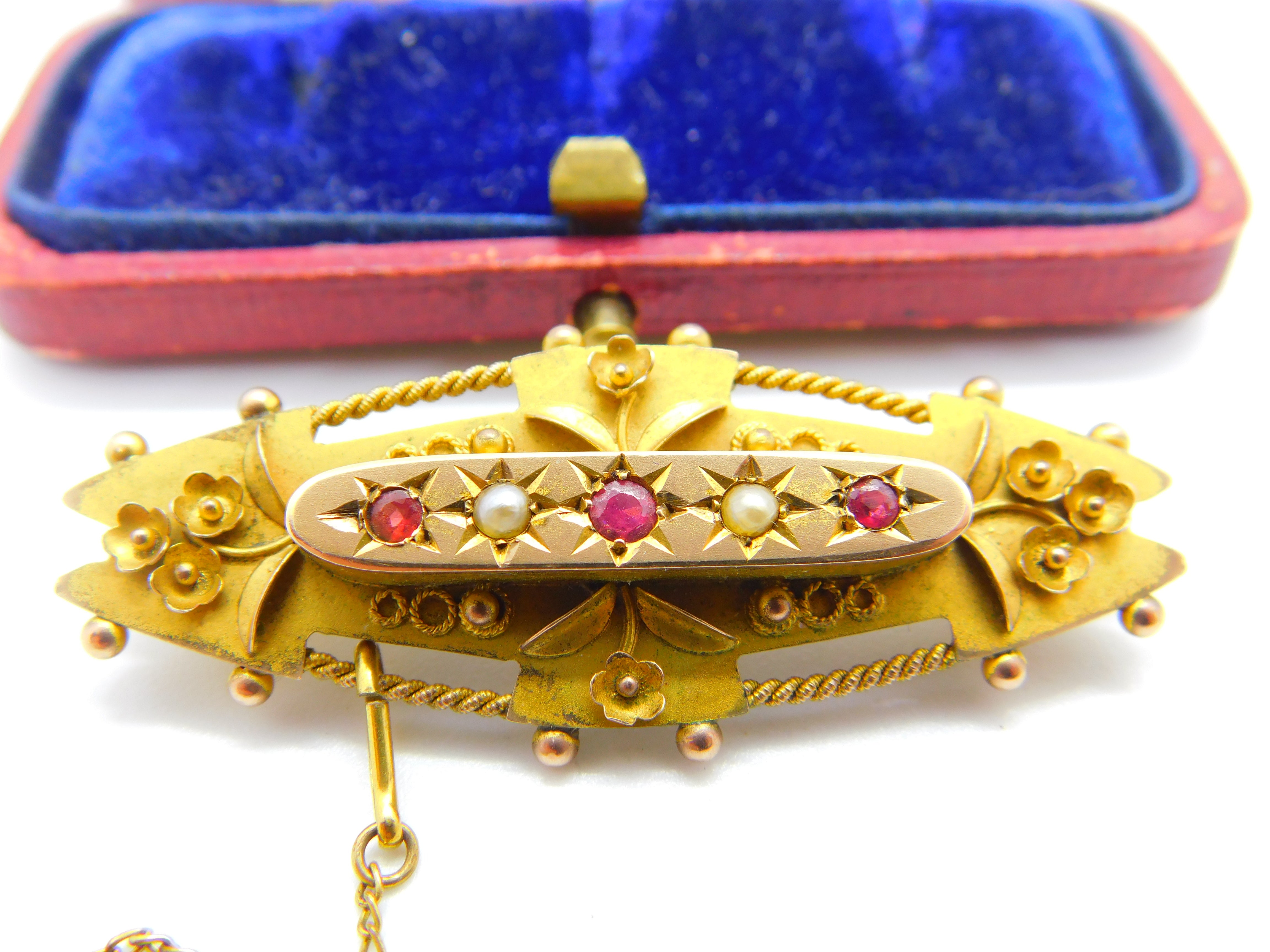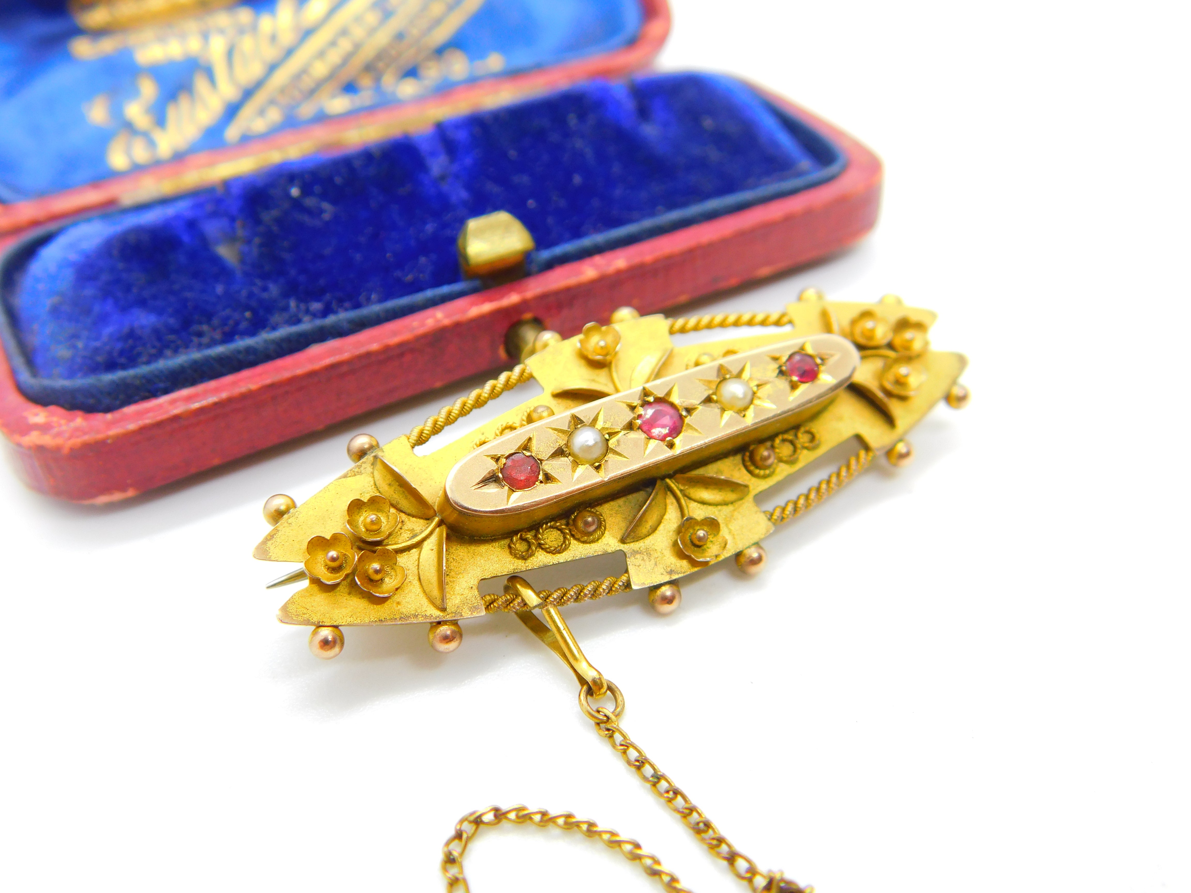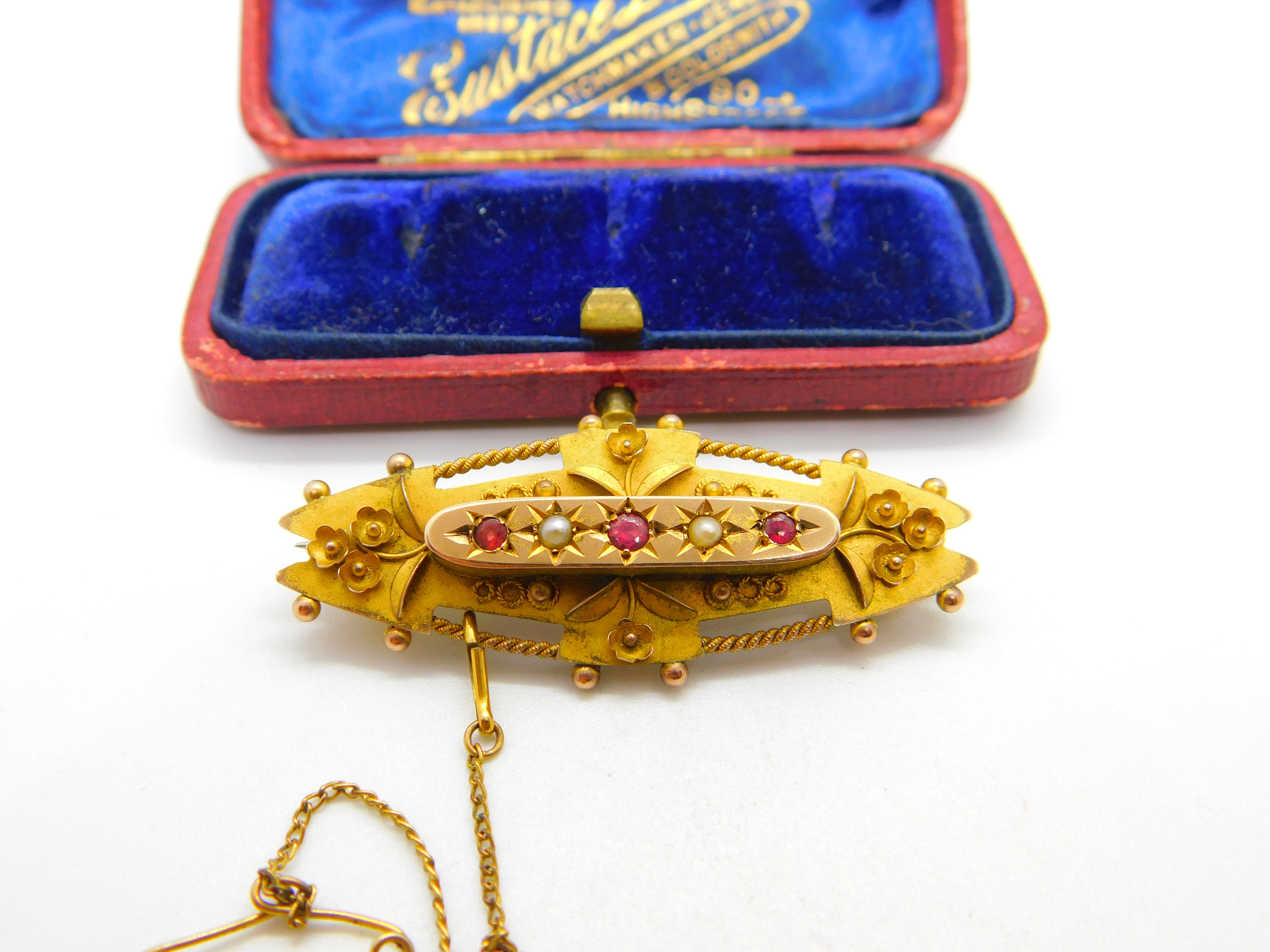 Edwardian 9ct Gold, Garnet & Seed Pearl Sweetheart Brooch Antique 1905