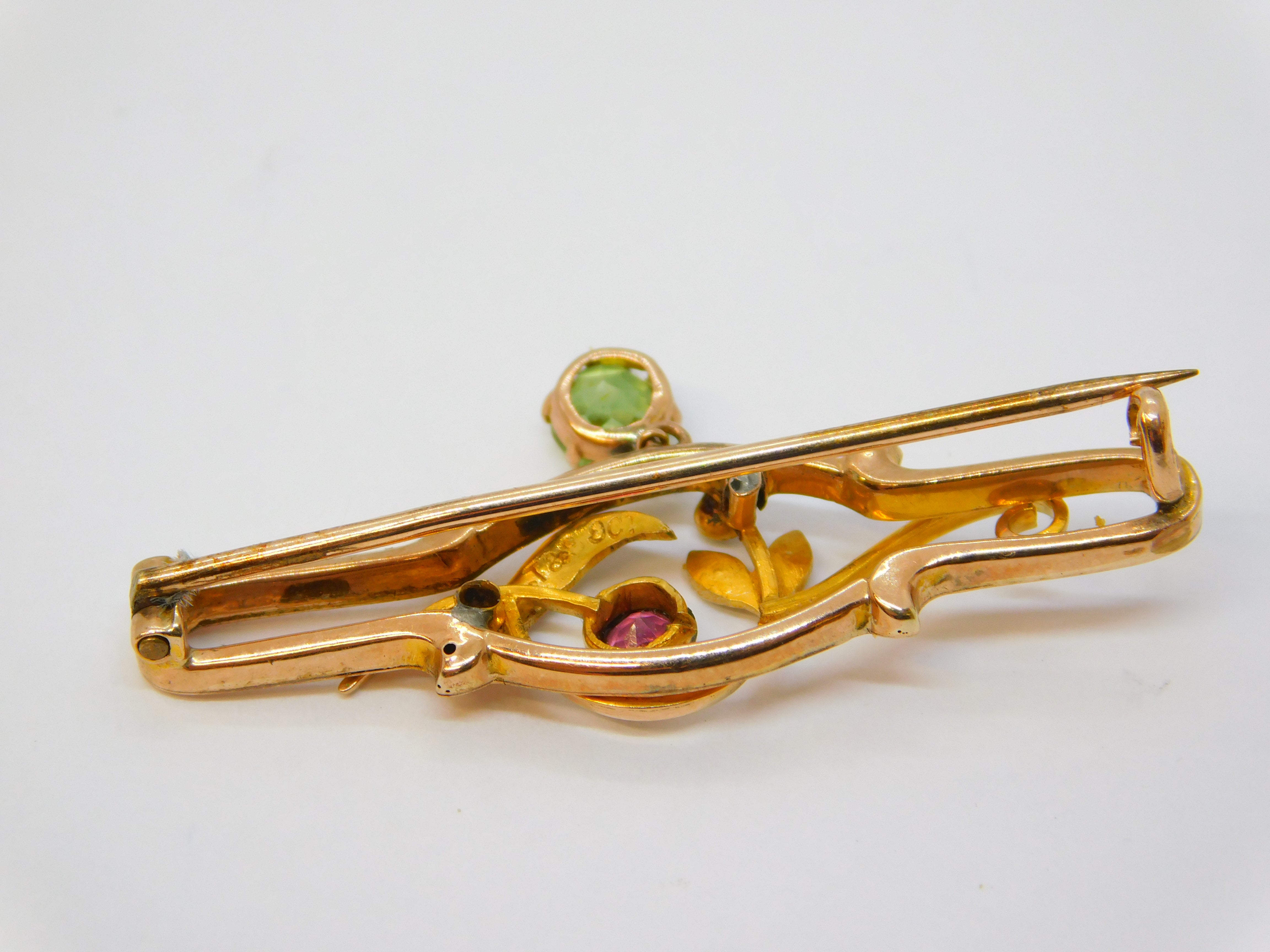 Edwardian 9ct Gold, Peridot, Topaz, Pearl Suffragette Brooch Antique c1910