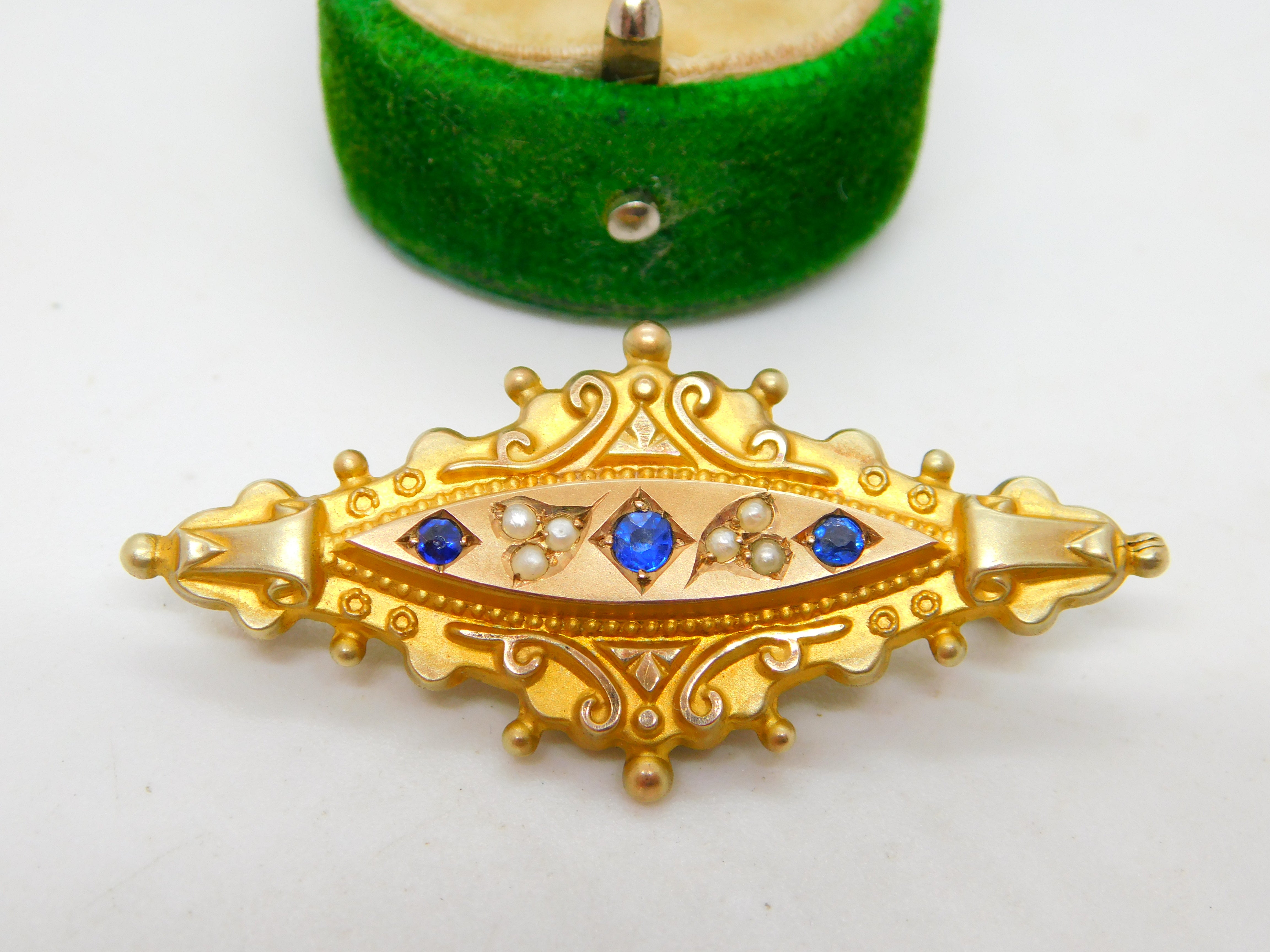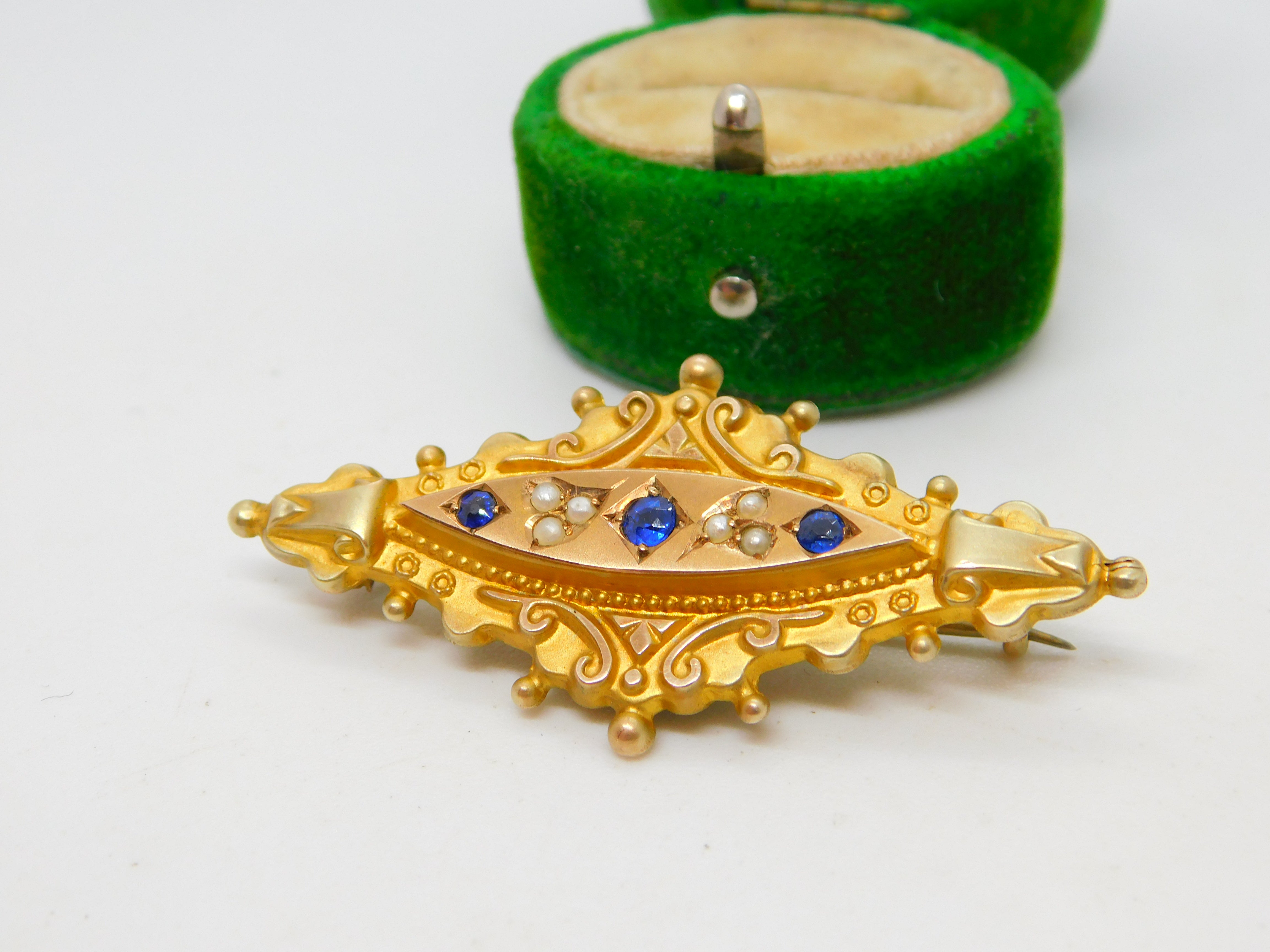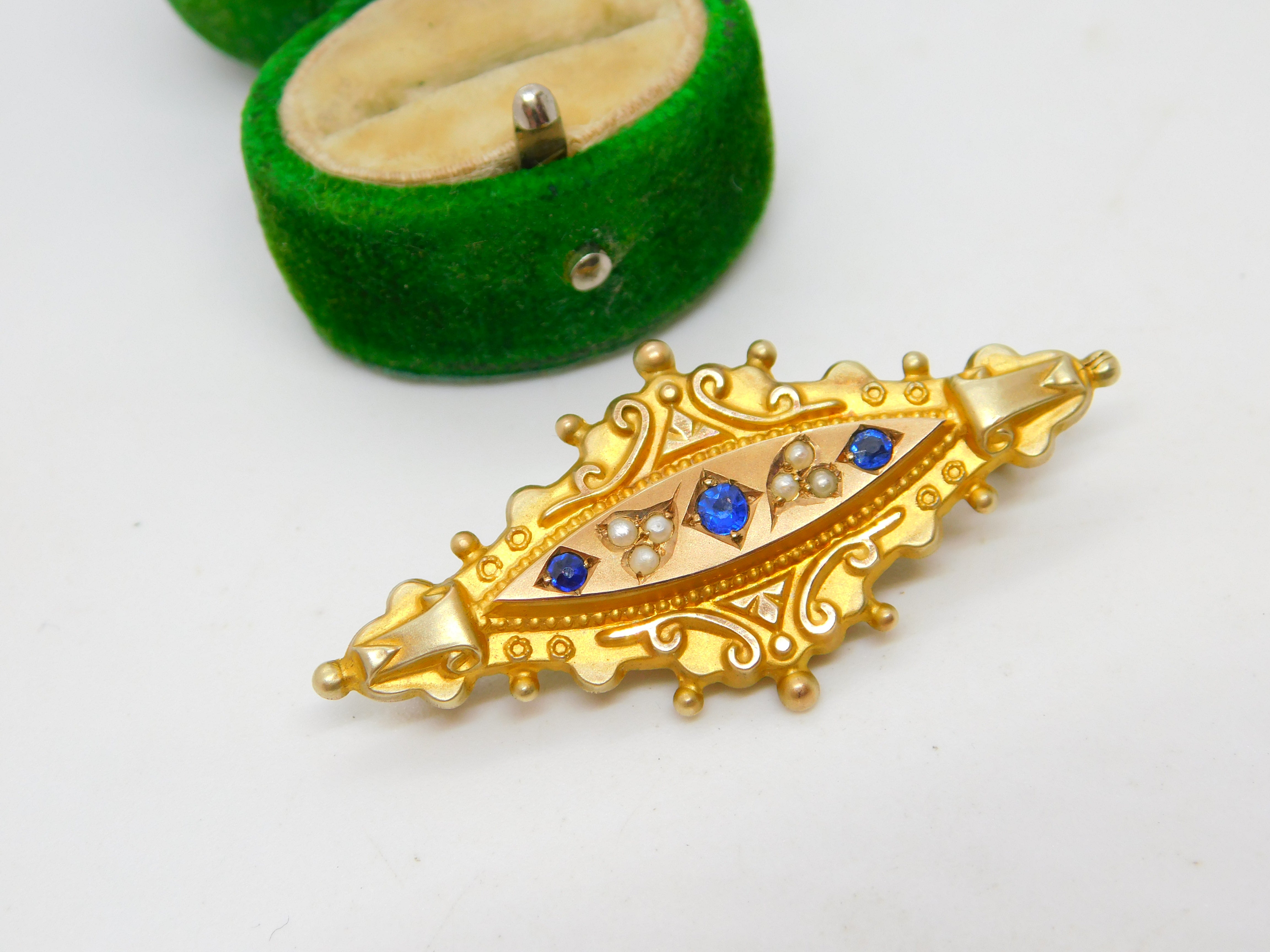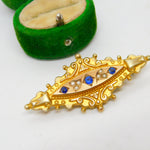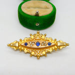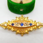 Edwardian 9ct Gold, Sapphire & Pearl Mourning Locket Brooch Antique c1910
