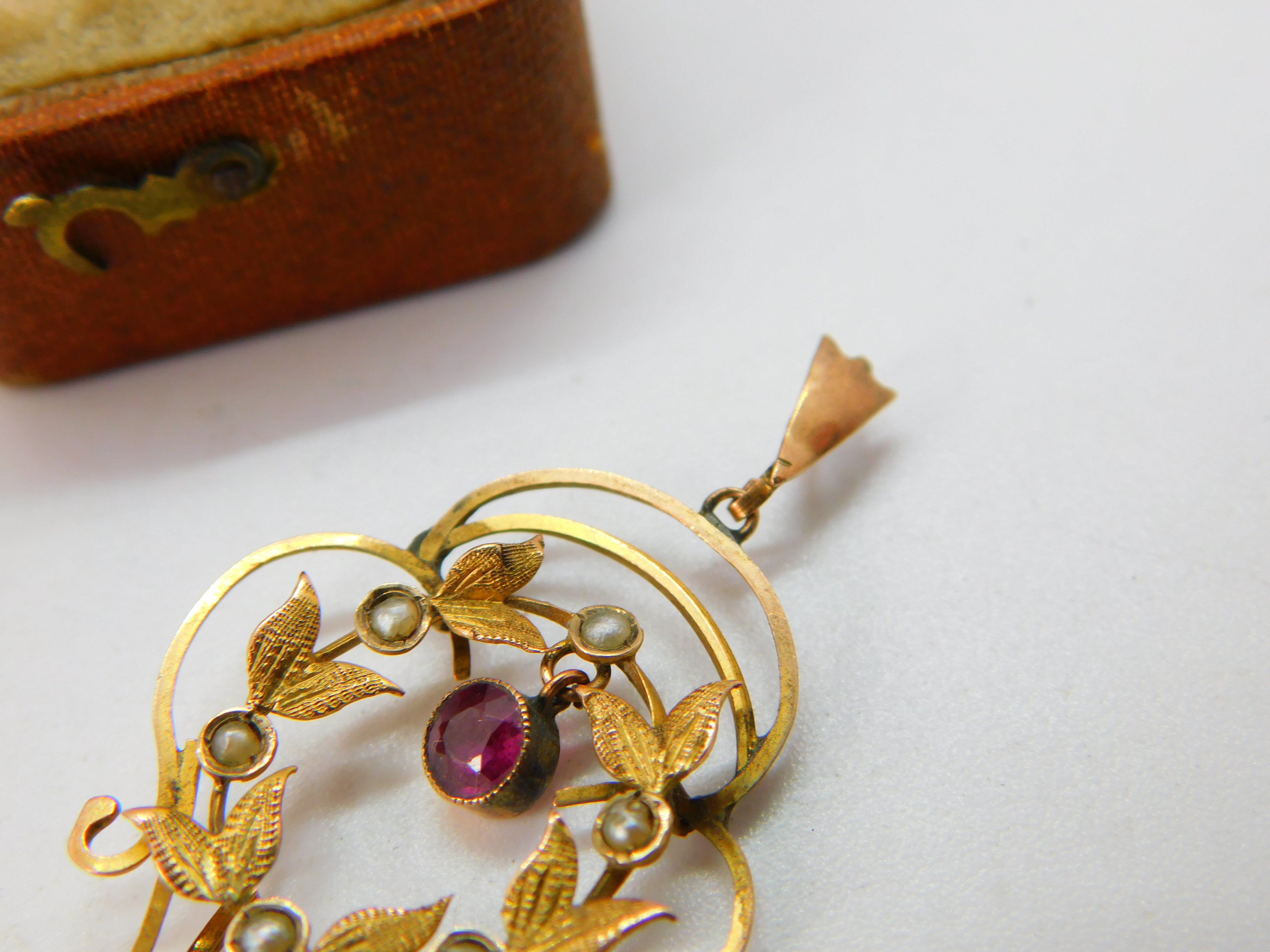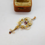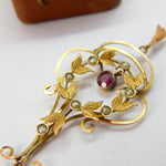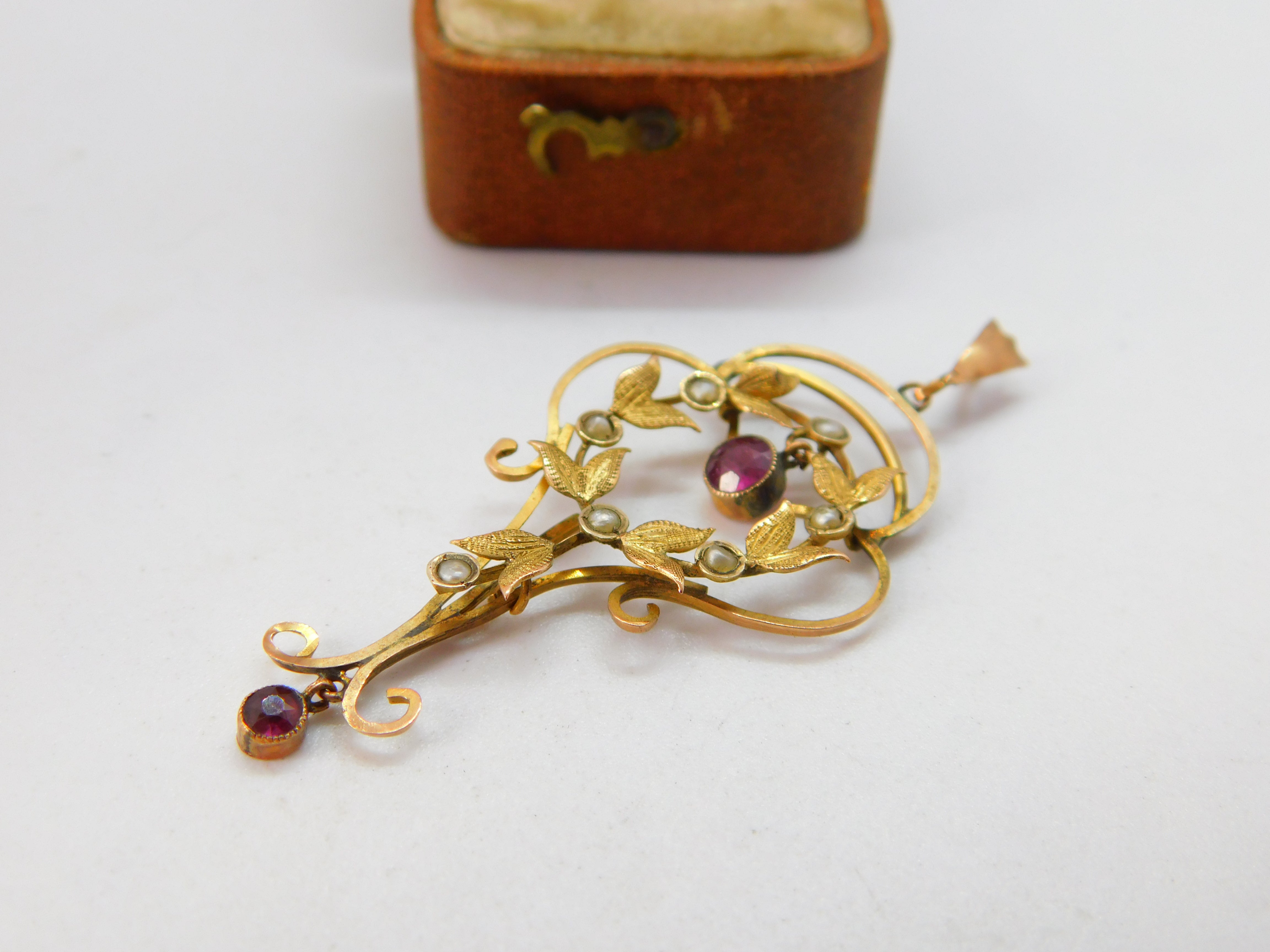 Details: A fantastic and wonderfully designed antique Edwardian 9ct yellow gold lavalier drop pendant set with seed pearls & pink topaz drops hallmarked to the bale c1910. This is a wonderful item that would make a perfect gift or addition to any collection. The BOX pictured is for PRESENTATION ONLY and is NOT included in the listings but used to frame the pictures unless specifically stated otherwise.