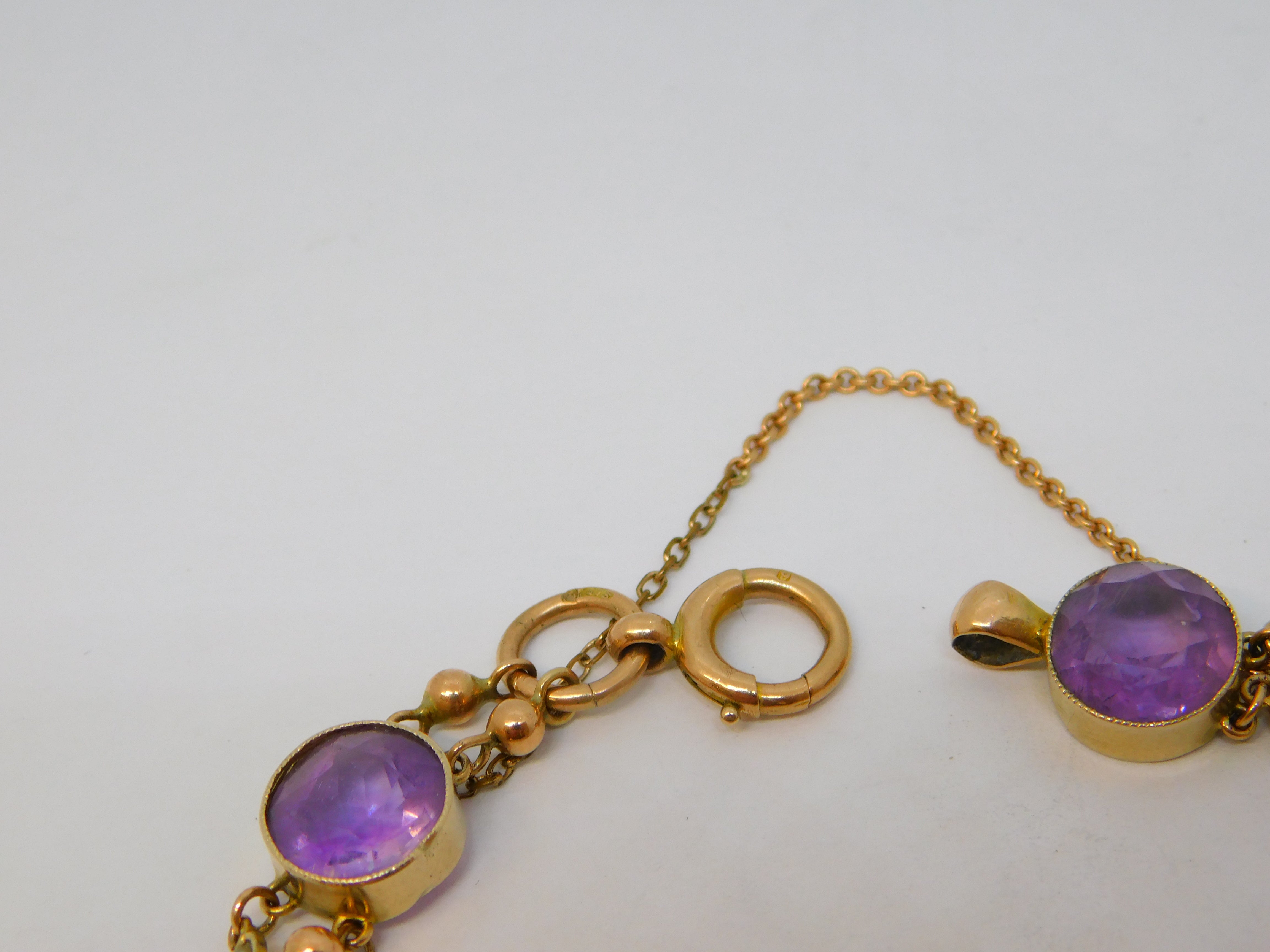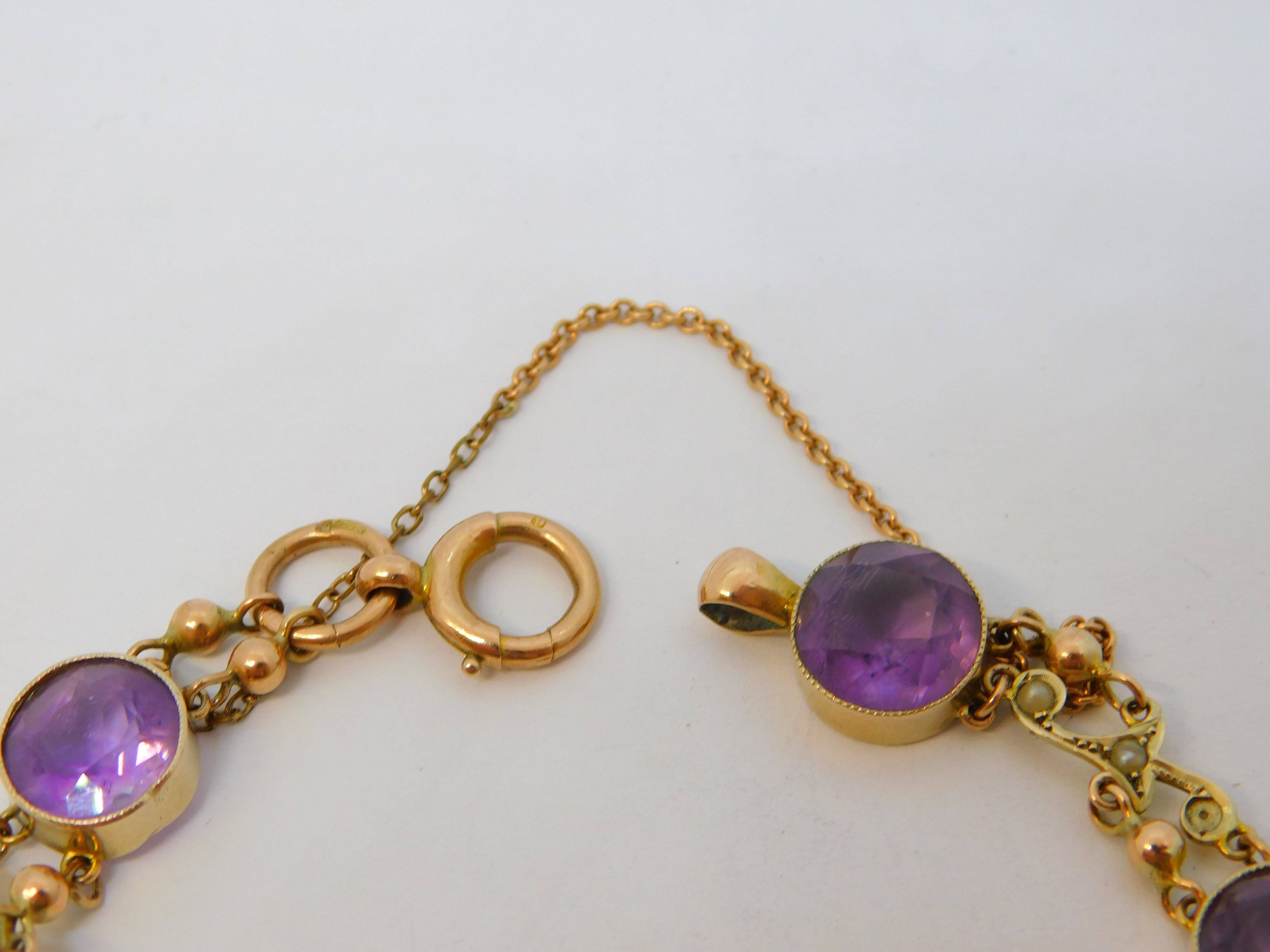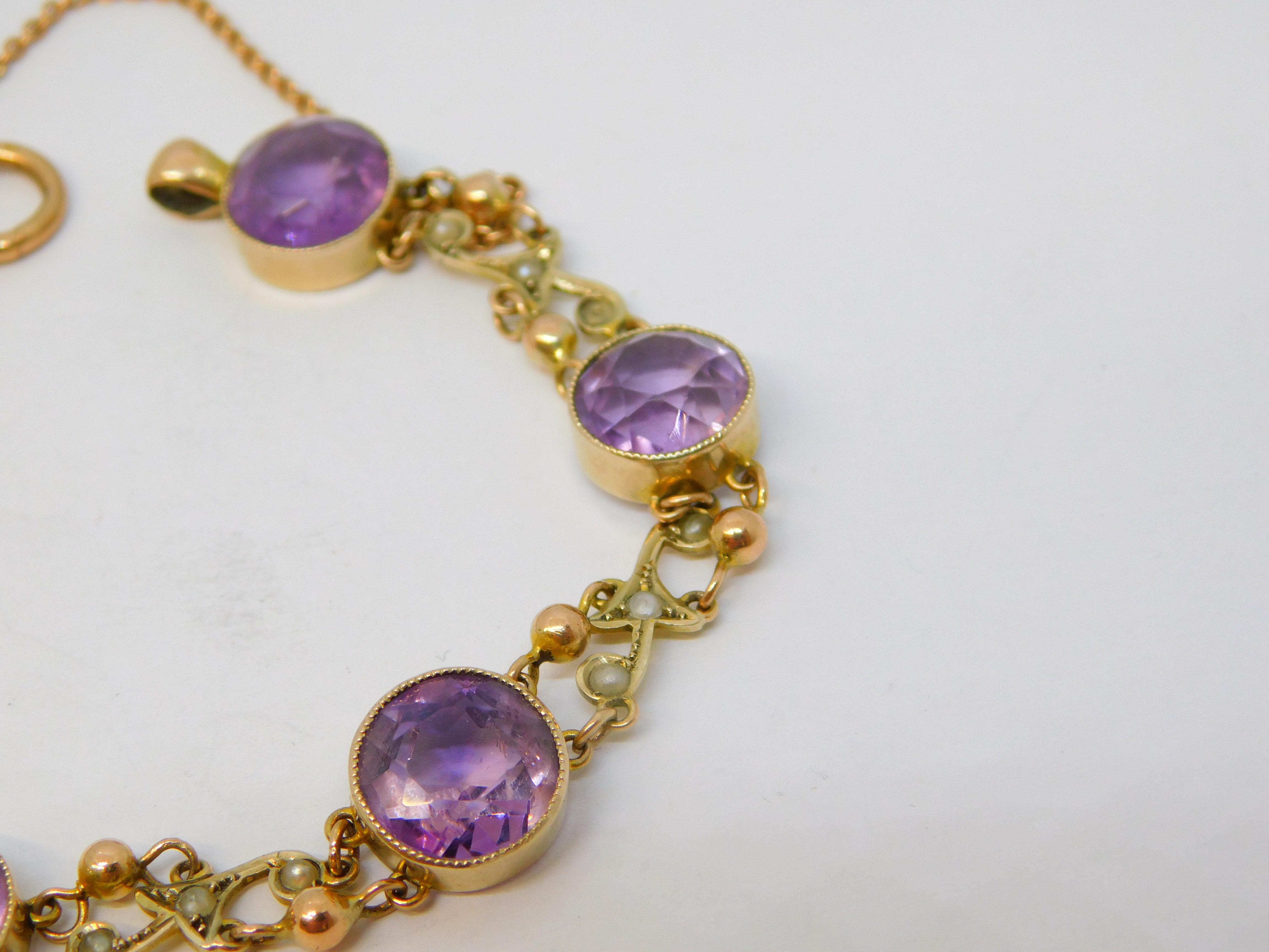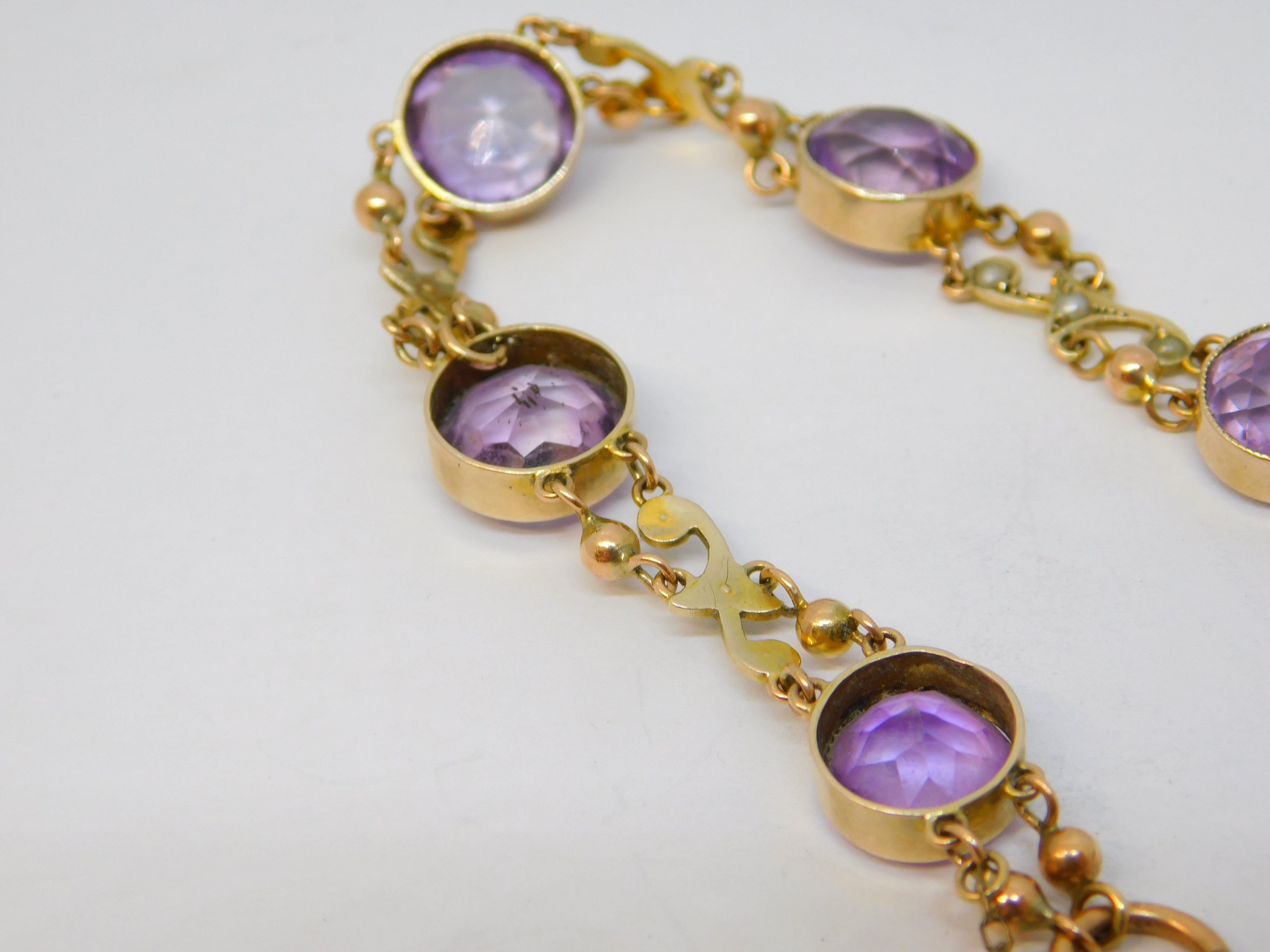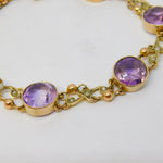 Edwardian 9ct Rose Gold, Amethyst & Seed Pearl Floral Bracelet Antique c1910