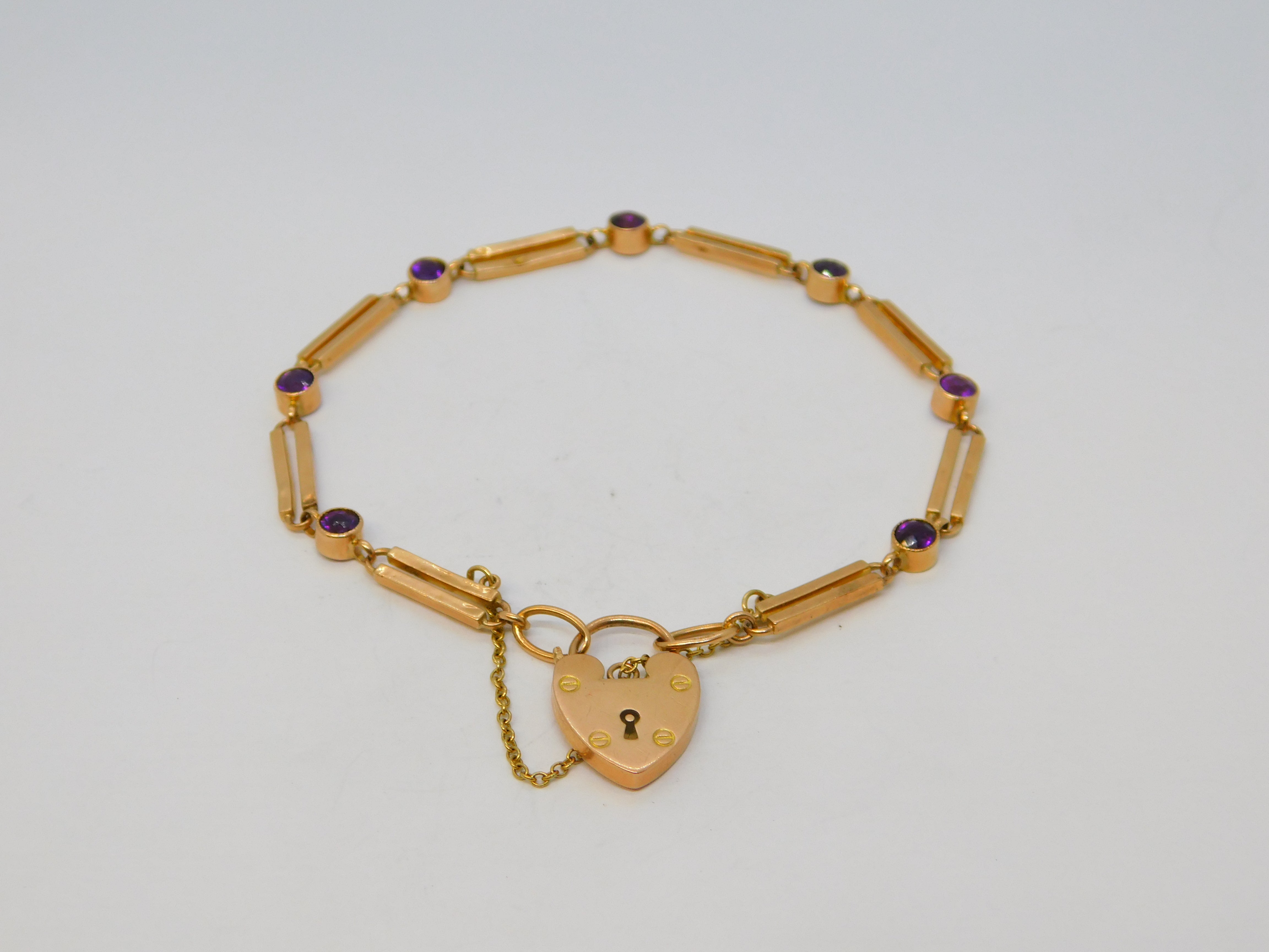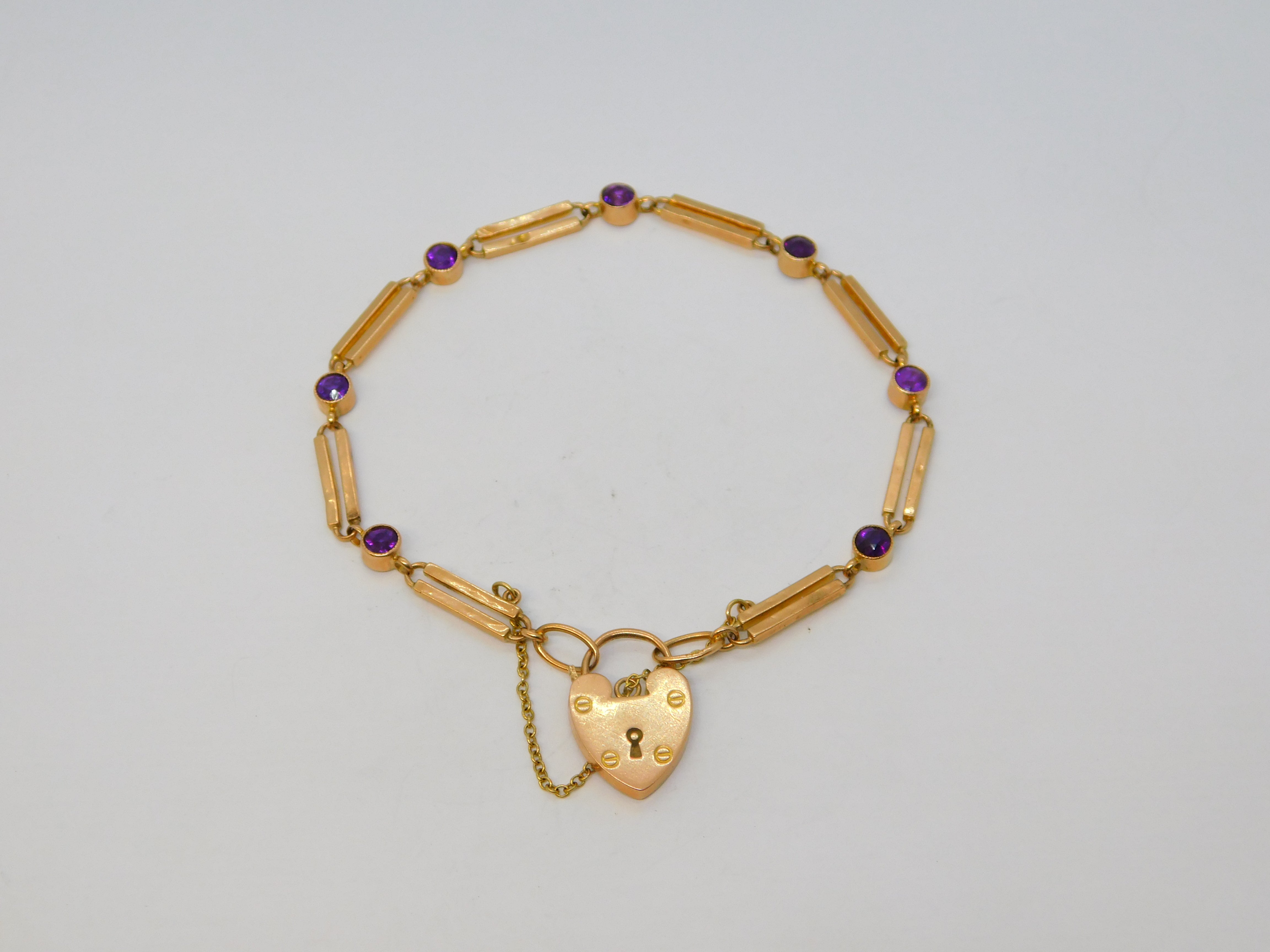 Details: A fantastic and wonderfully designed antique Edwardian 9ct rose gold trombone link charm bracelet with charming amethyst setting hallmarked to the reverse of the heart c1910. This is a wonderful item that would make a perfect gift or addition to any collection. The BOX pictured is for PRESENTATION ONLY and is NOT included in the listings but used to frame the pictures unless specifically stated otherwise.