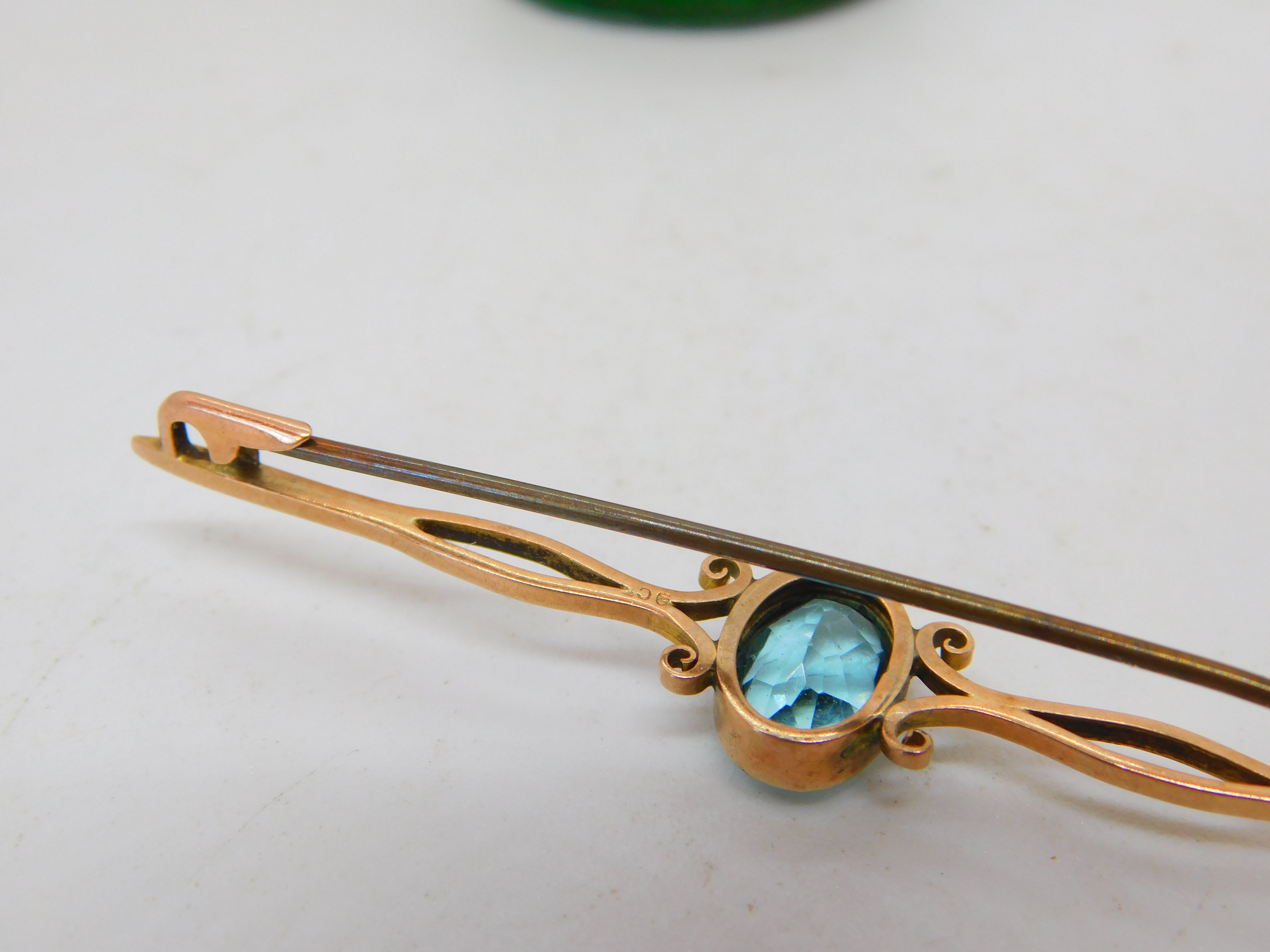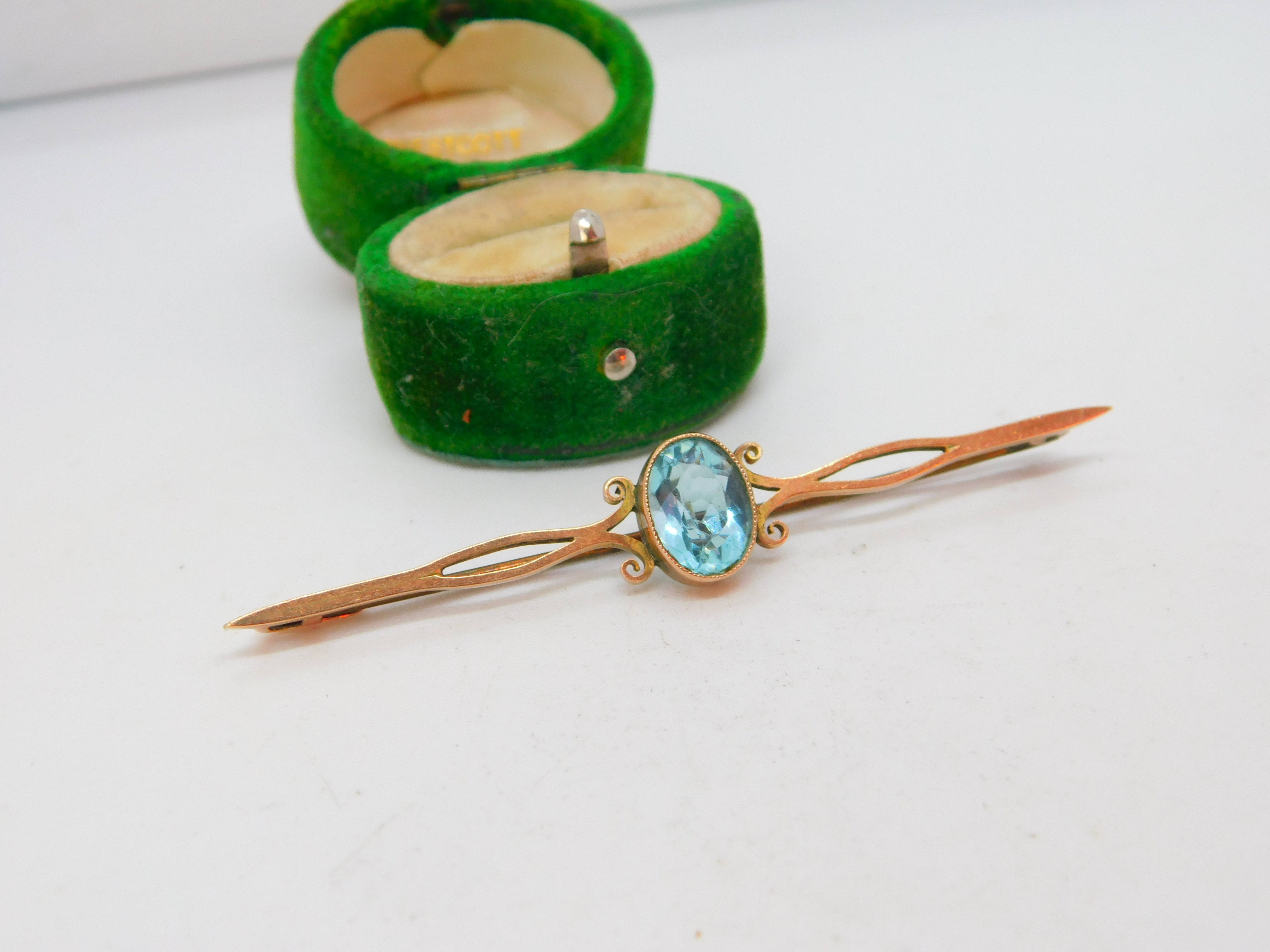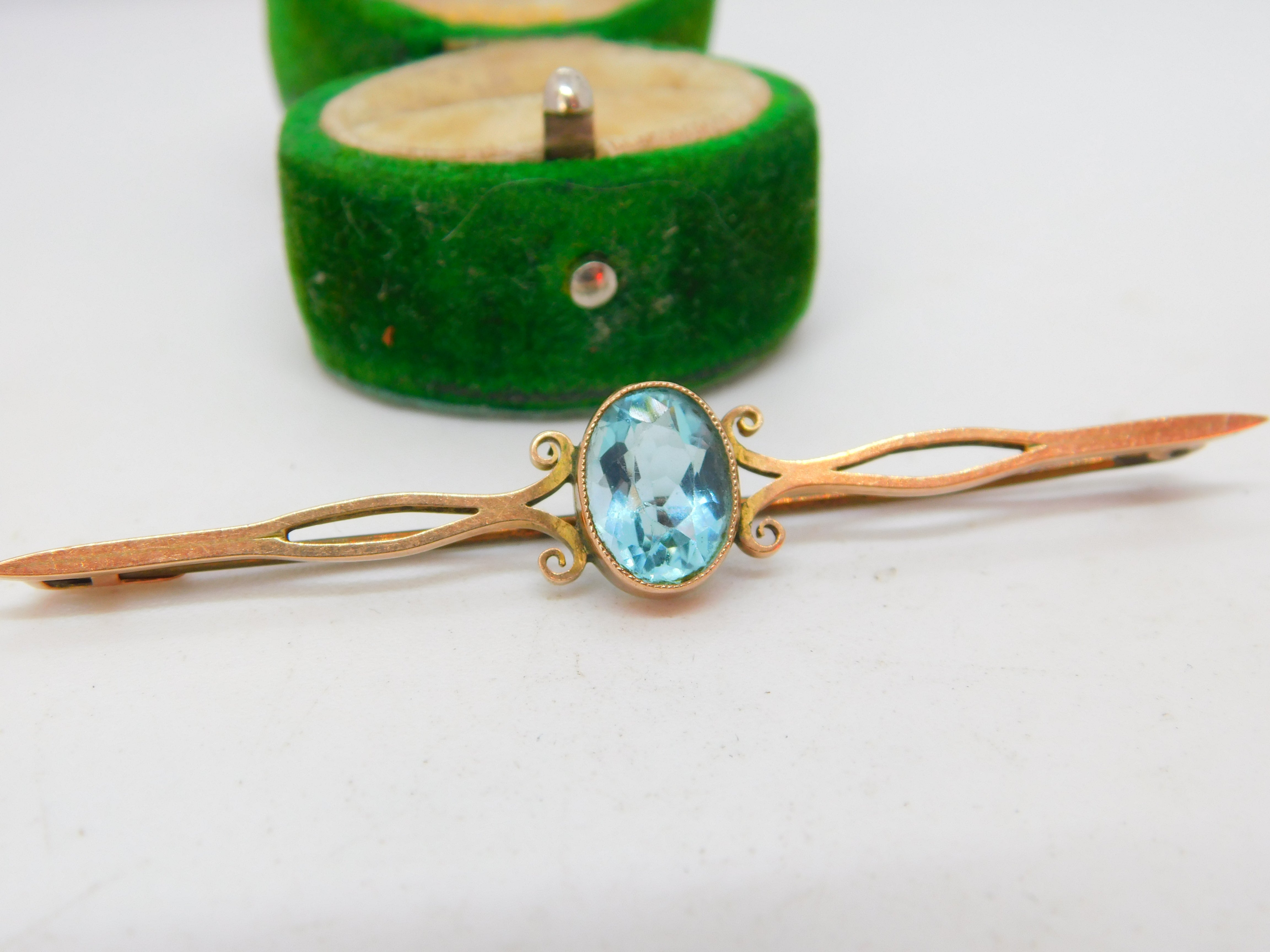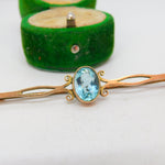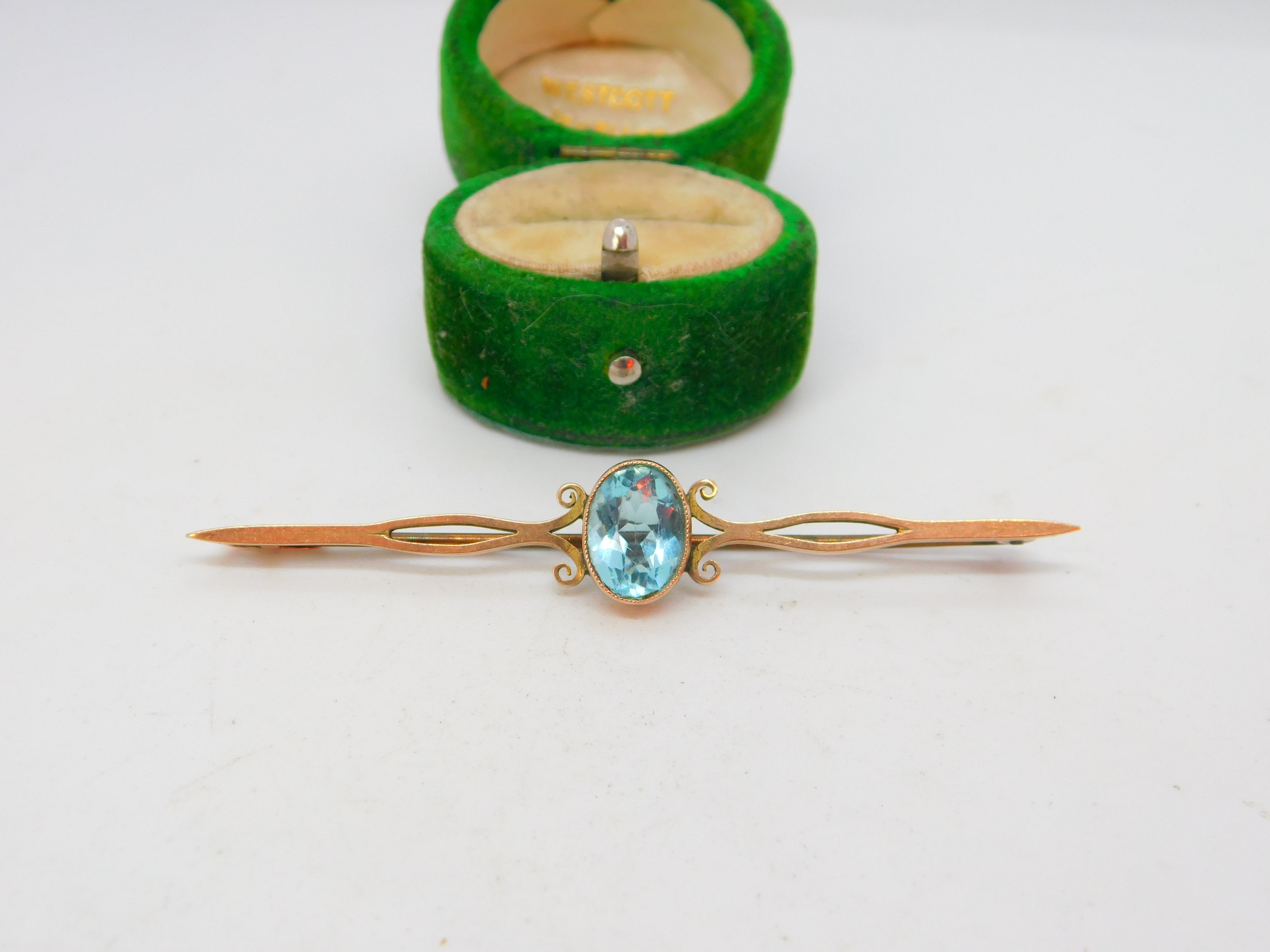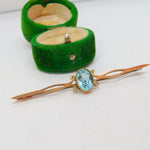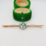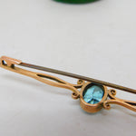 Edwardian 9ct Rose Gold Blue Topaz Floral Bar Brooch Antique c1910