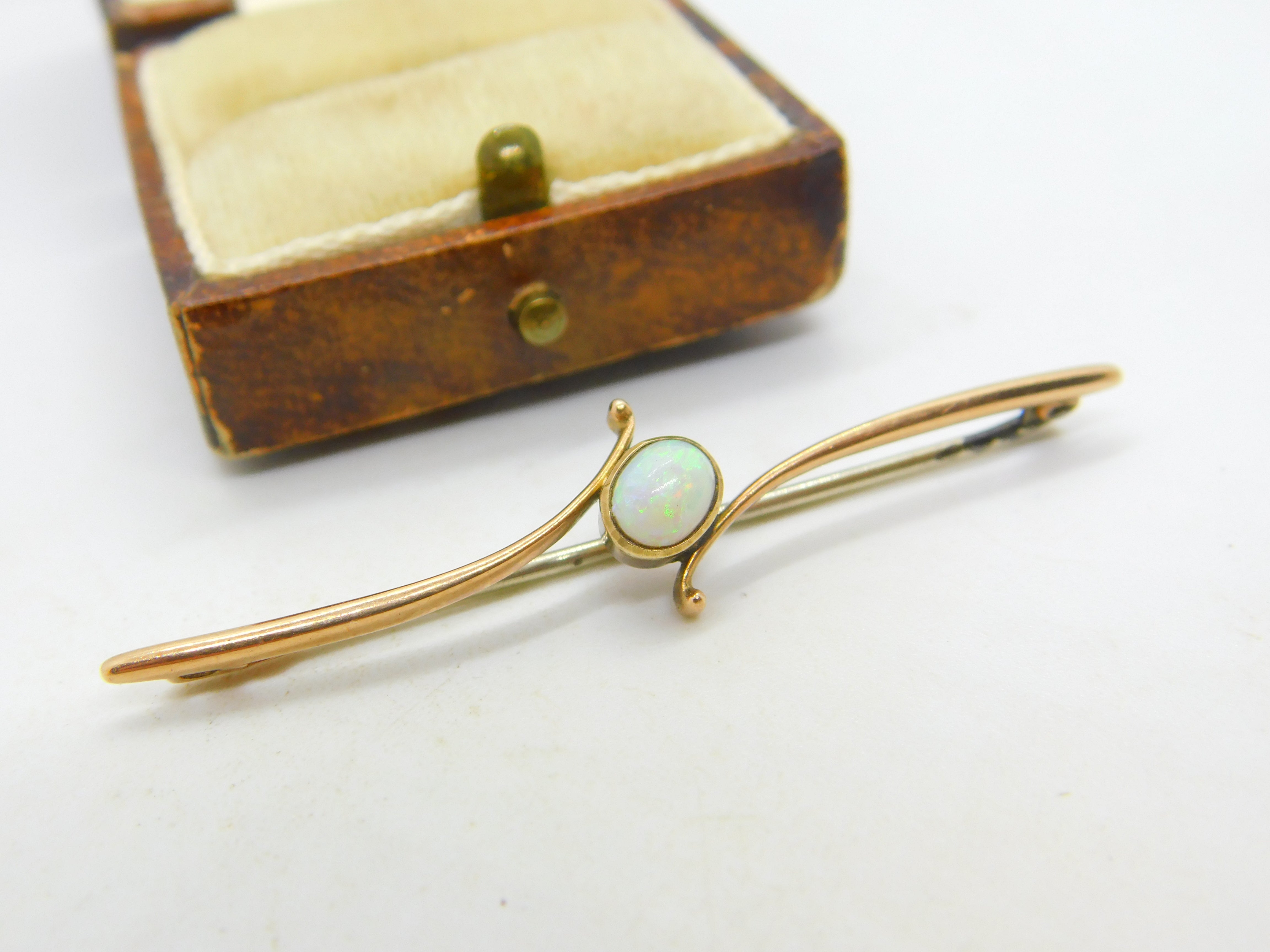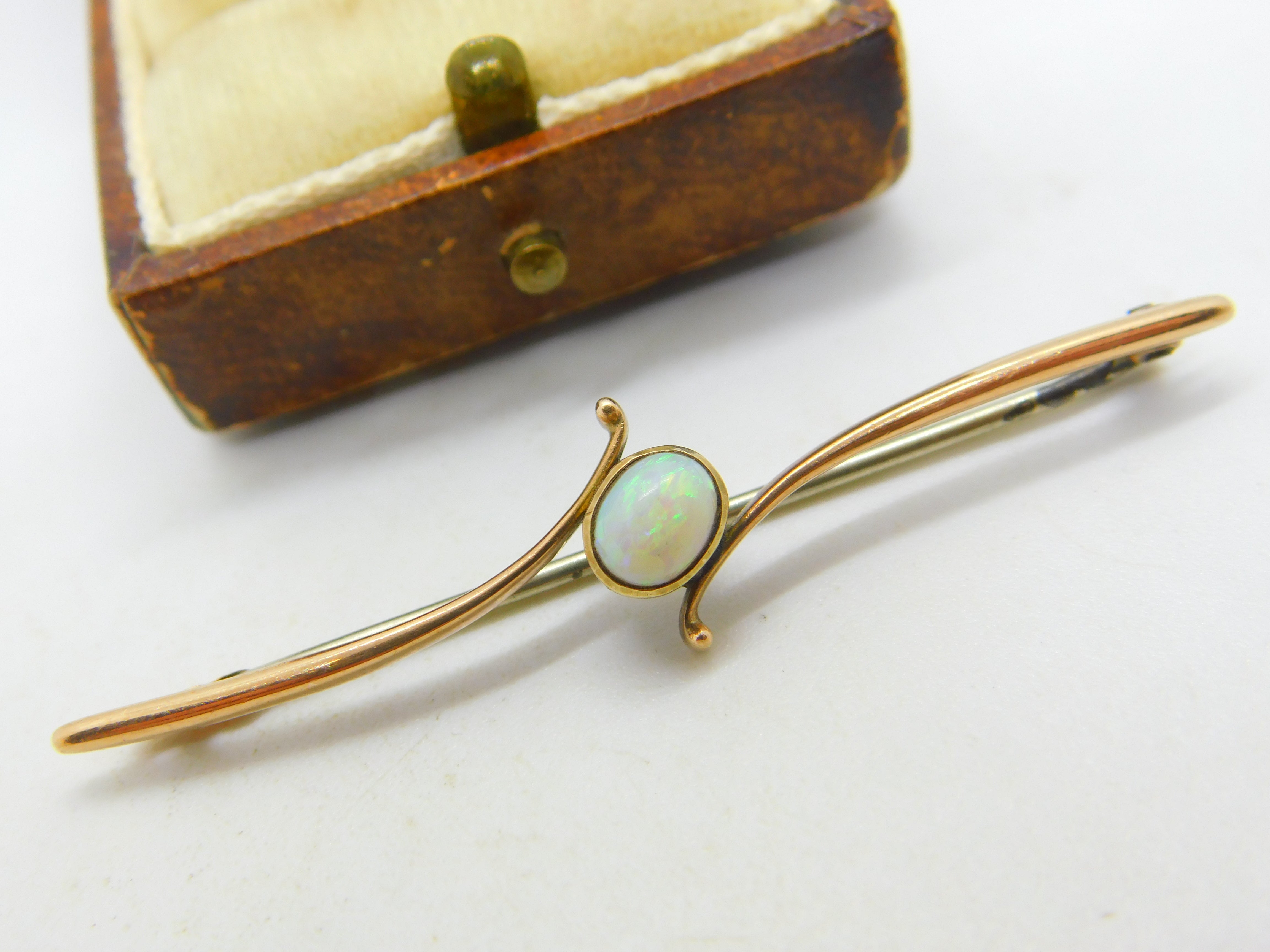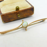 Edwardian 9ct Rose Gold & Cabochon Opal Sweetheart Brooch Antique c1910