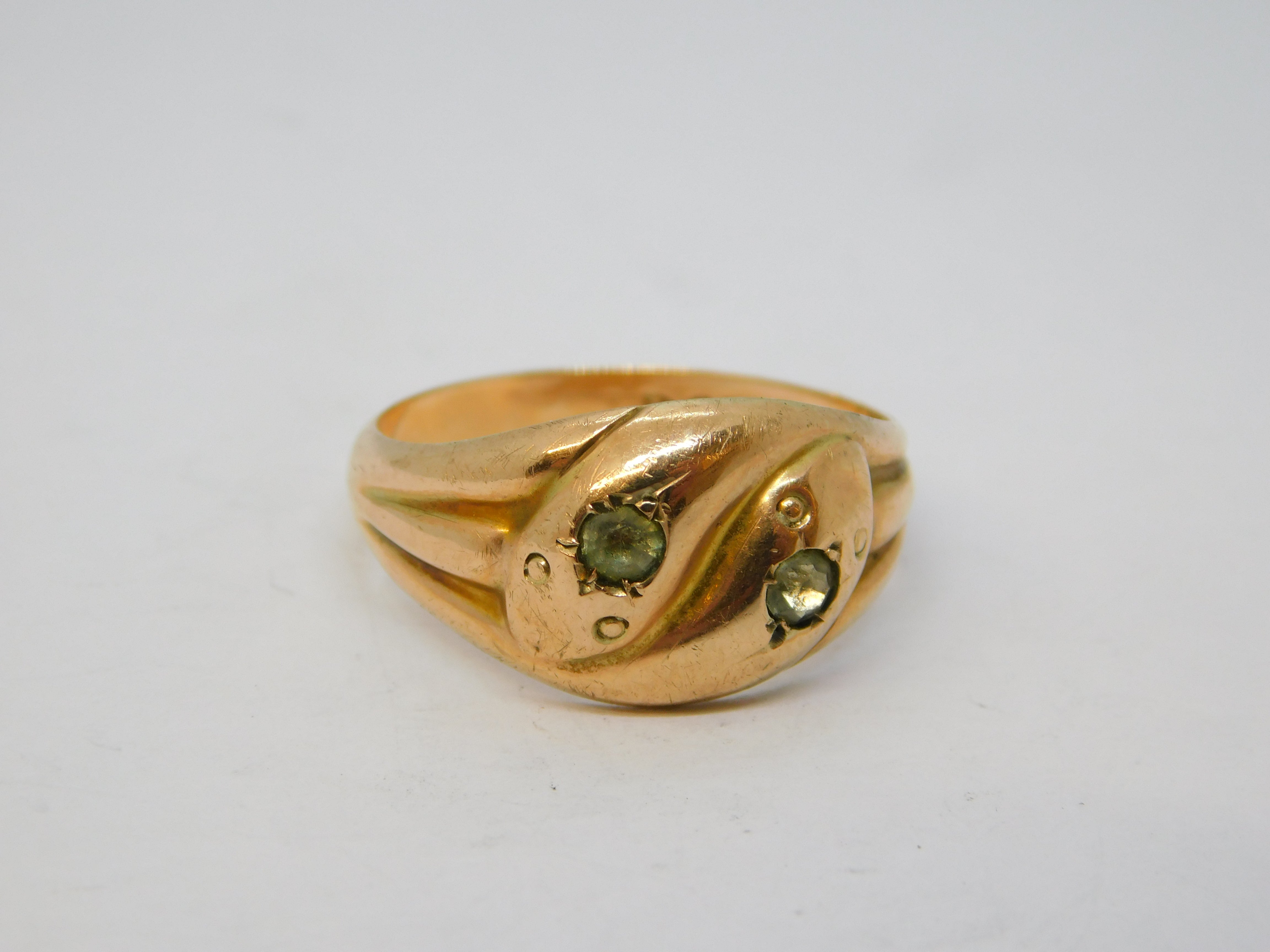 Details: A fantastic and wonderfully designed antique Edwardian 9ct rose gold snake or serpent crossover ring set with two spinel stones hallmarked Chester 1910 to the interior band, slight discolouration to the stones. This is a wonderful item that would make a perfect gift or addition to any collection.