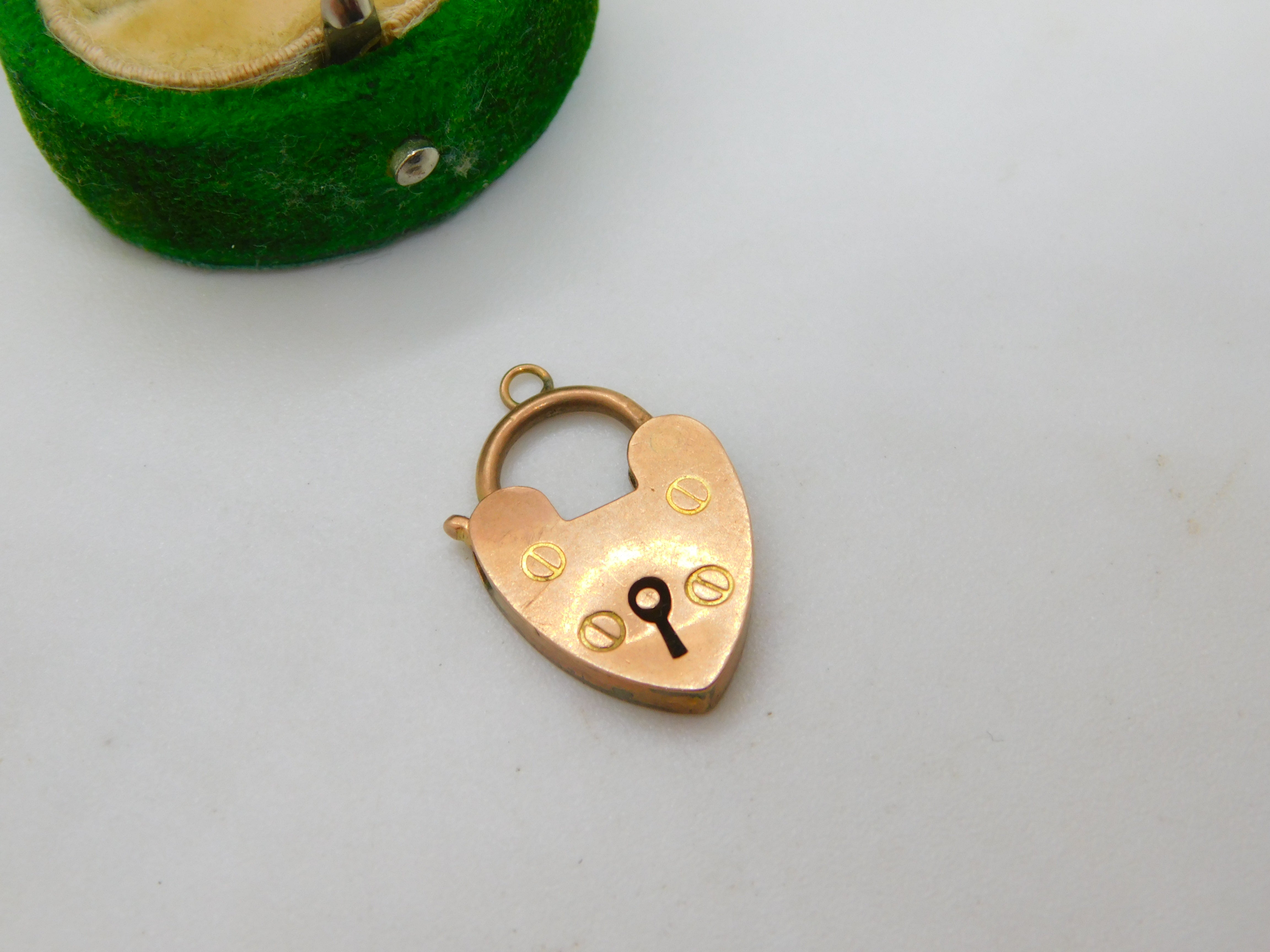 Edwardian 9ct Rose Gold Heart Lock Bracelet Clasp Antique c1910