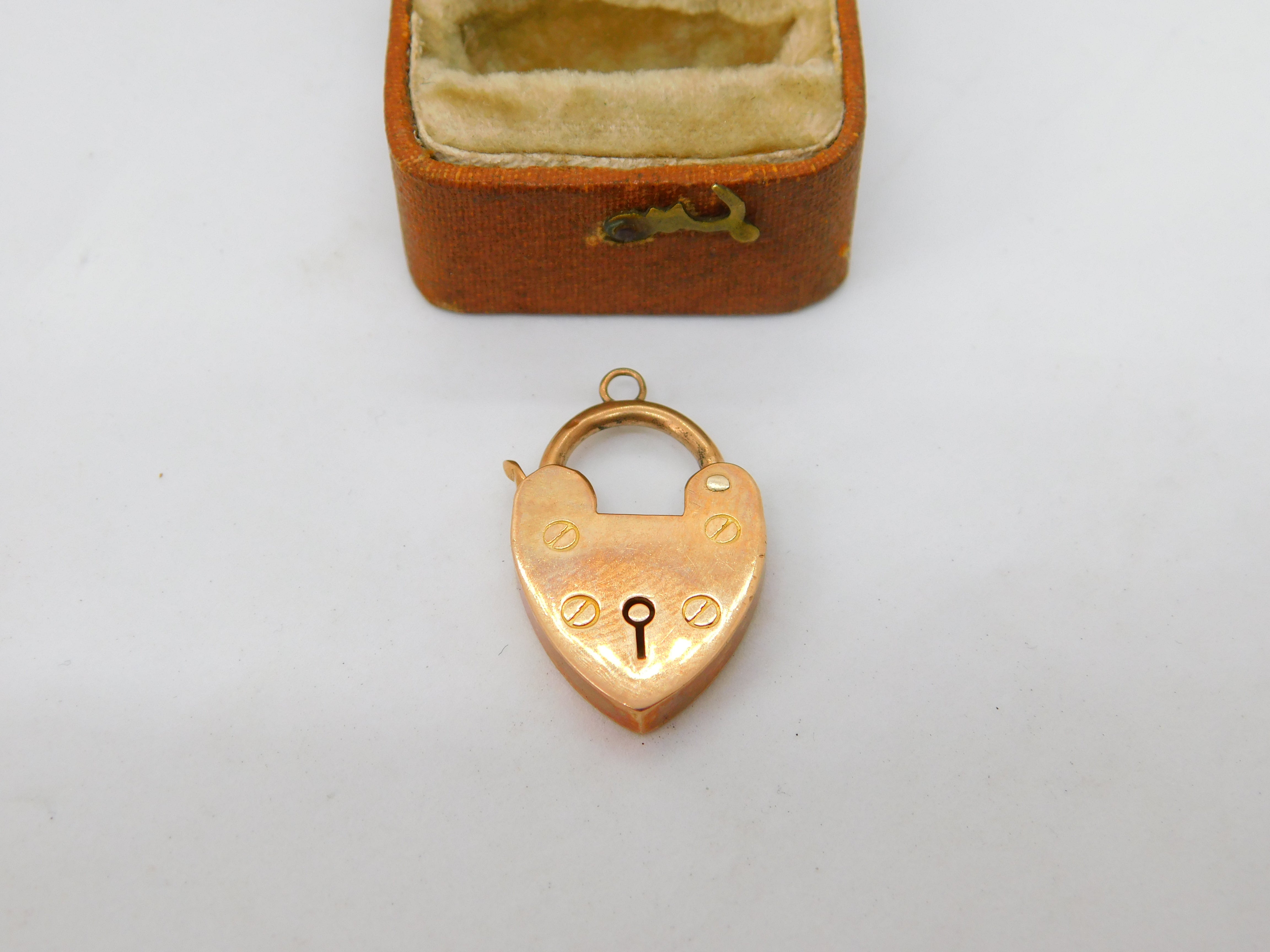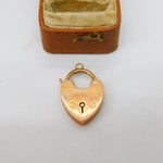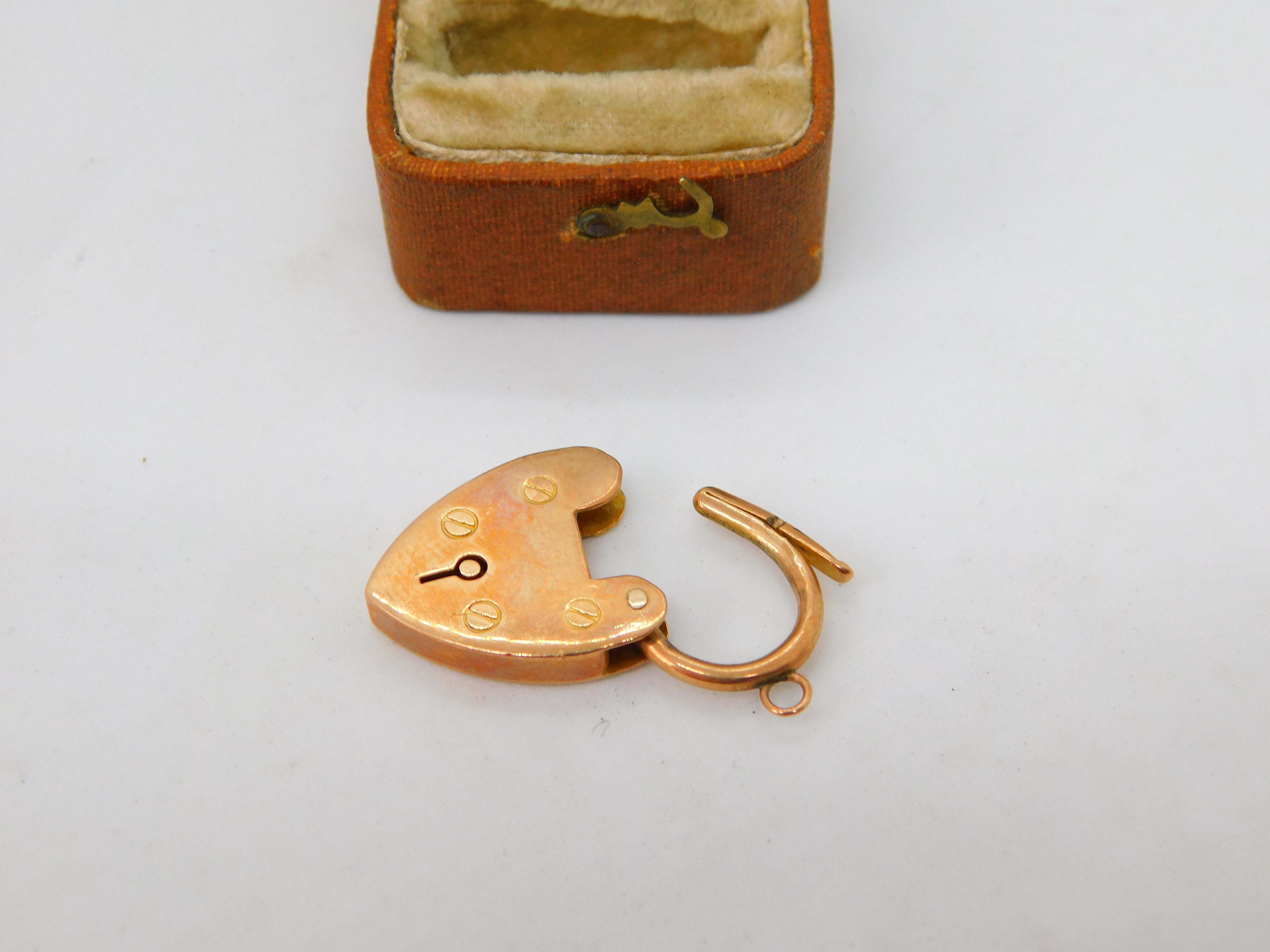 Edwardian 9ct Rose Gold Heart Lock Charm Bracelet Clasp Antique c1910