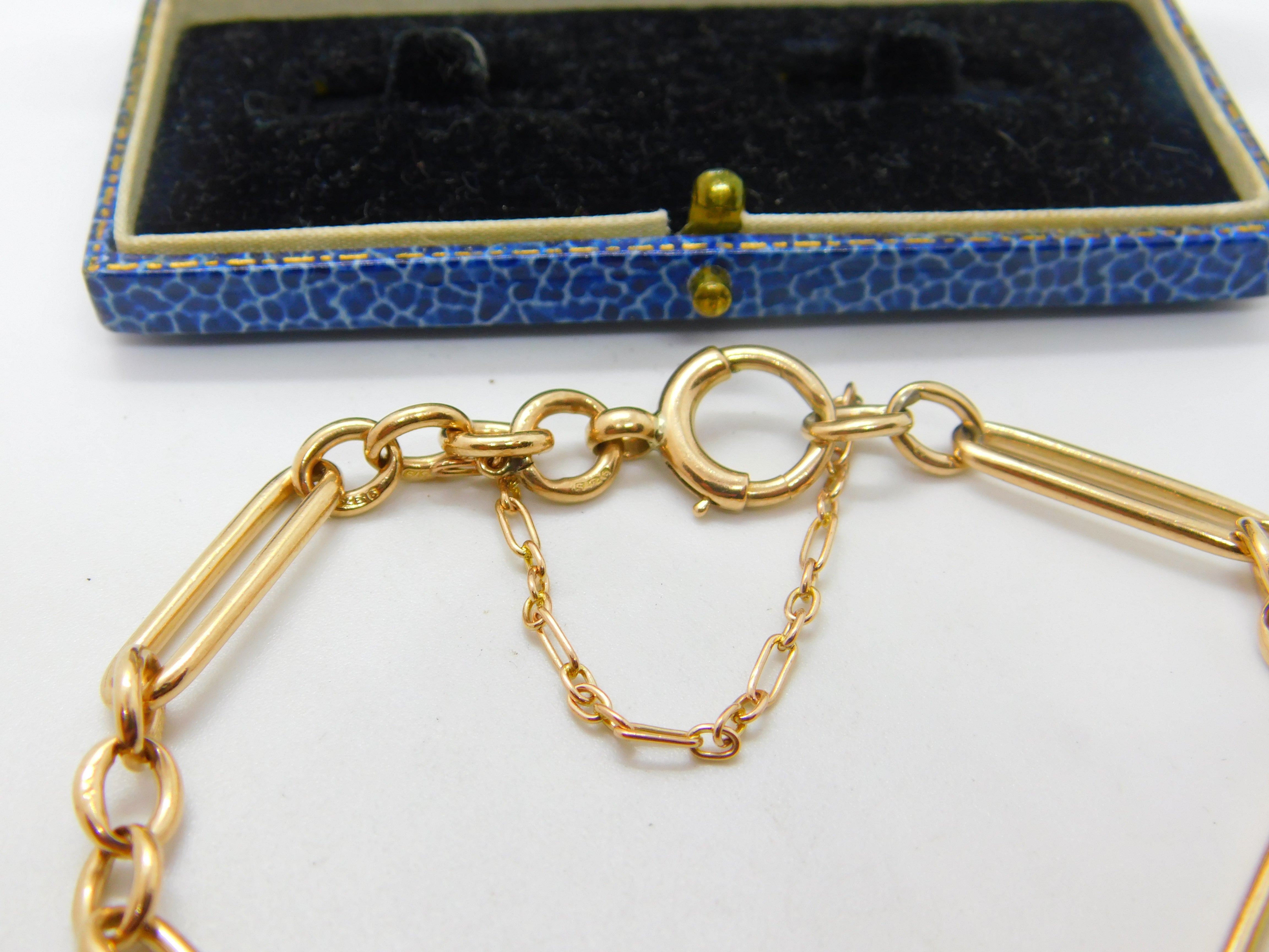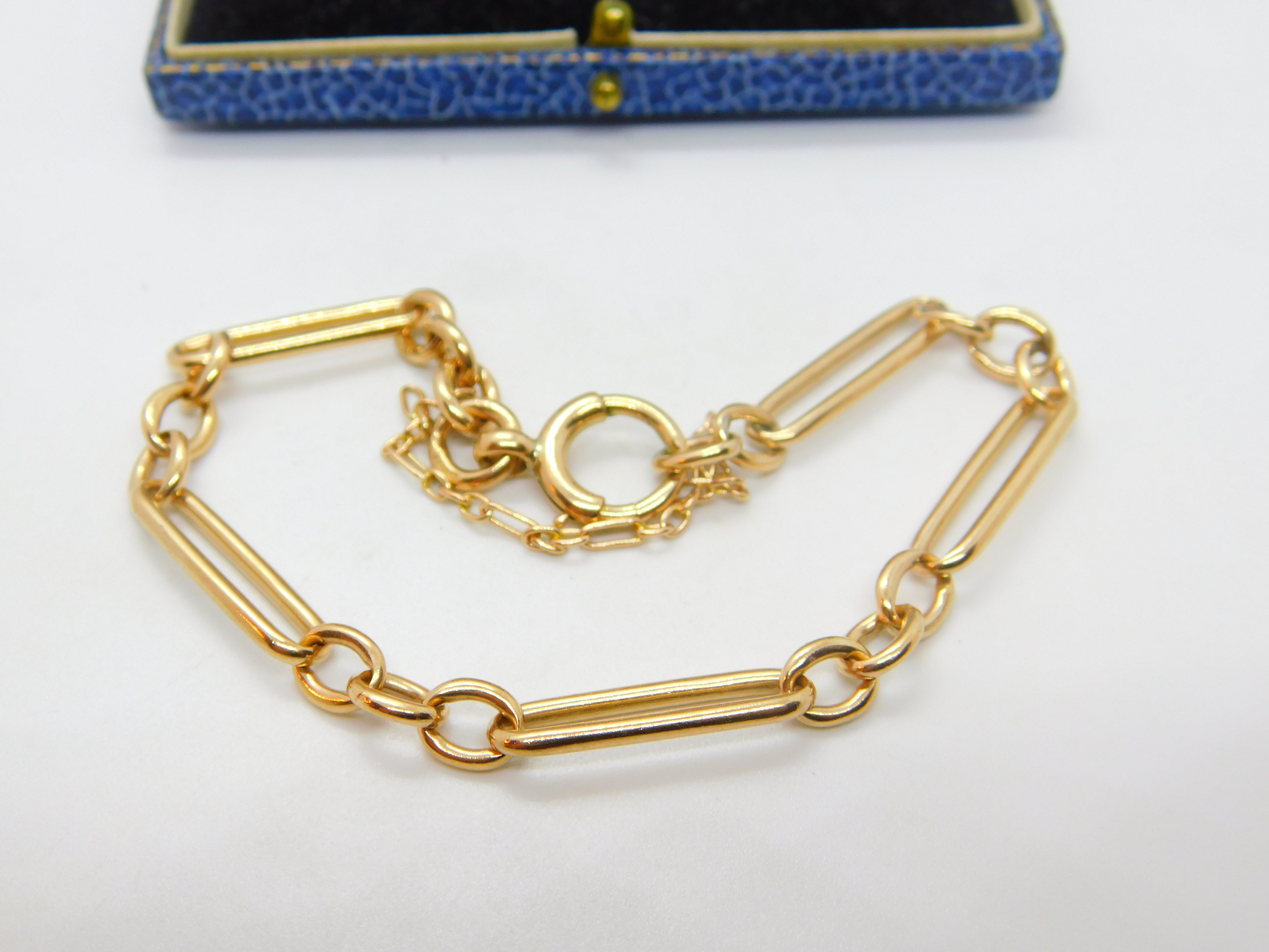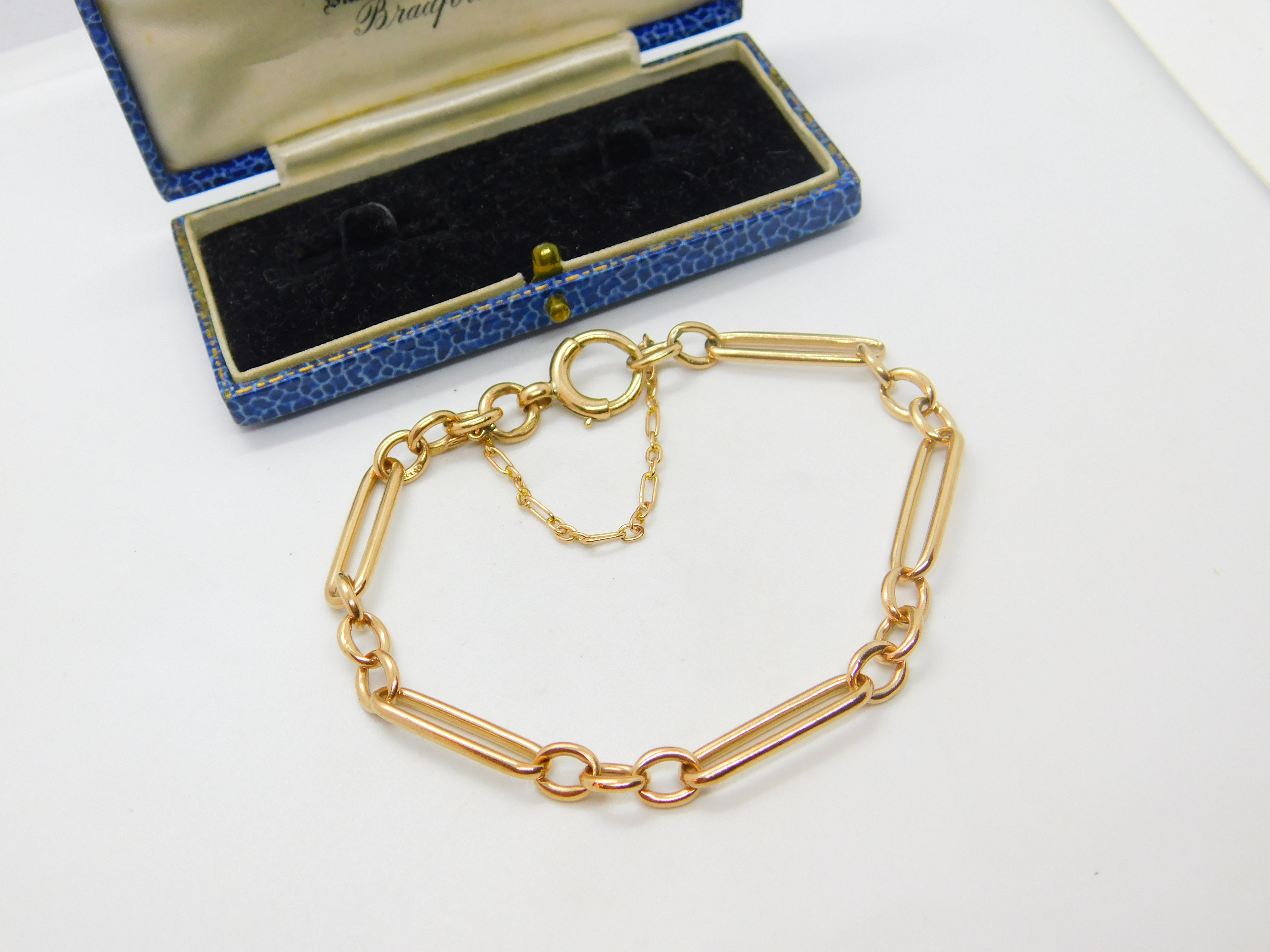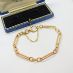 Edwardian 9ct Rose Gold Trombone Link Bracelet with Bolt Ring Antique c1910