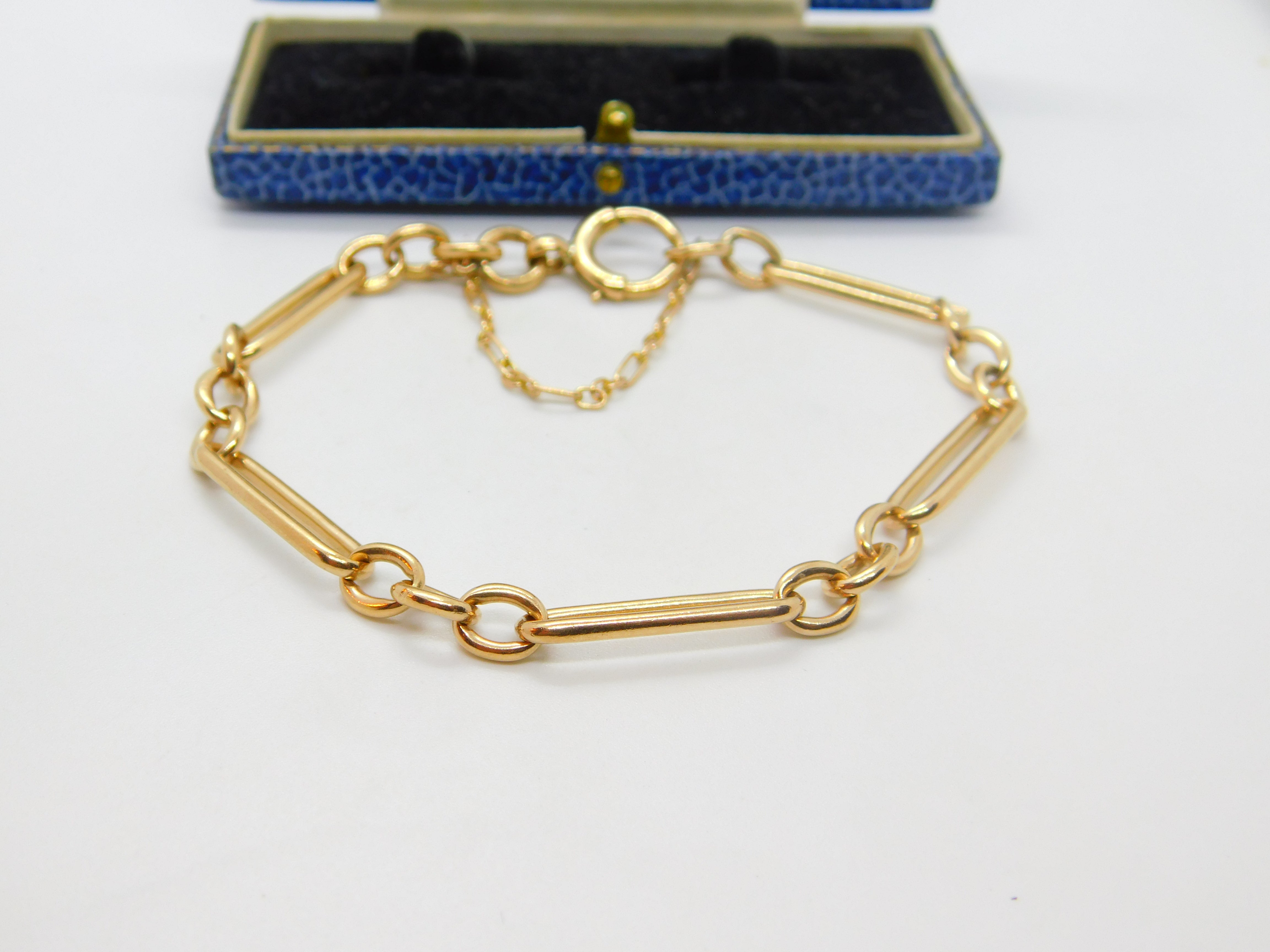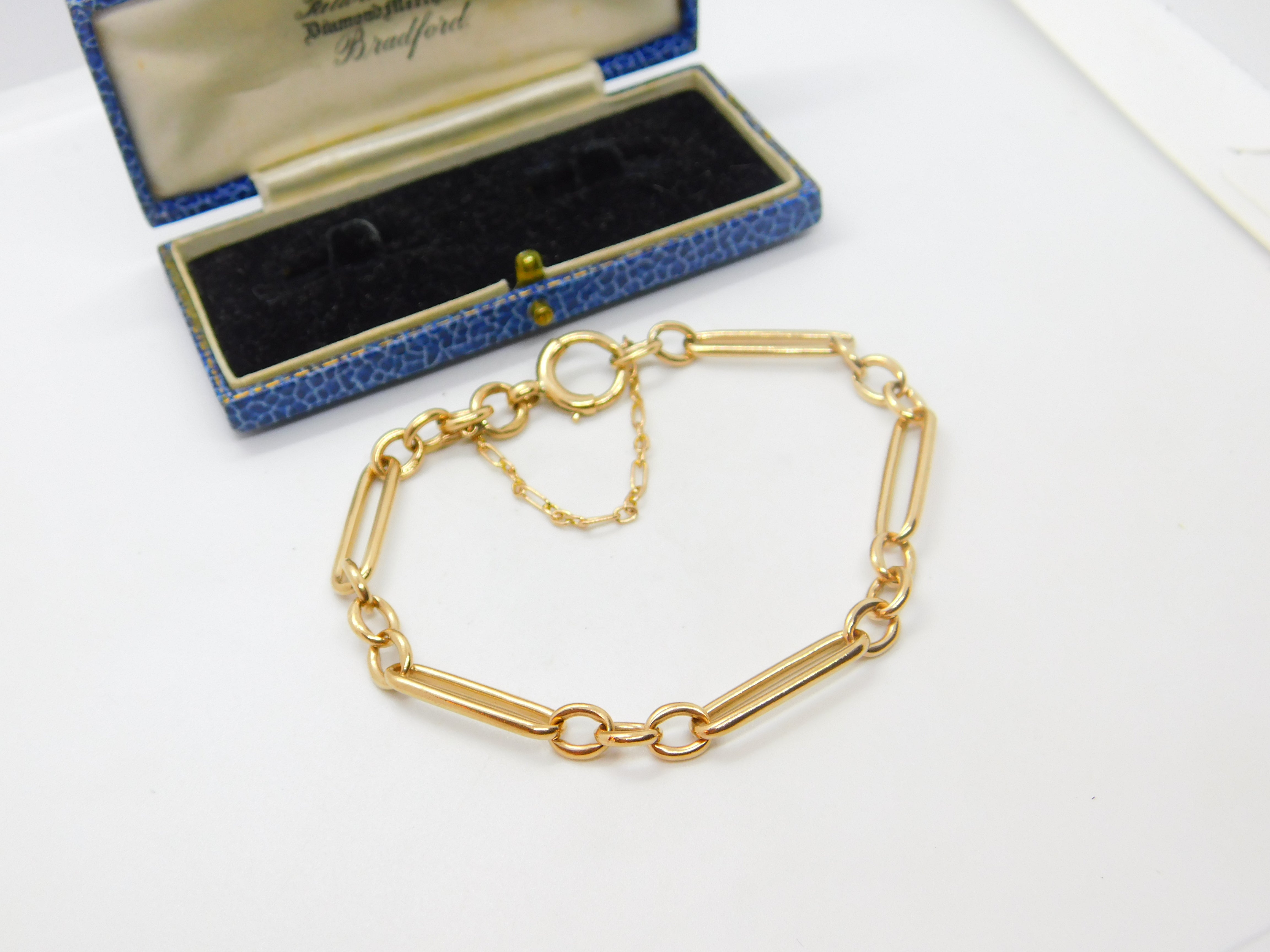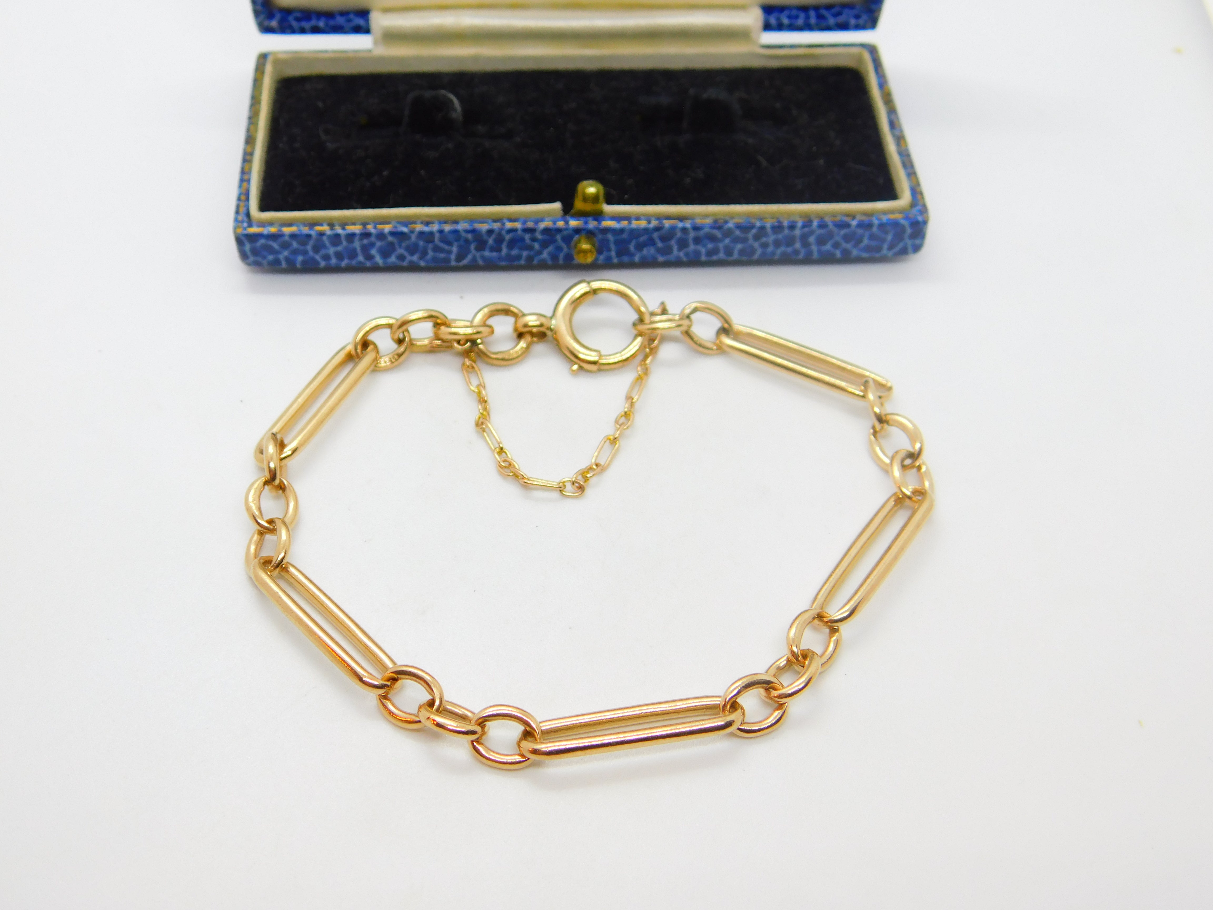 Edwardian 9ct Rose Gold Trombone Link Bracelet with Bolt Ring Antique c1910