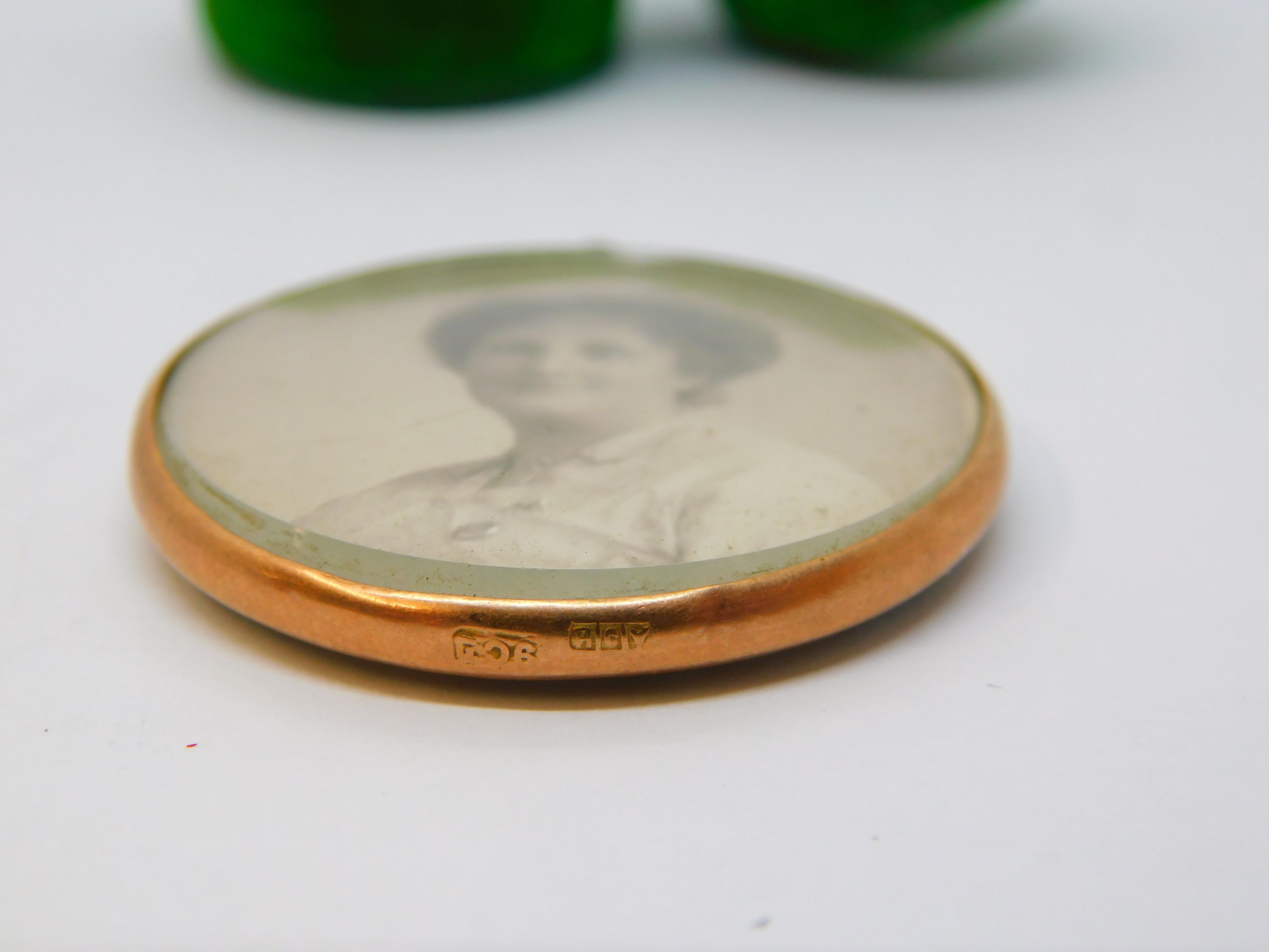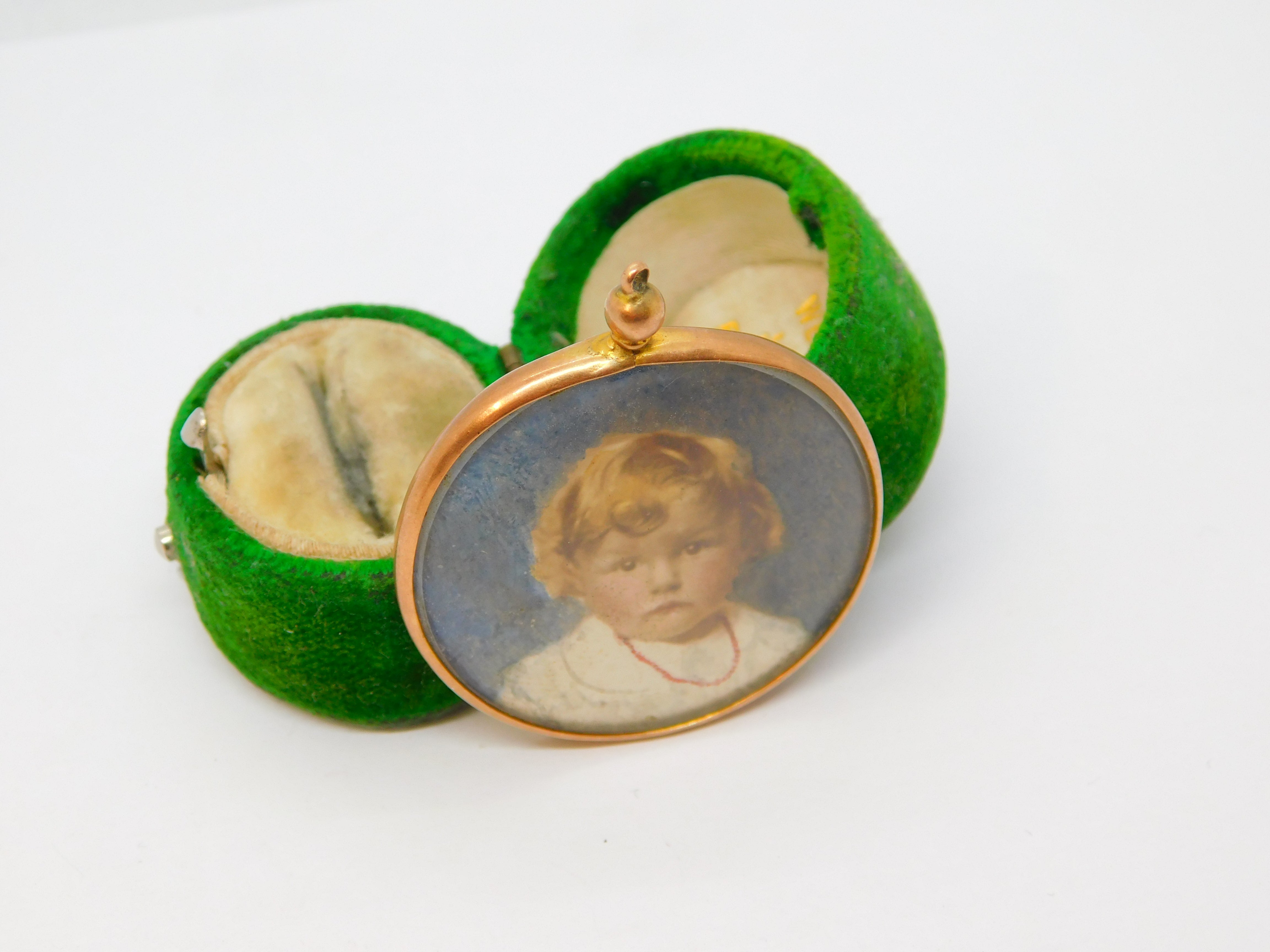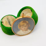 Edwardian 9ct Rose Gold Watercolour Set Double Portrait Locket Antique c1910