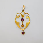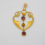 Details: A fantastic and wonderfully designed antique Edwardian 9ct yellow gold lavalier drop pendant set with almandine garnet stones hallmarked to reverse c1910. This is a wonderful item that would make a perfect gift or addition to any collection. We are more than happy to provide XRF reports for items upon request.
